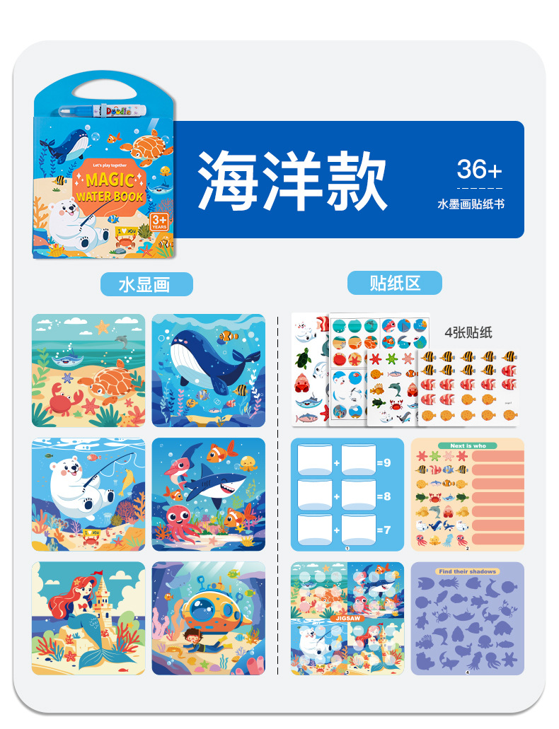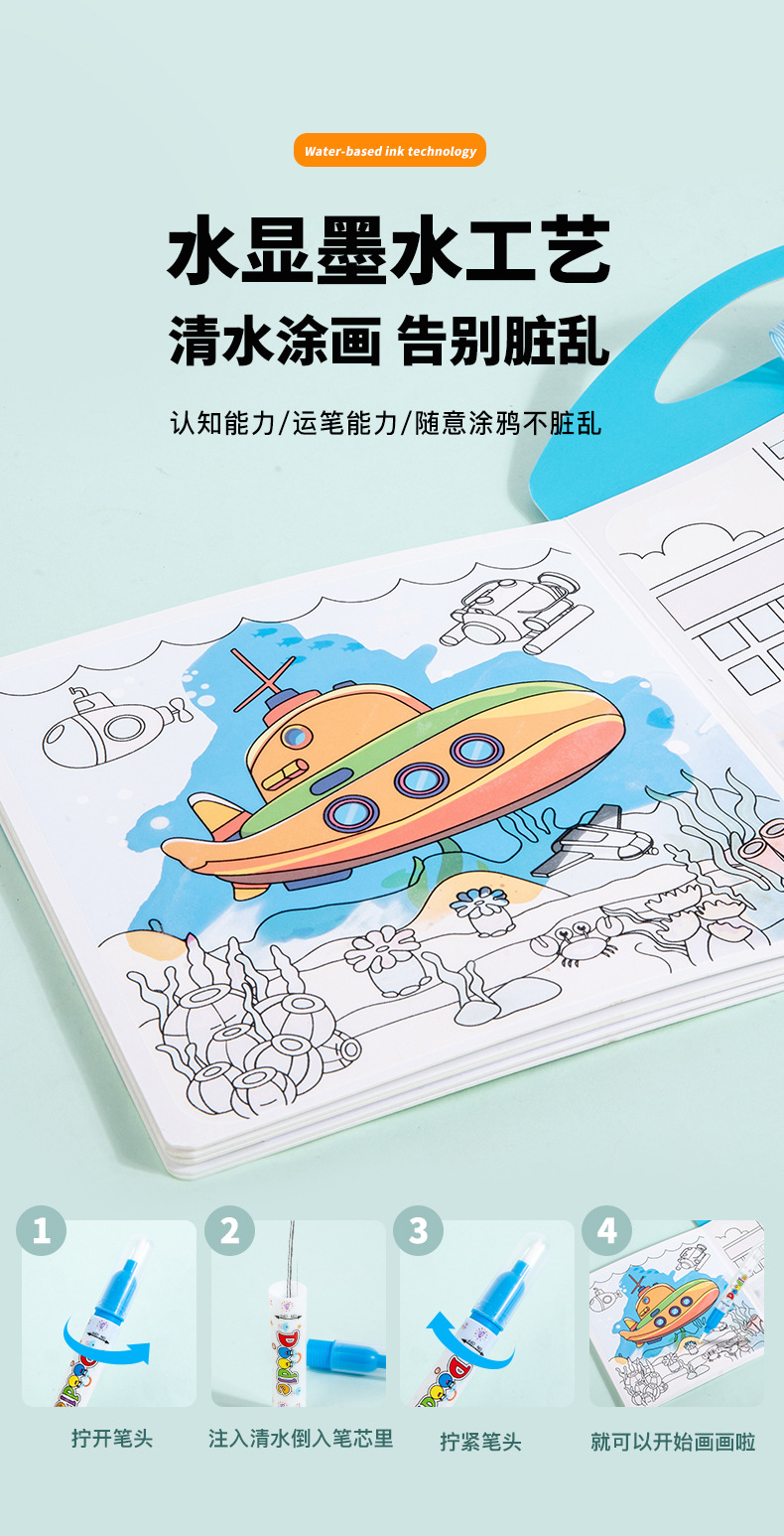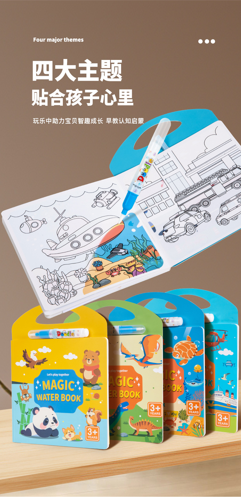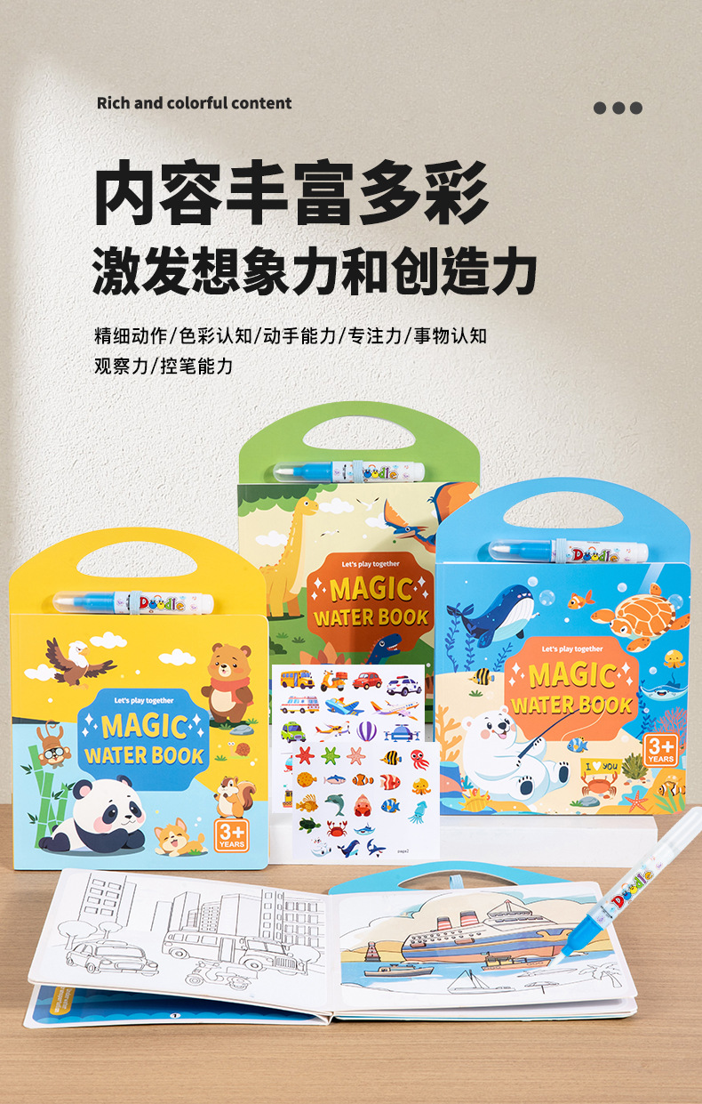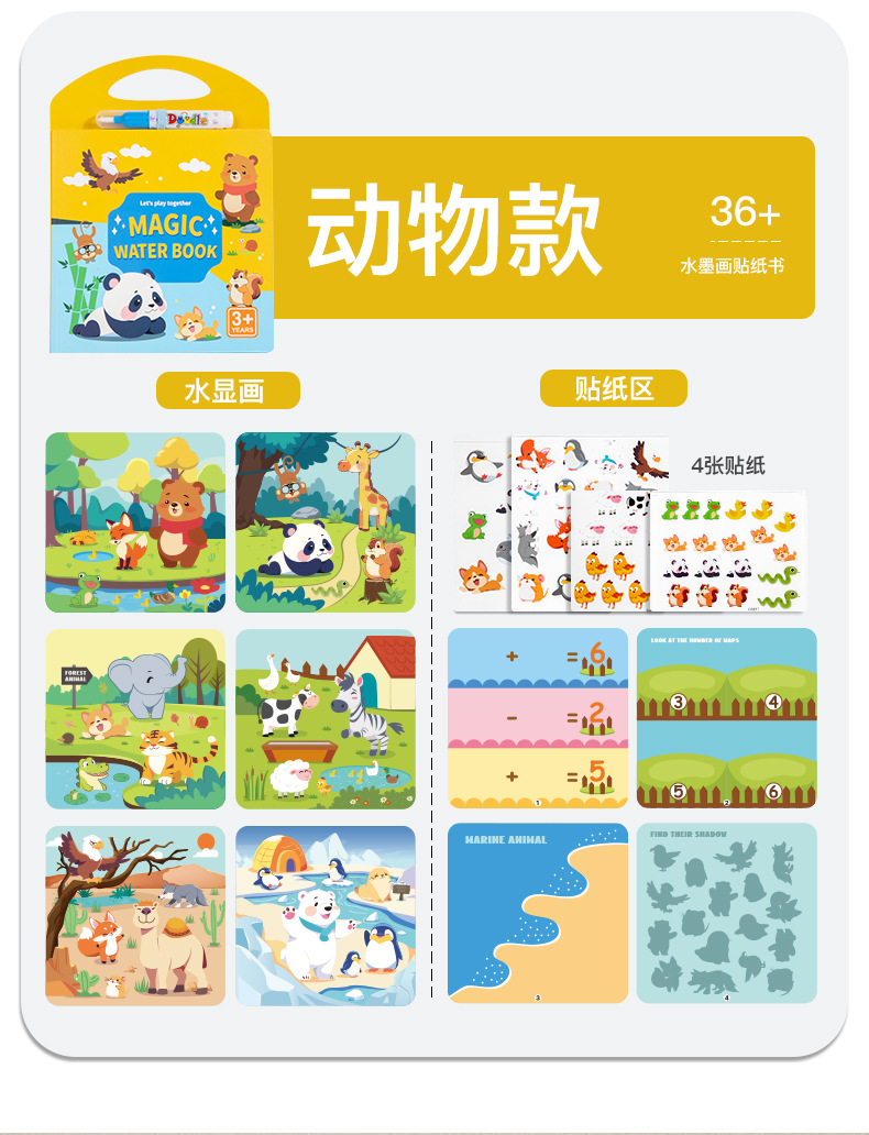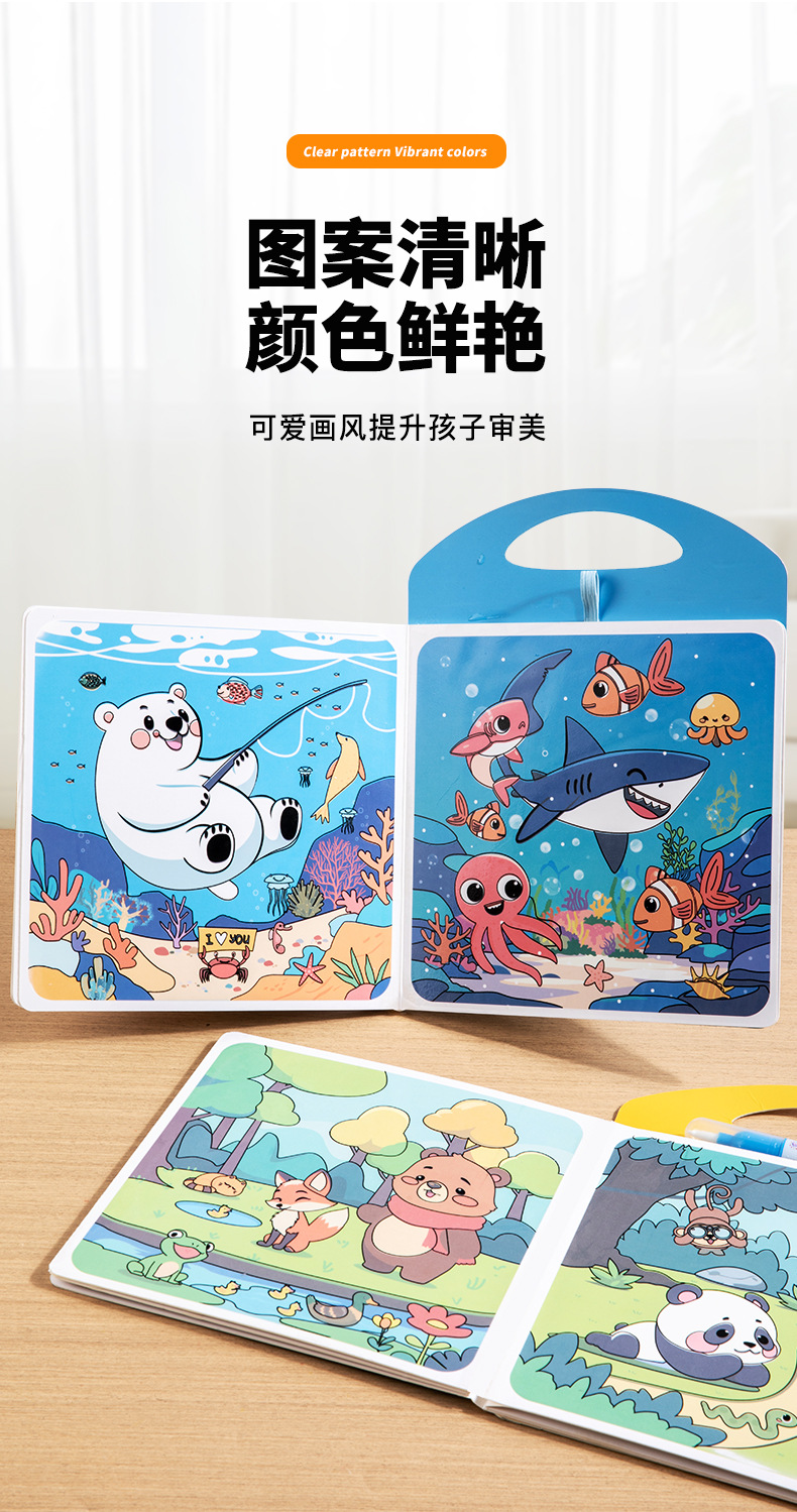 Libro de pintura de agua transfronterizo, graffiti repetido, pegatinas para colorear de agua clara, libro de pintura, juguetes educativos de educación temprana cognitiva animal para niños