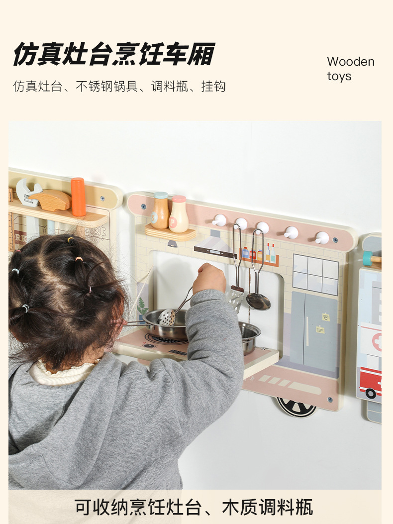 Nuevos productos transfronterizos, juguetes de madera para niños, jardín de infantes, educación temprana Montessori, parque de atracciones de pared de tablero ocupado multifuncional