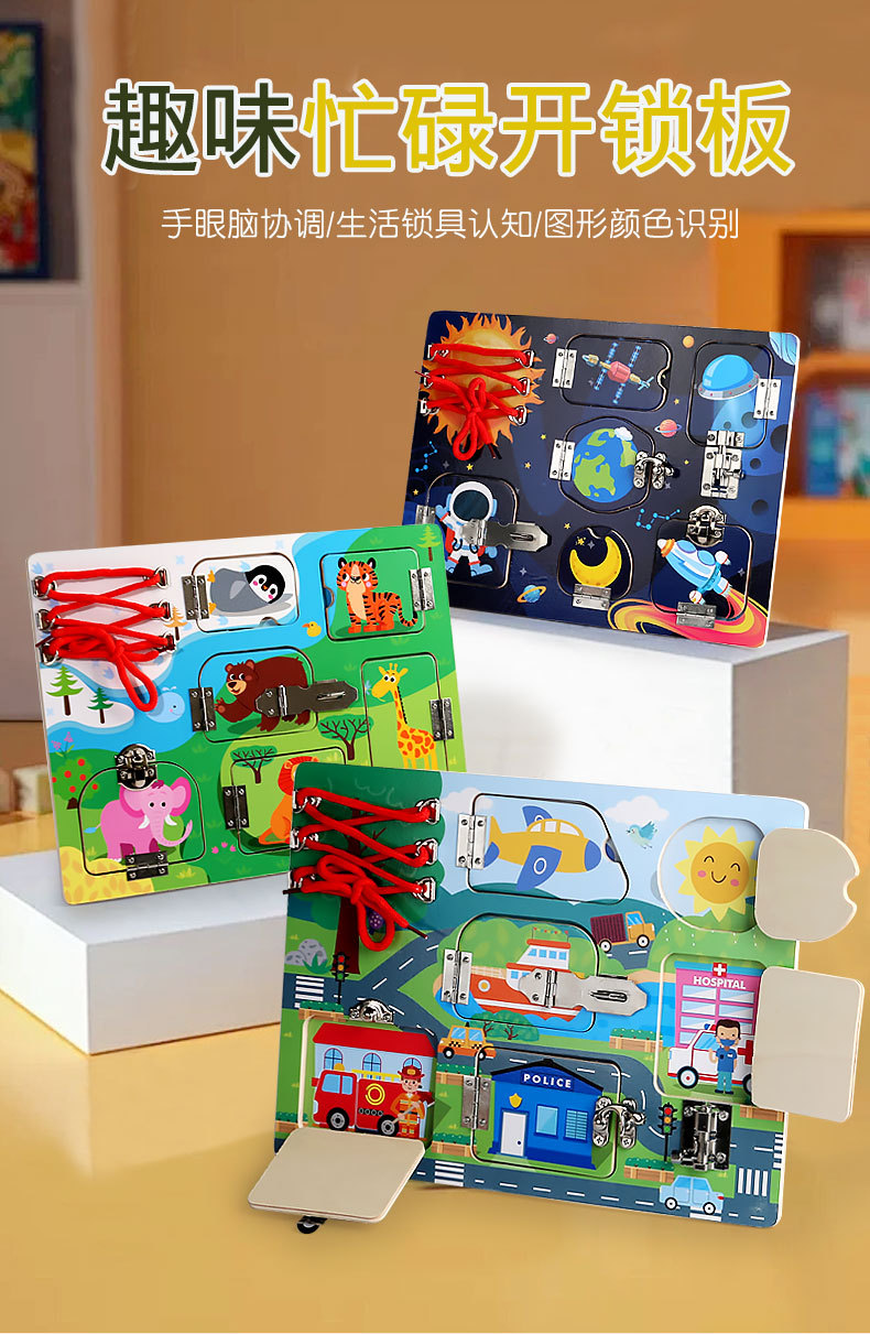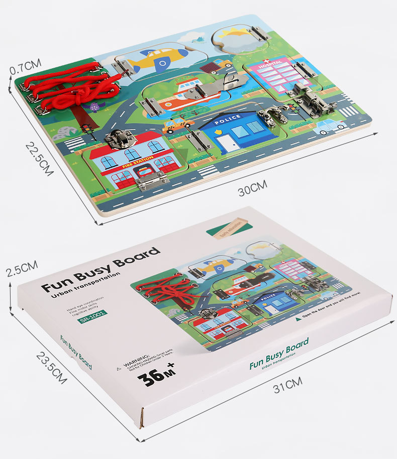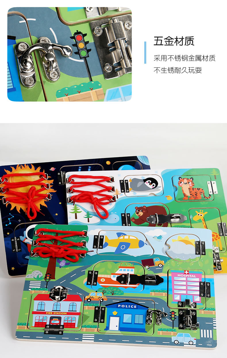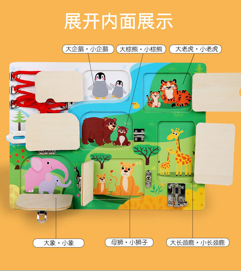 CE niños transfronterizos Montessori osito ocupado accesorios de tablero madera Montessori desbloqueo de pared juguetes educativos de educación temprana