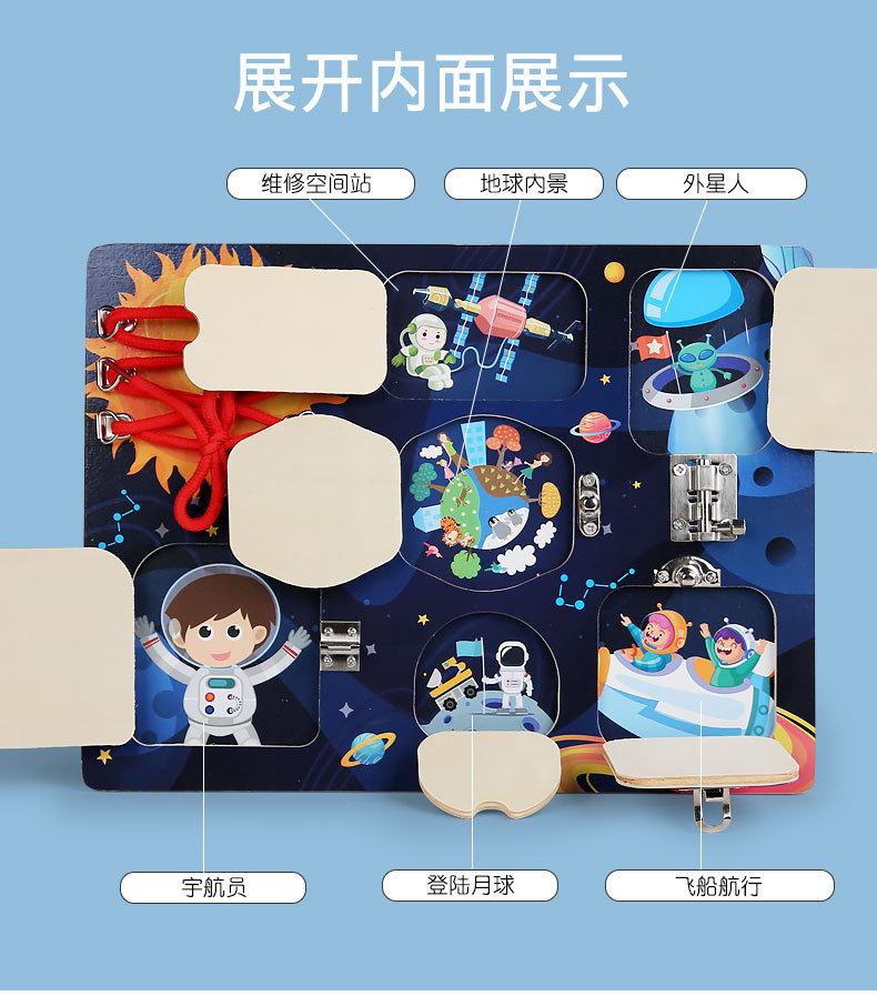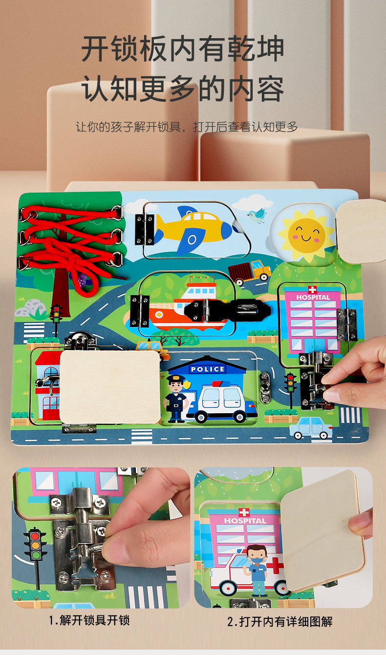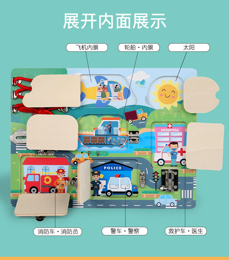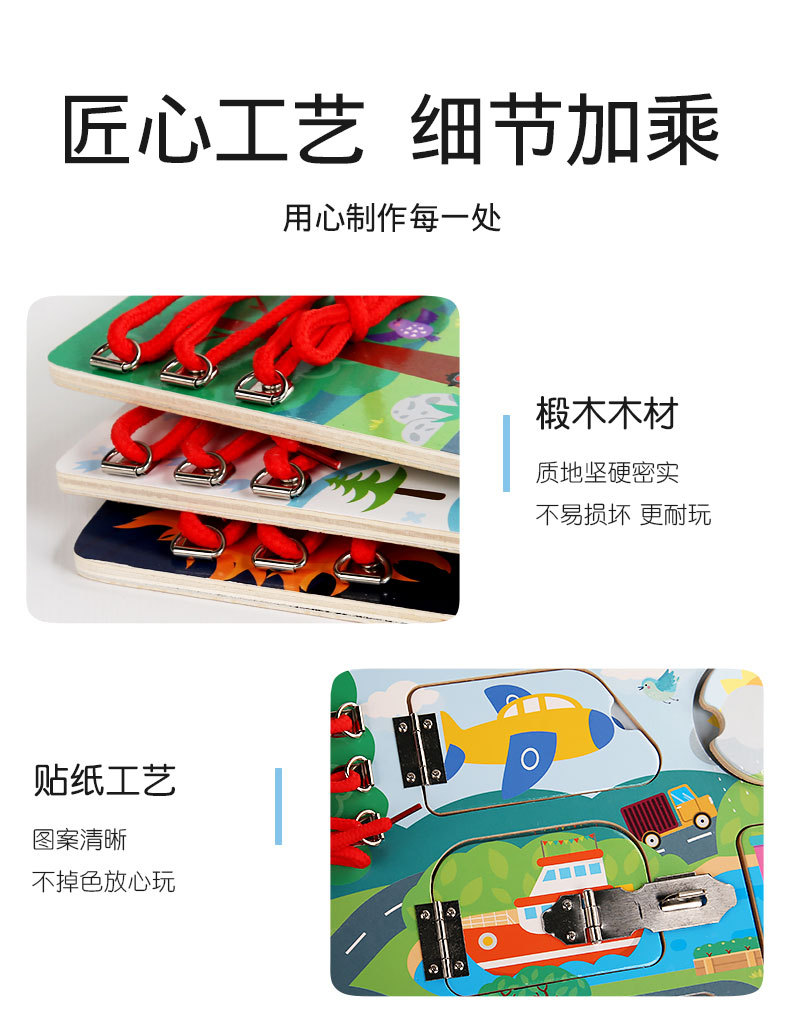 CE niños transfronterizos Montessori osito ocupado accesorios de tablero madera Montessori desbloqueo de pared juguetes educativos de educación temprana