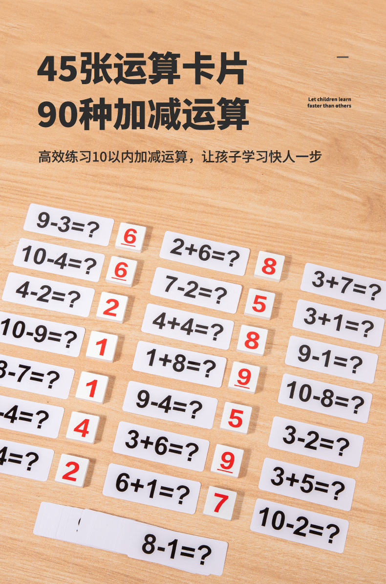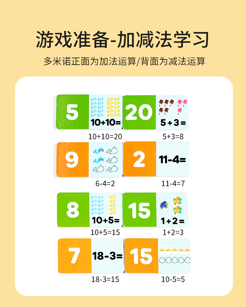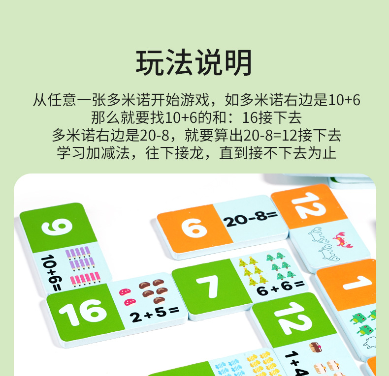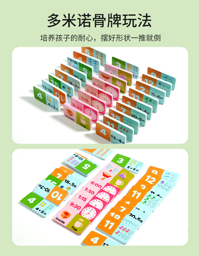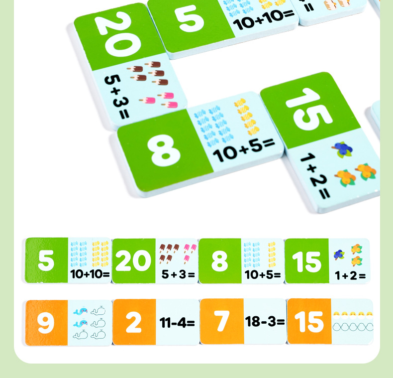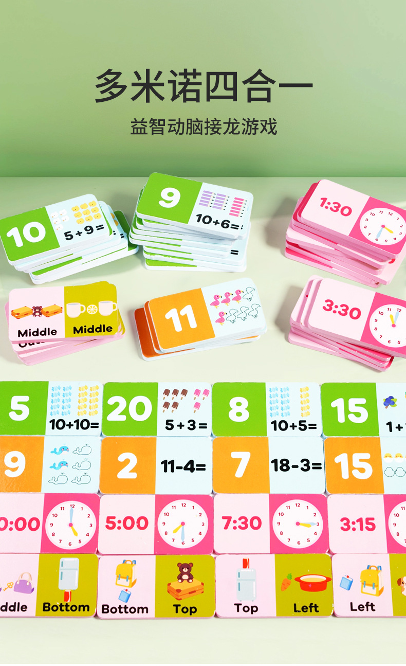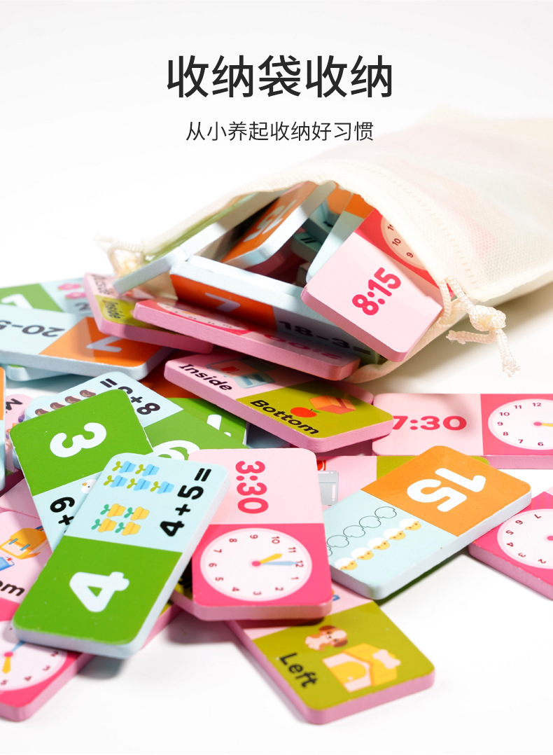 Rompecabezas suma y resta Solitario Cognition Cuatro en uno Domino Madera Nuevo tiempo de cálculo de palabras en inglés para niños