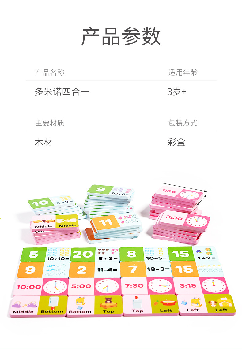 | Colores | Domino cuatro en uno 0.65kg,Juguete de material didáctico digital Montessori 0.406kg,Operación de dedo cpcce (suma y resta dentro de 10) |