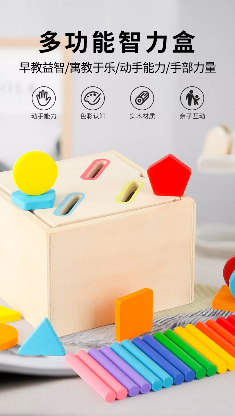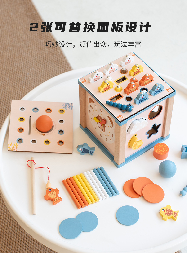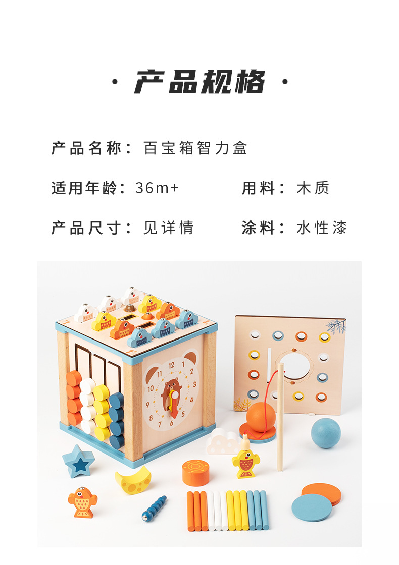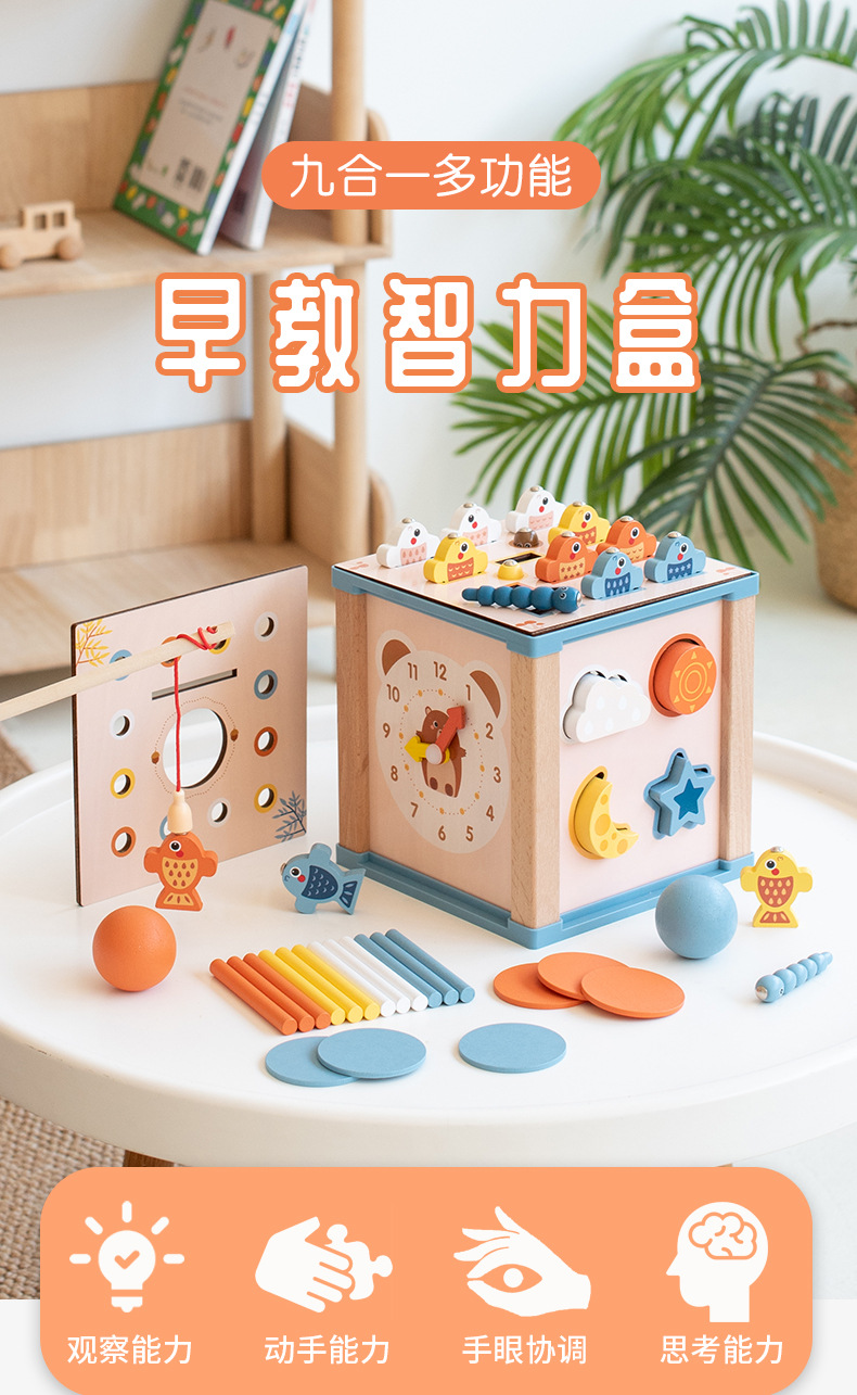 Montessori Caja de inteligencia de educación temprana Caja ocupada para niños Iluminación de educación temprana Caja del tesoro de pesca multifuncional Juguetes de madera