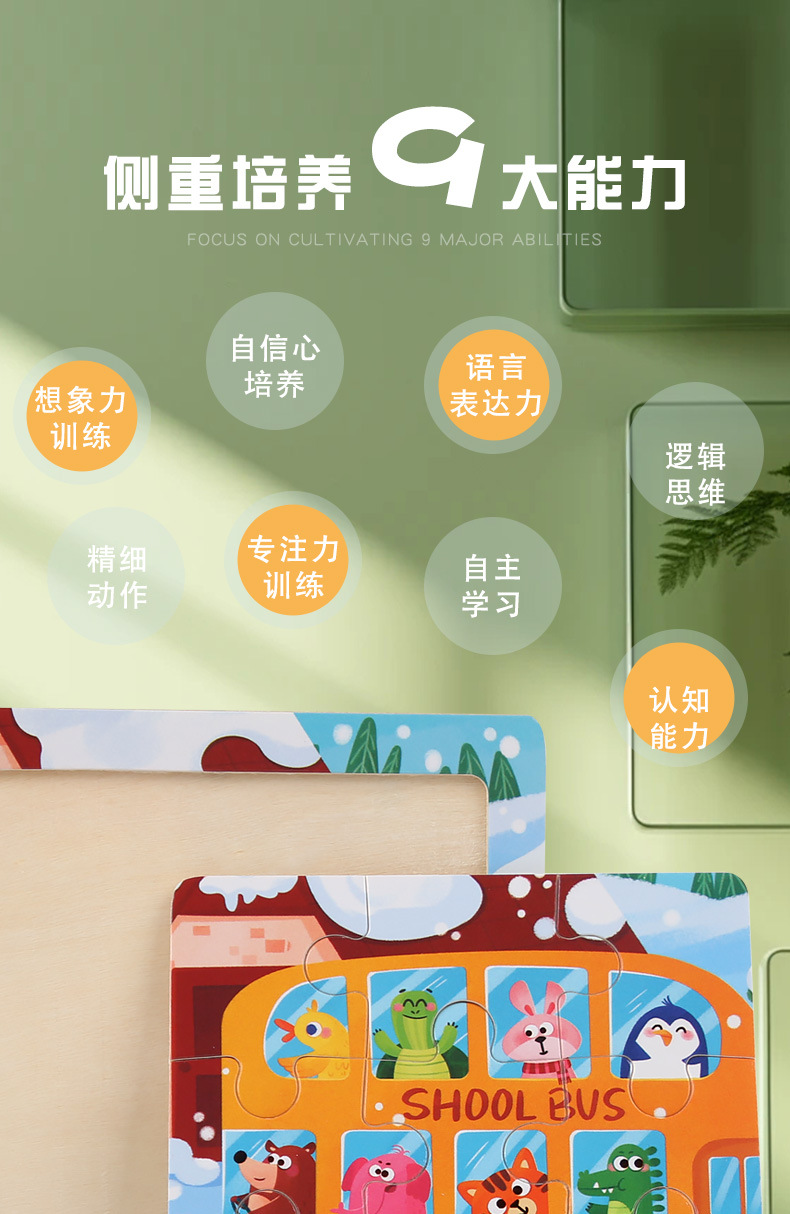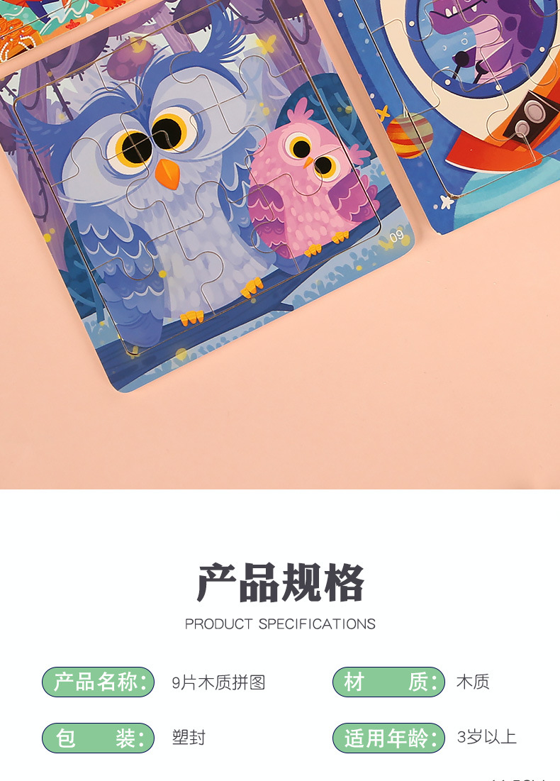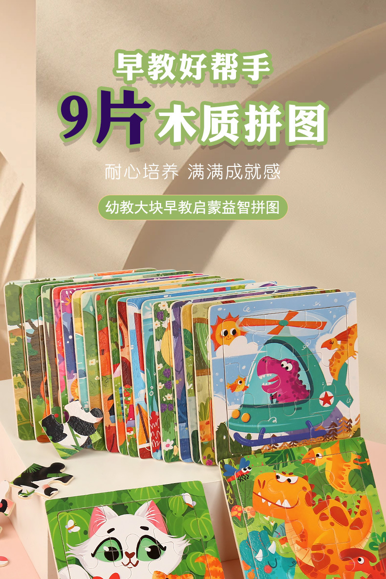 Rompecabezas de madera transfronterizo para niños juguetes educativos jardín de infantes educación temprana 9 piezas rompecabezas 3-6 rompecabezas de color cognitivo para bebés