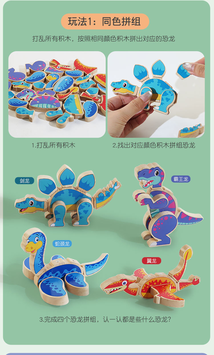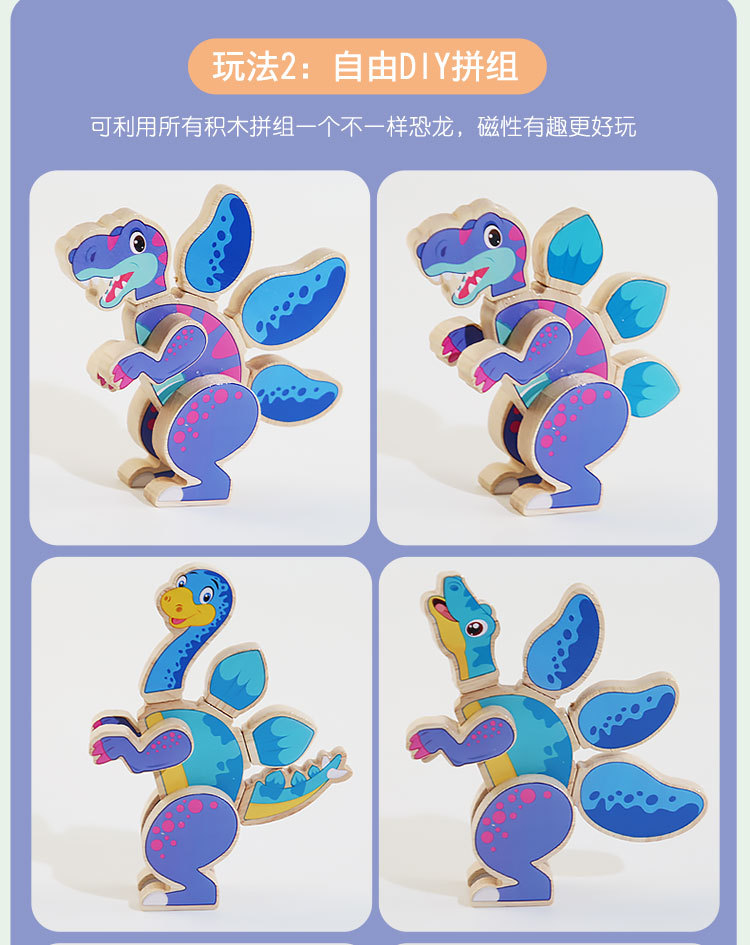 Gráficos en forma de dinosaurio de 1 a 3 años, bloques de construcción tridimensionales, empalme magnético, jardín de infantes para niños, educación temprana, juguetes divertidos