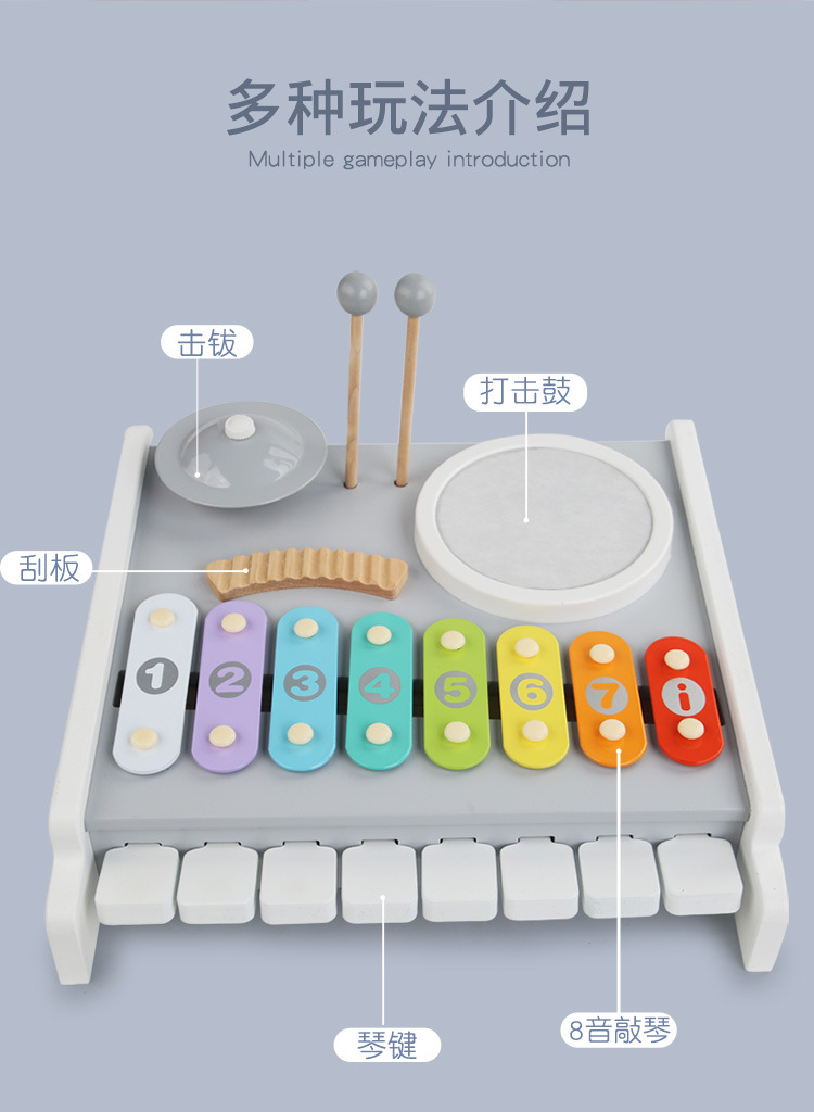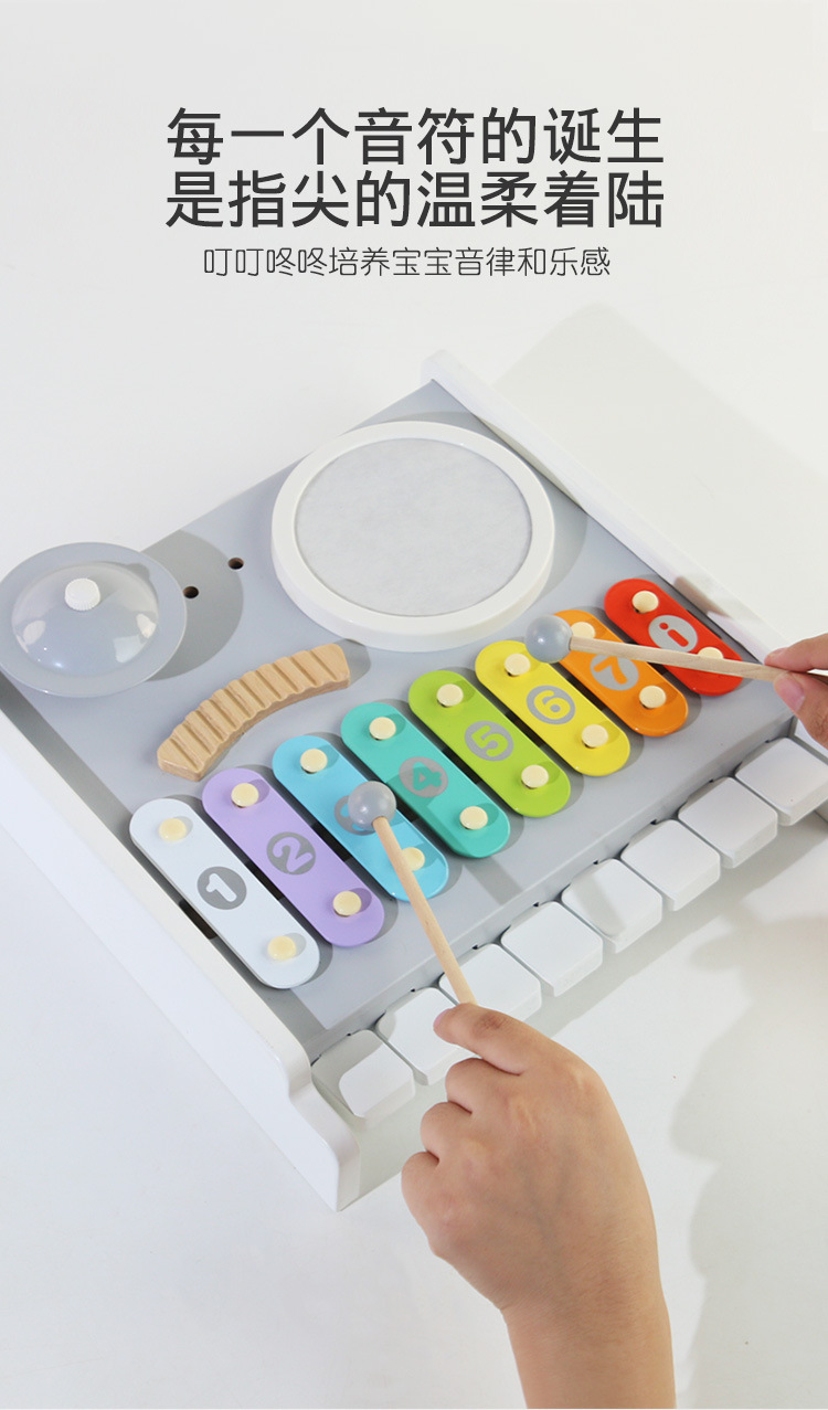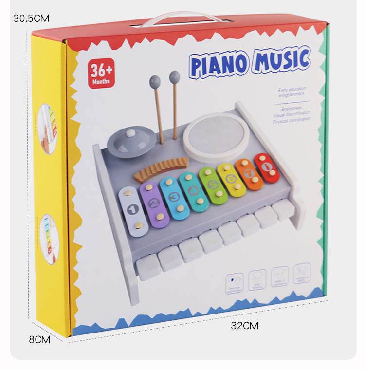 Juguetes de mesa de música de piano de madera, juguetes educativos multifuncionales, ejercicio, coordinación mano-ojo de los niños, educación temprana, iluminación infantil