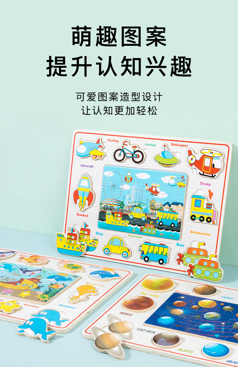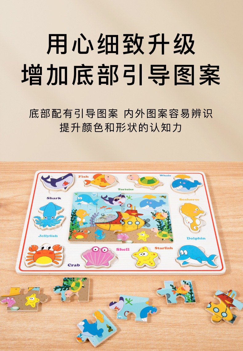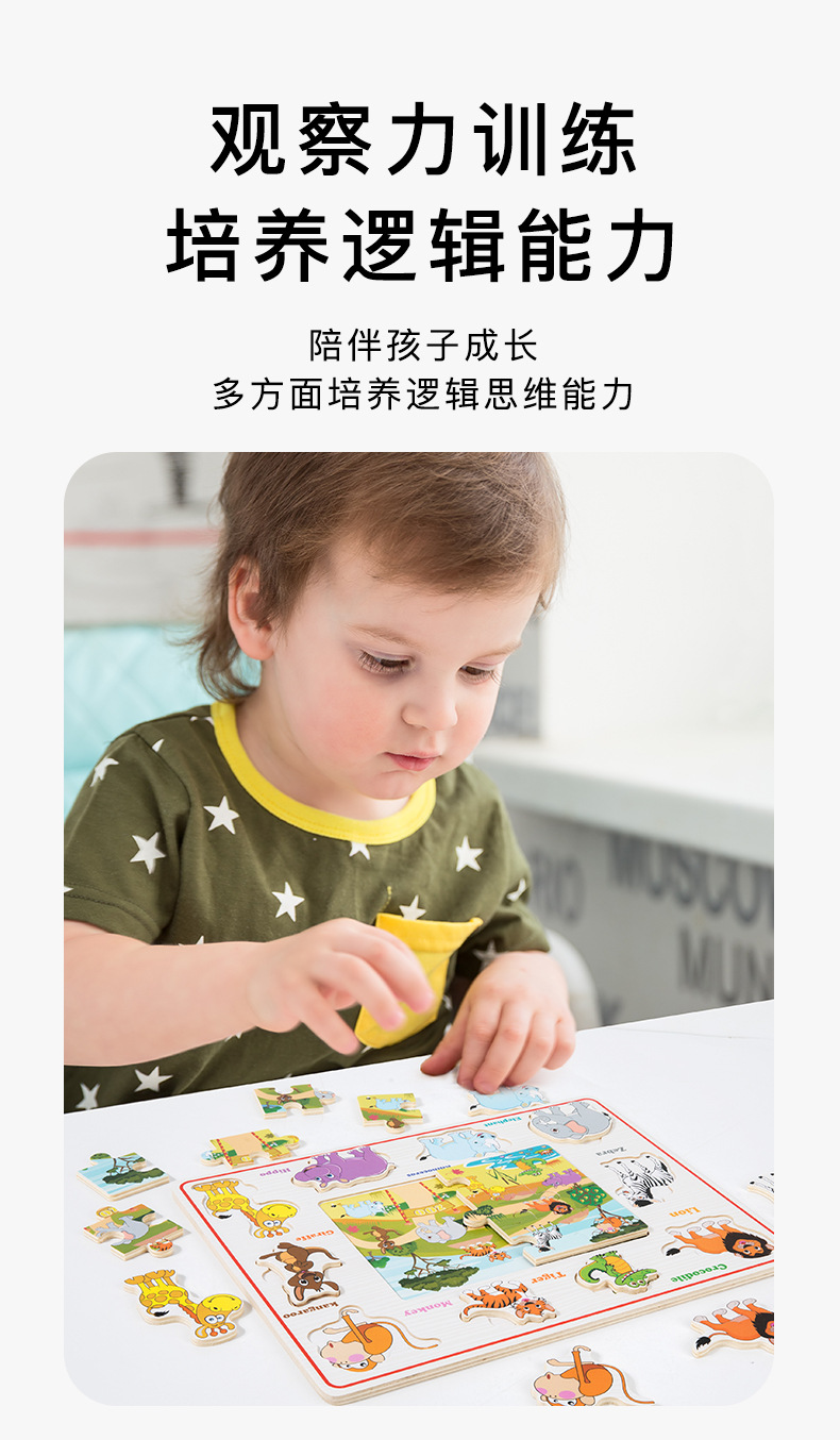 Entrenamiento de concentración de madera para niños, rompecabezas cognitivo tridimensional, juguetes, juegos de mesa a juego, rompecabezas de animales, tablero de rompecabezas tridimensional