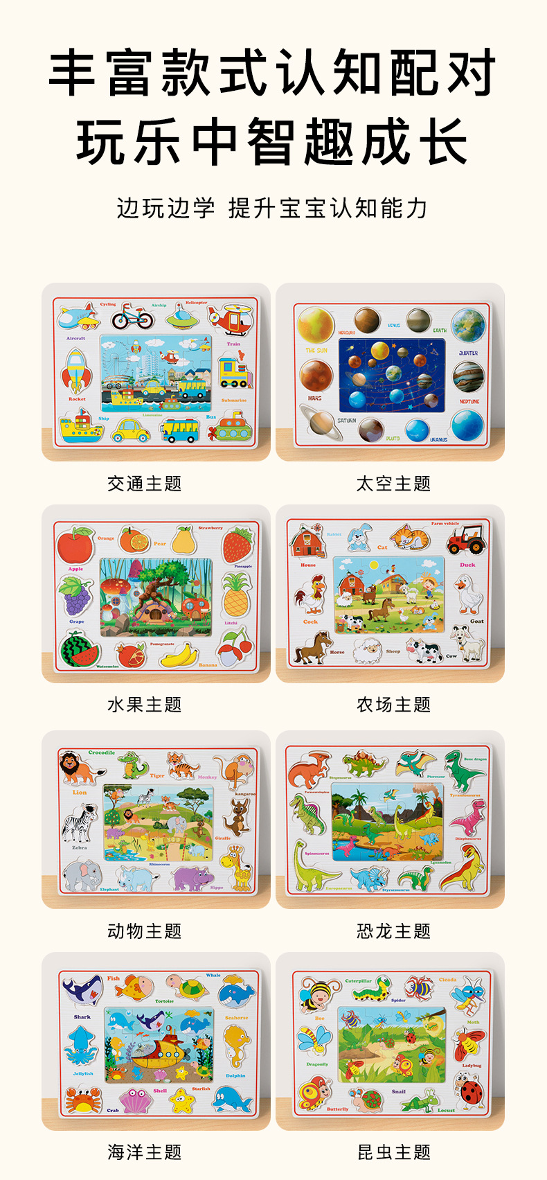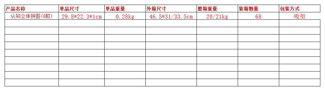 | Colores | Rompecabezas cognitivo tridimensional-tema de tráfico,Rompecabezas cognitivo estereoscópico-tema espacial,Rompecabezas cognitivo estereoscópico-tema de frutas,Rompecabezas cognitivo estereoscópico-tema de la granja,Rompecabezas cognitivo estereoscópico-tema animal,Rompecabezas cognitivo estereoscópico-tema de dinosaurio,Rompecabezas cognitivo estereoscópico-tema marino,Rompecabezas cognitivo estereoscópico-tema de insectos |