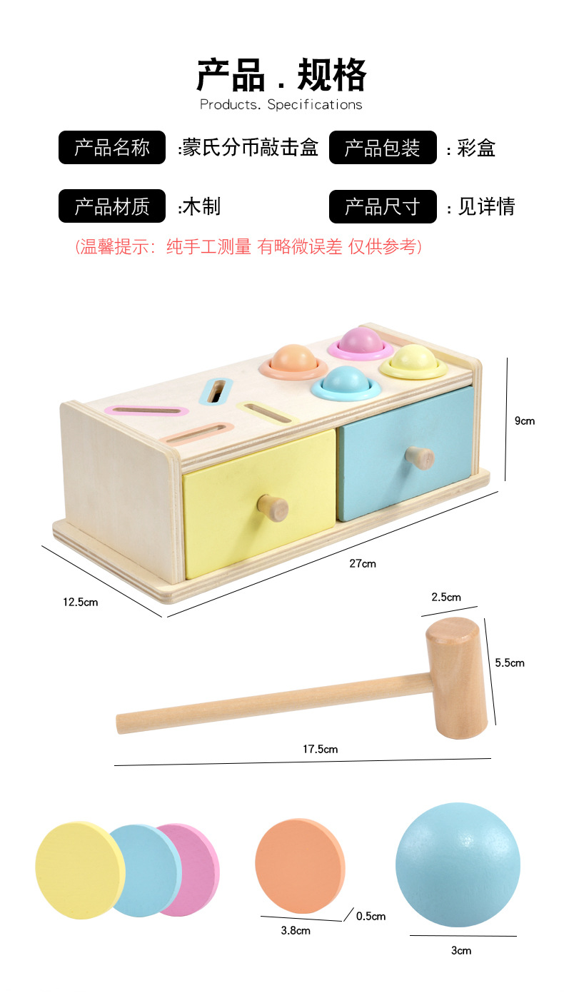 Montessori material didáctico caja de cajones de madera caja de percusión de centavos jardín de infantes 3-6 años rompecabezas Monterey juguetes de educación temprana