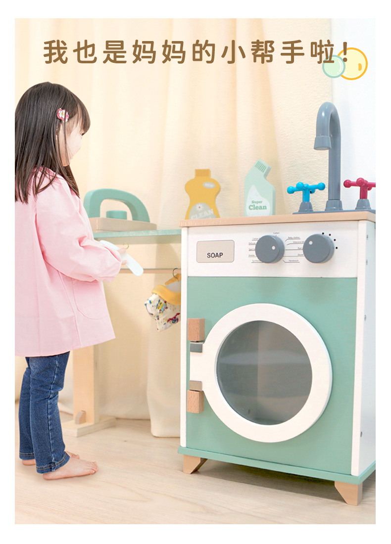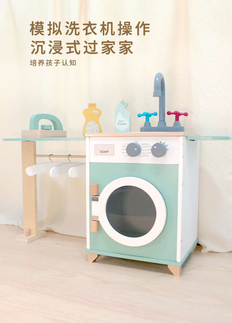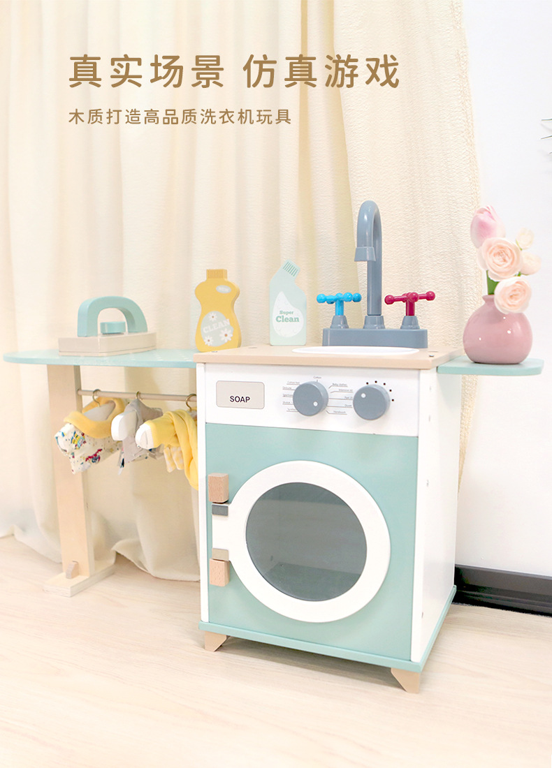 Juguete de simulación de lavadora de tambor de juego para niños de alta gama para niños, juego original de 1-3 años, simulación real de madera