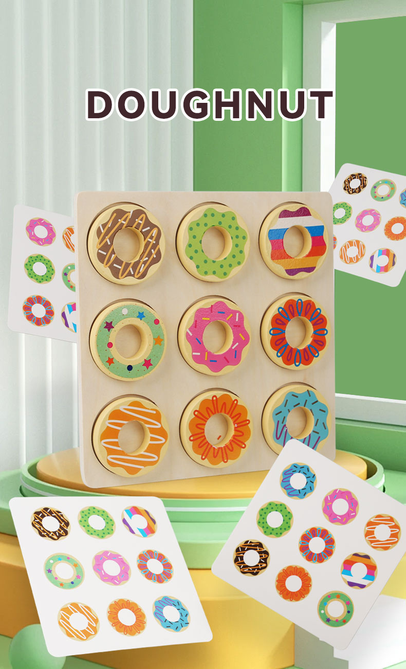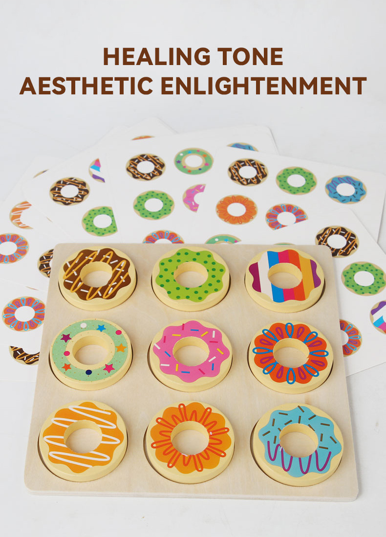 CE CPC niños de madera divertido donut emparejado color correspondiente educación temprana rompecabezas rompecabezas rompecabezas juegos de juguetes al por mayor