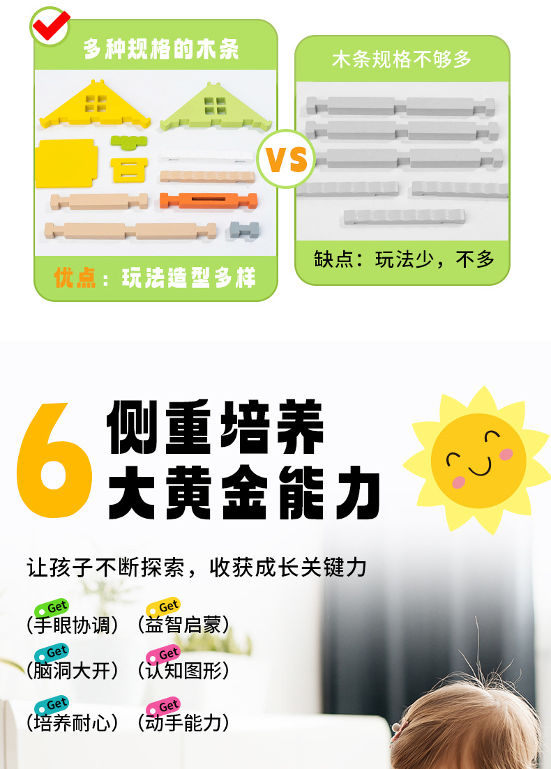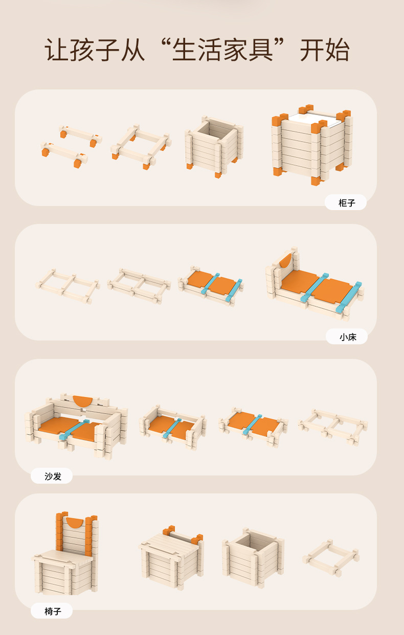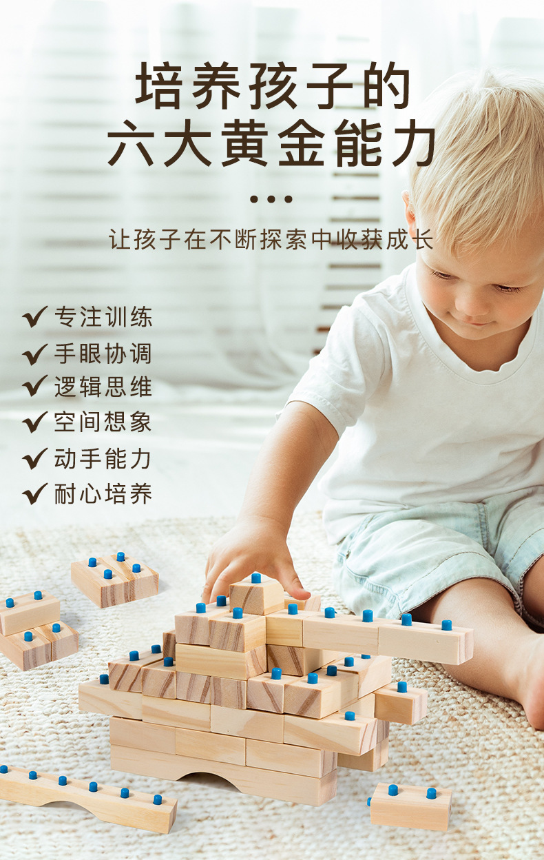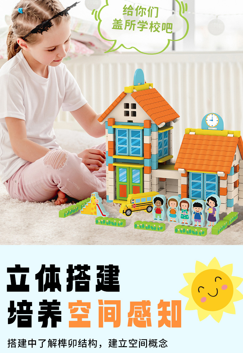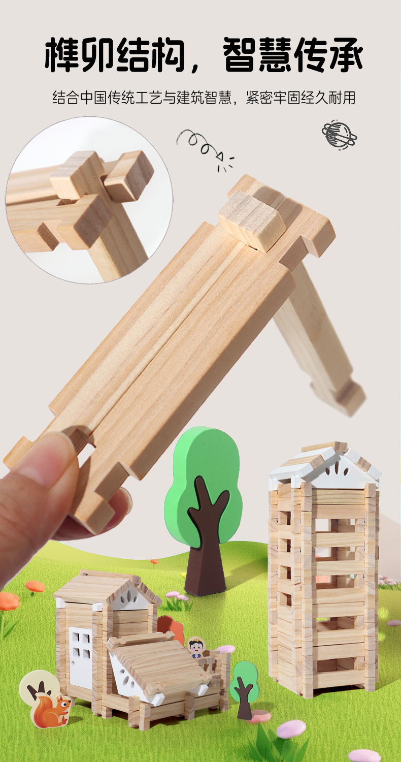 Bloques de construcción transfronterizos para niños Estructura de espiga y espiga china ensamblada Luban Little Architect Bloques de construcción de partículas grandes Juguetes de la casa