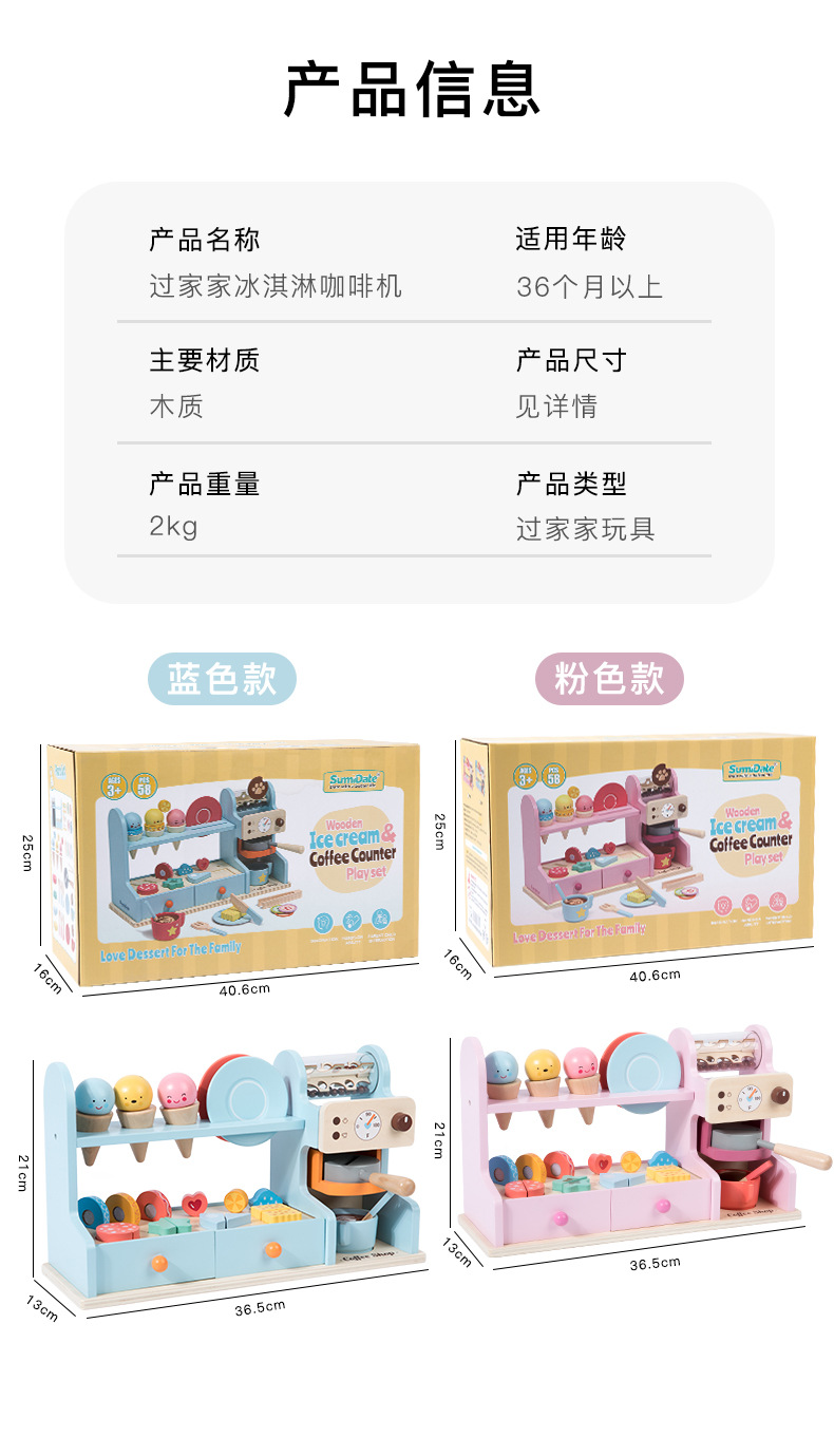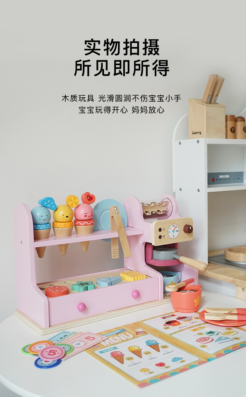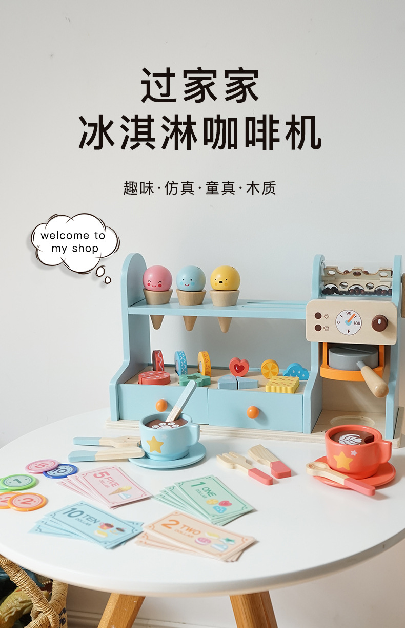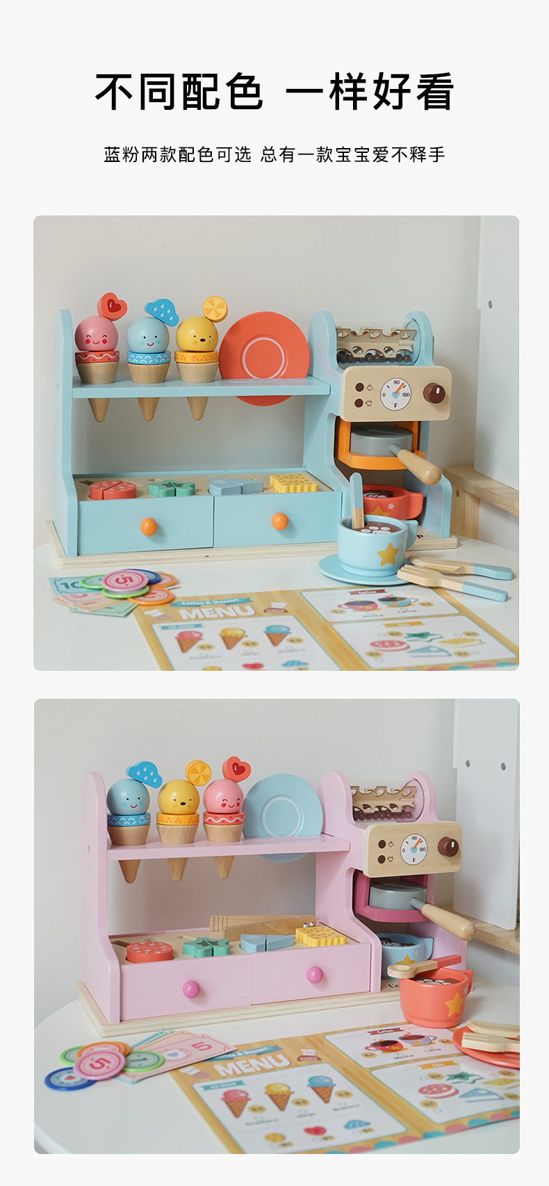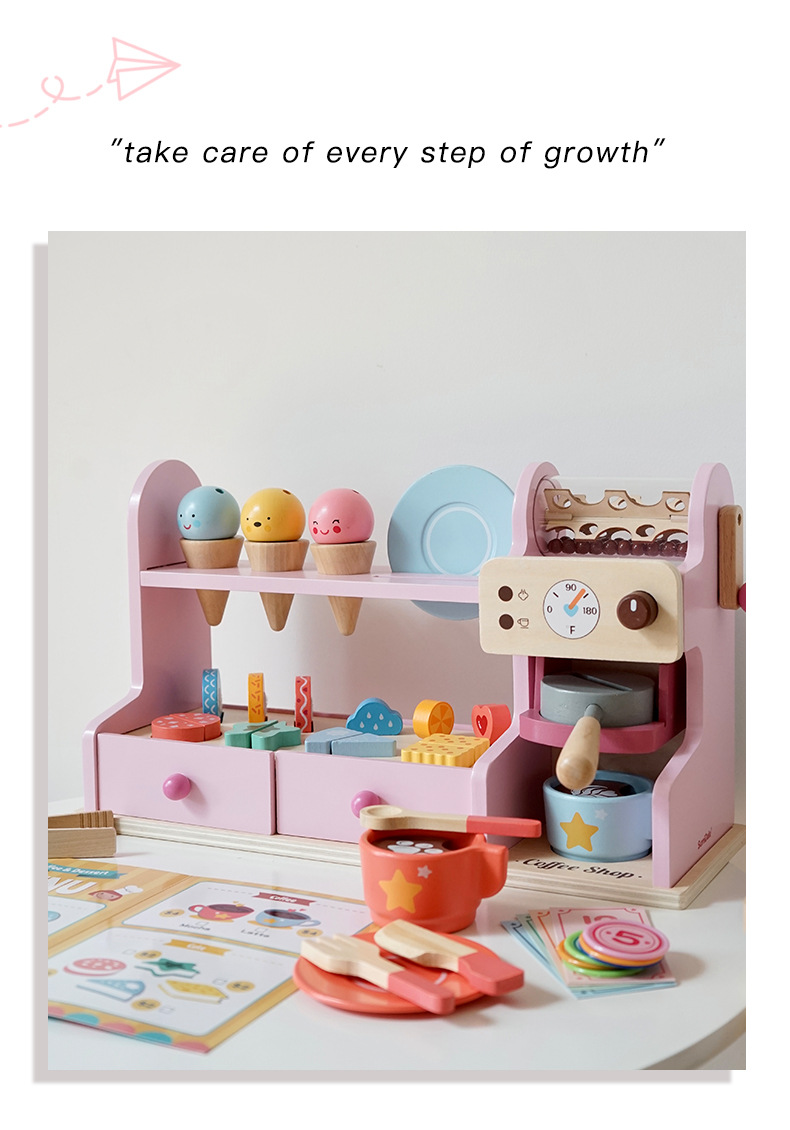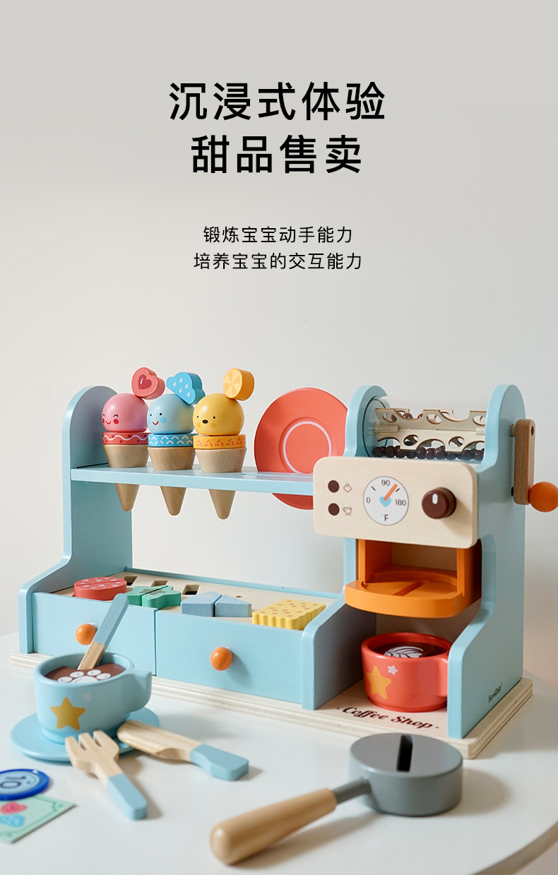 Simulación de madera para niños, tienda de postres, venta de simulación, helado, tienda de café, niños y niñas, juguetes para la casa