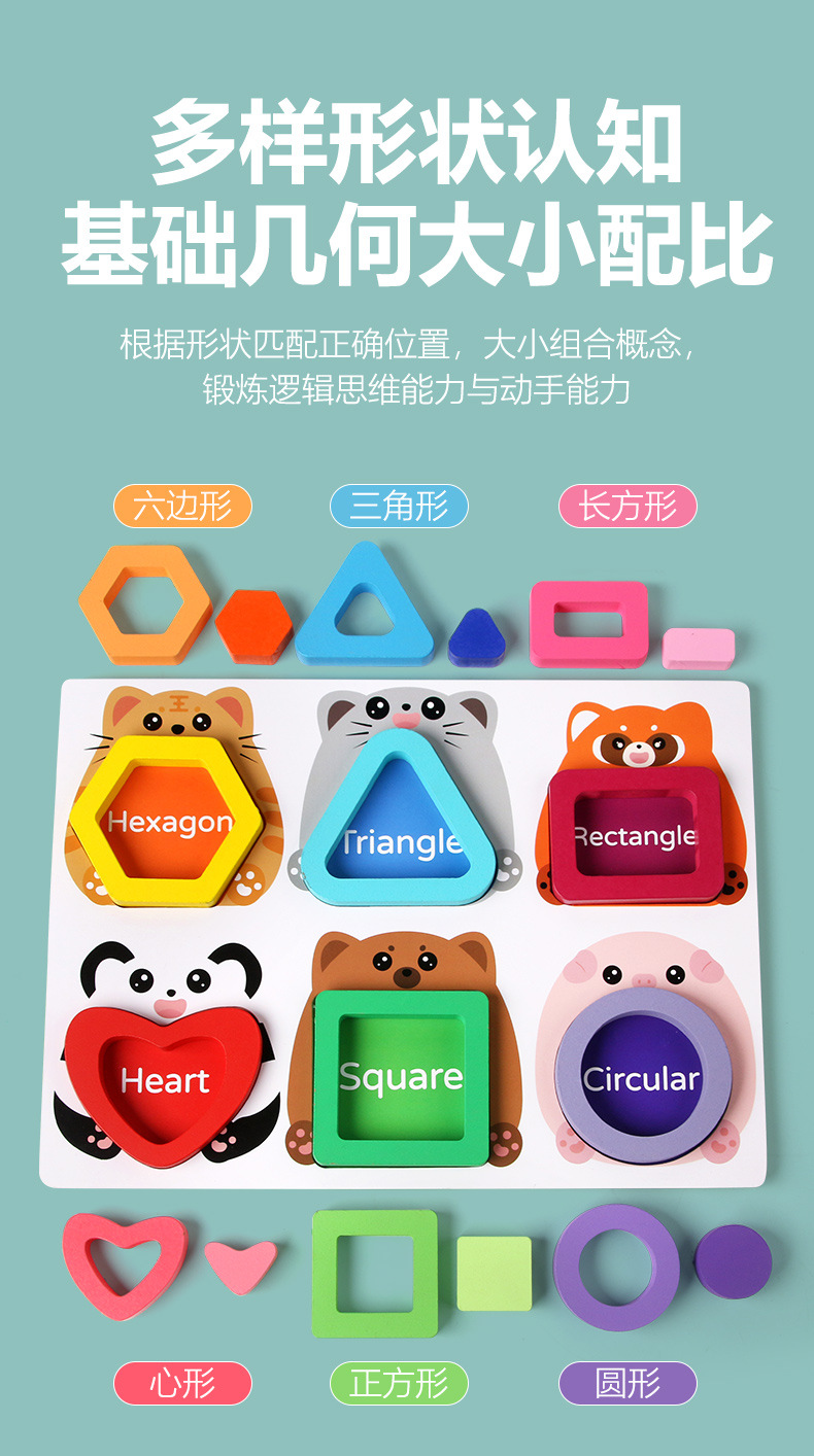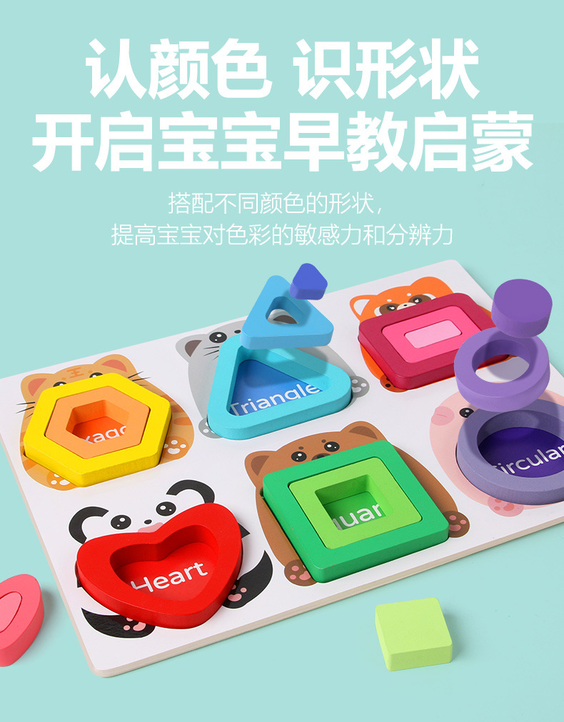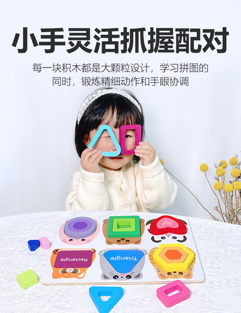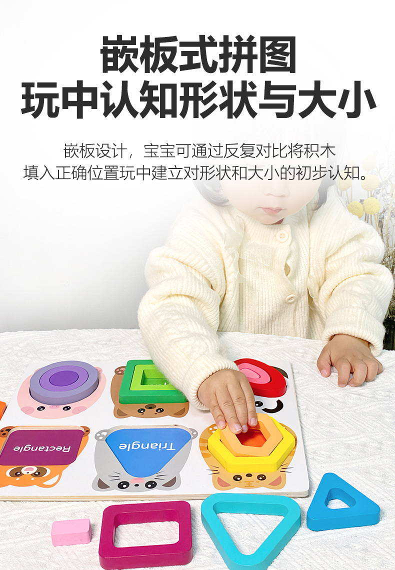 Forma Montessori a juego con juguetes de tablero de rompecabezas geométrico panel de agarre manual para niños bloques de construcción de rompecabezas hombres y mujeres 1 niño 3 años bebé