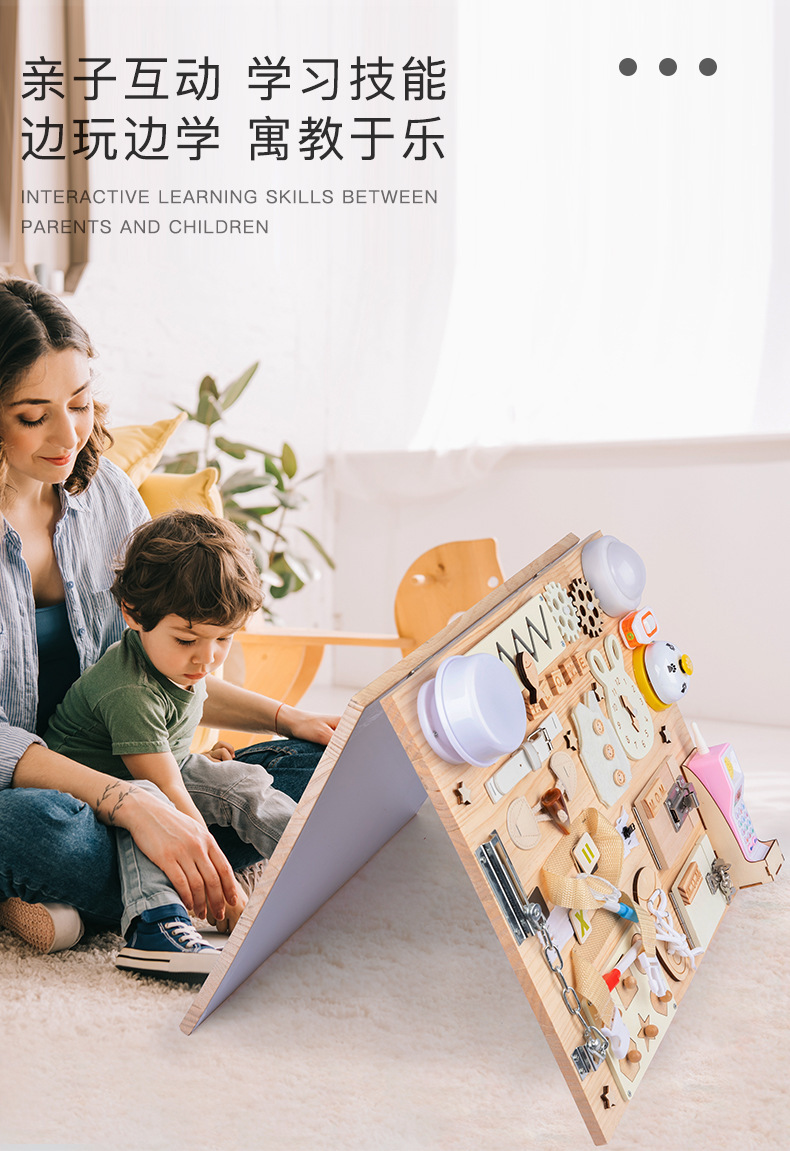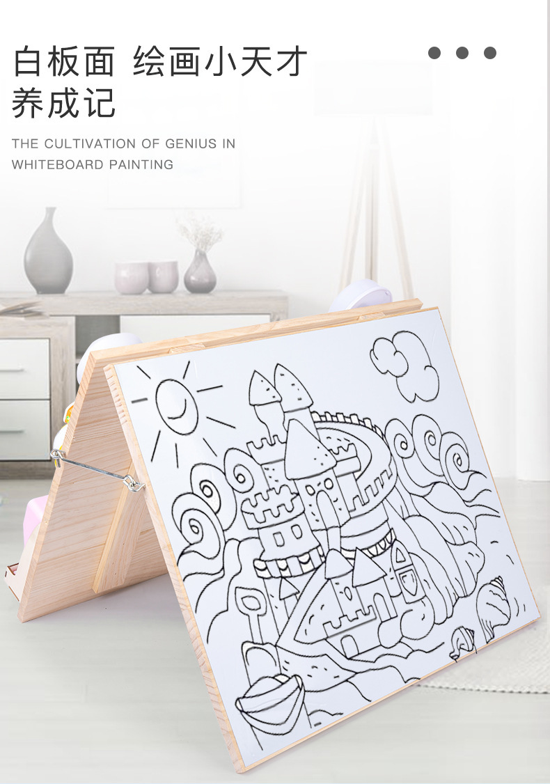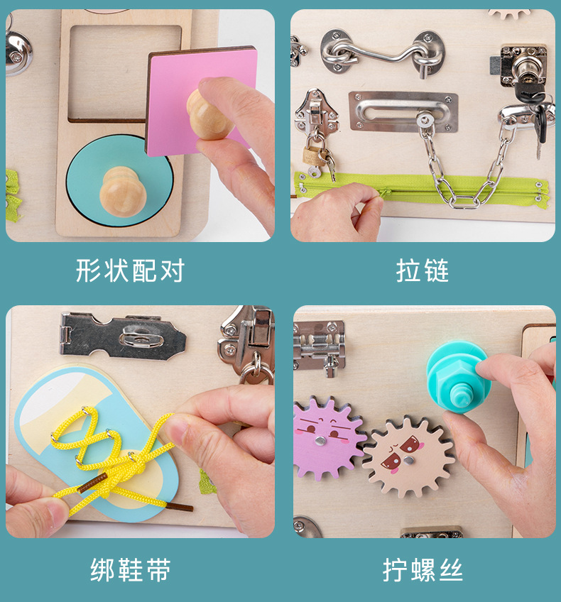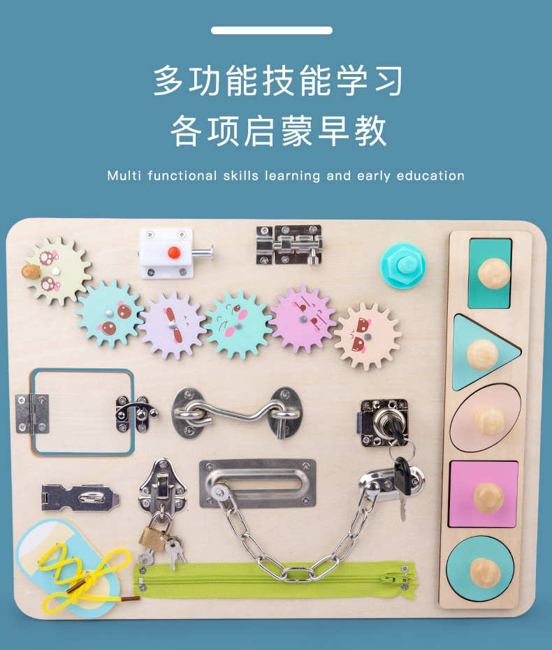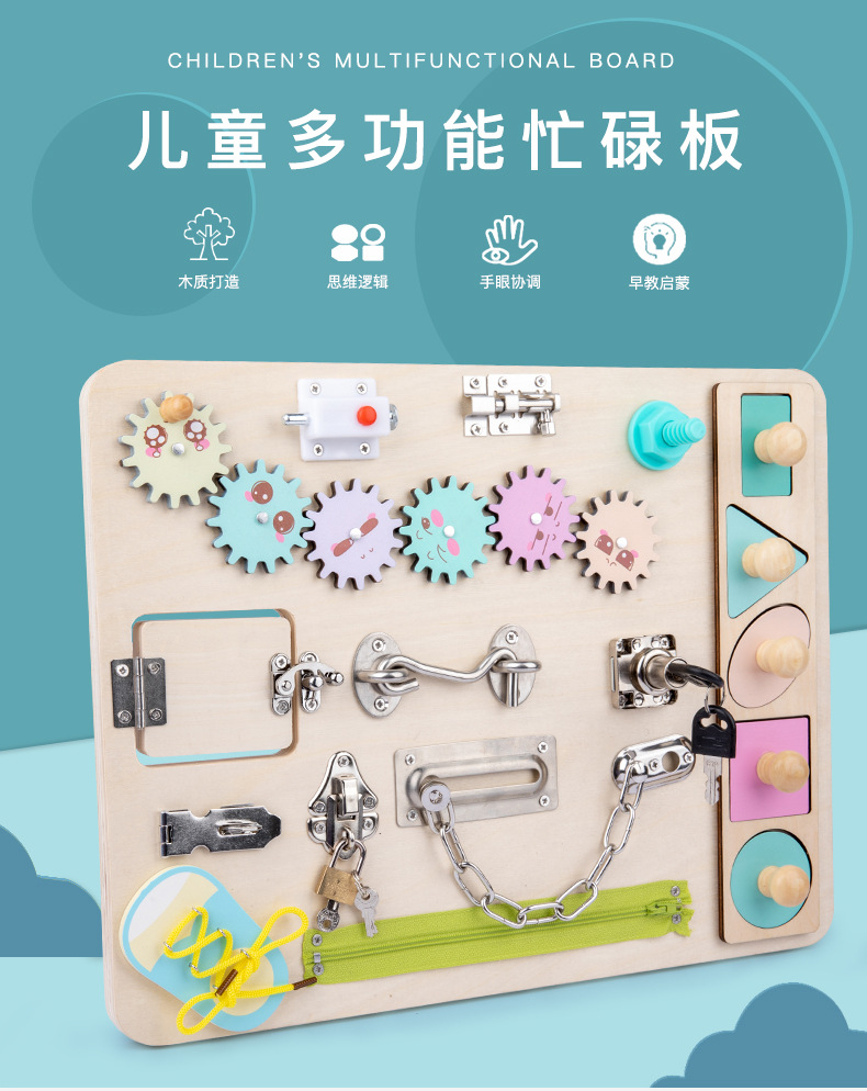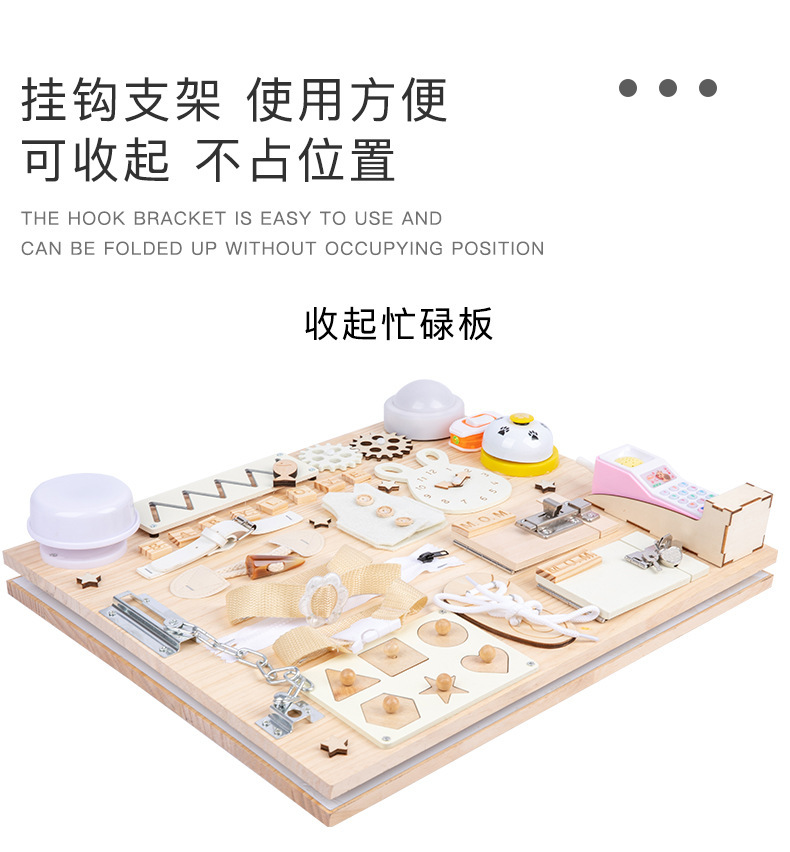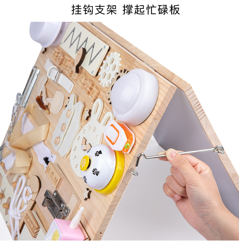 Montessori Tablero de dibujo de madera de doble cara multifuncional para niños Tablero ocupado Desbloqueo de zapatos Reloj Puzzle Iluminación Juguetes de ciencia y educación