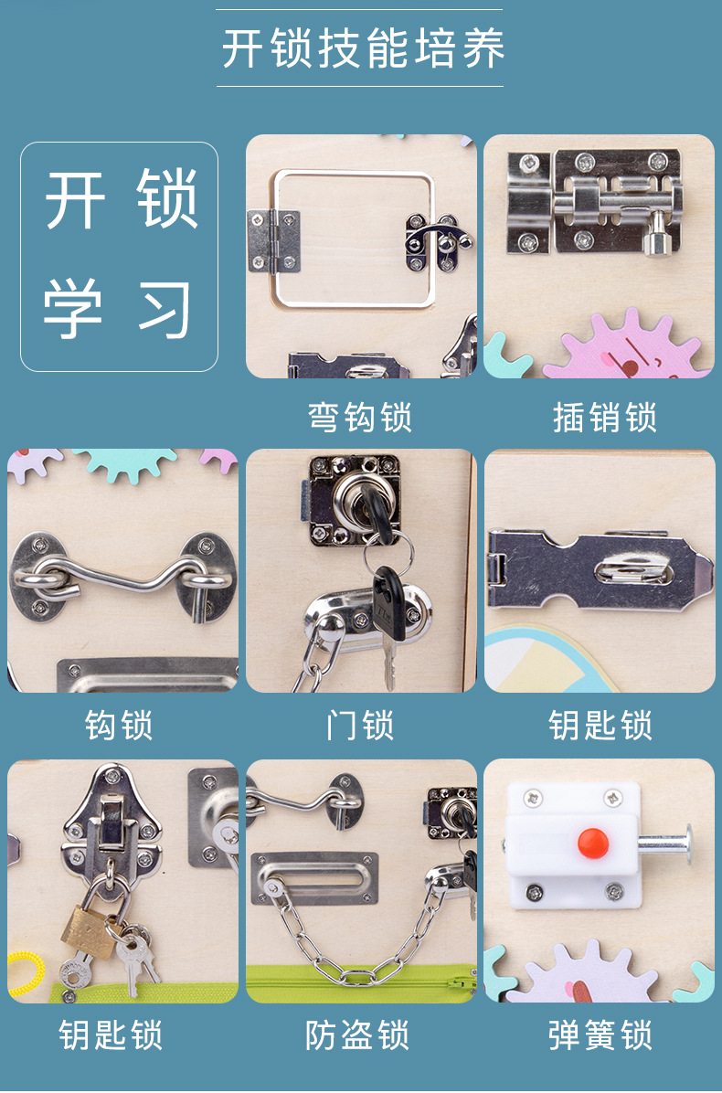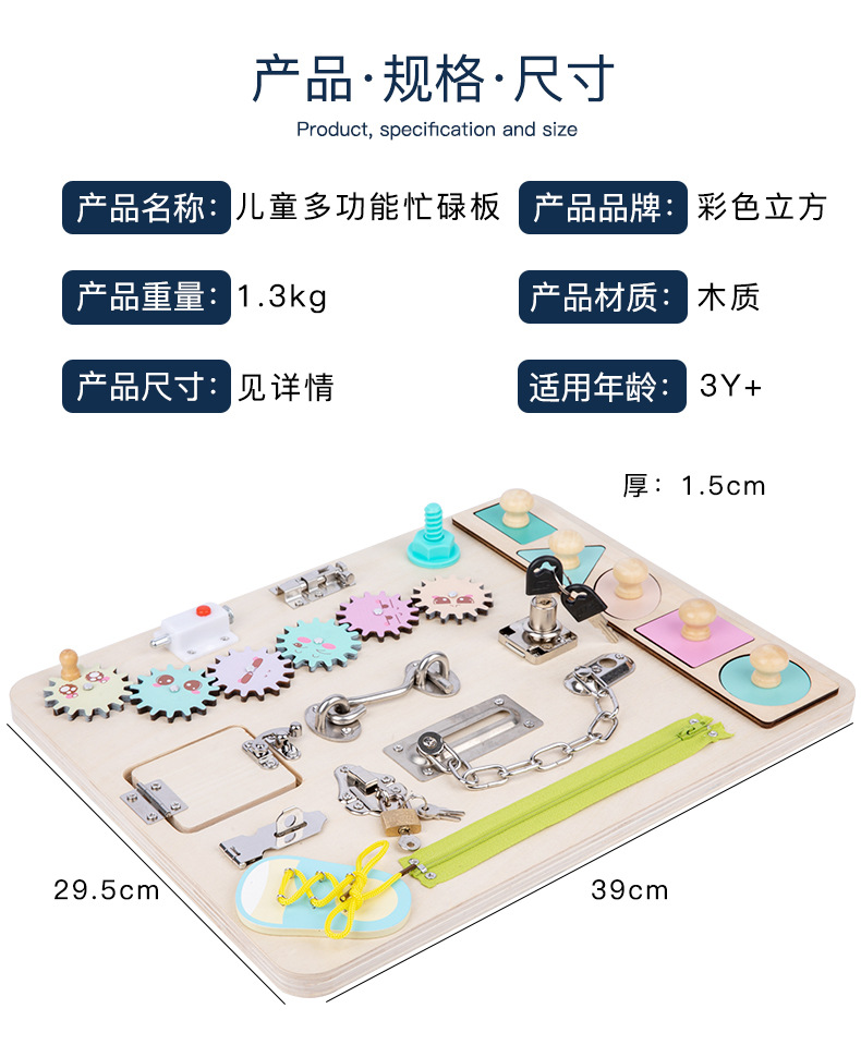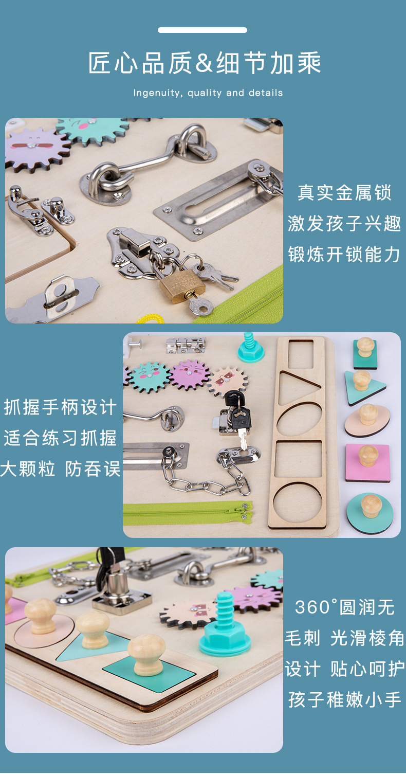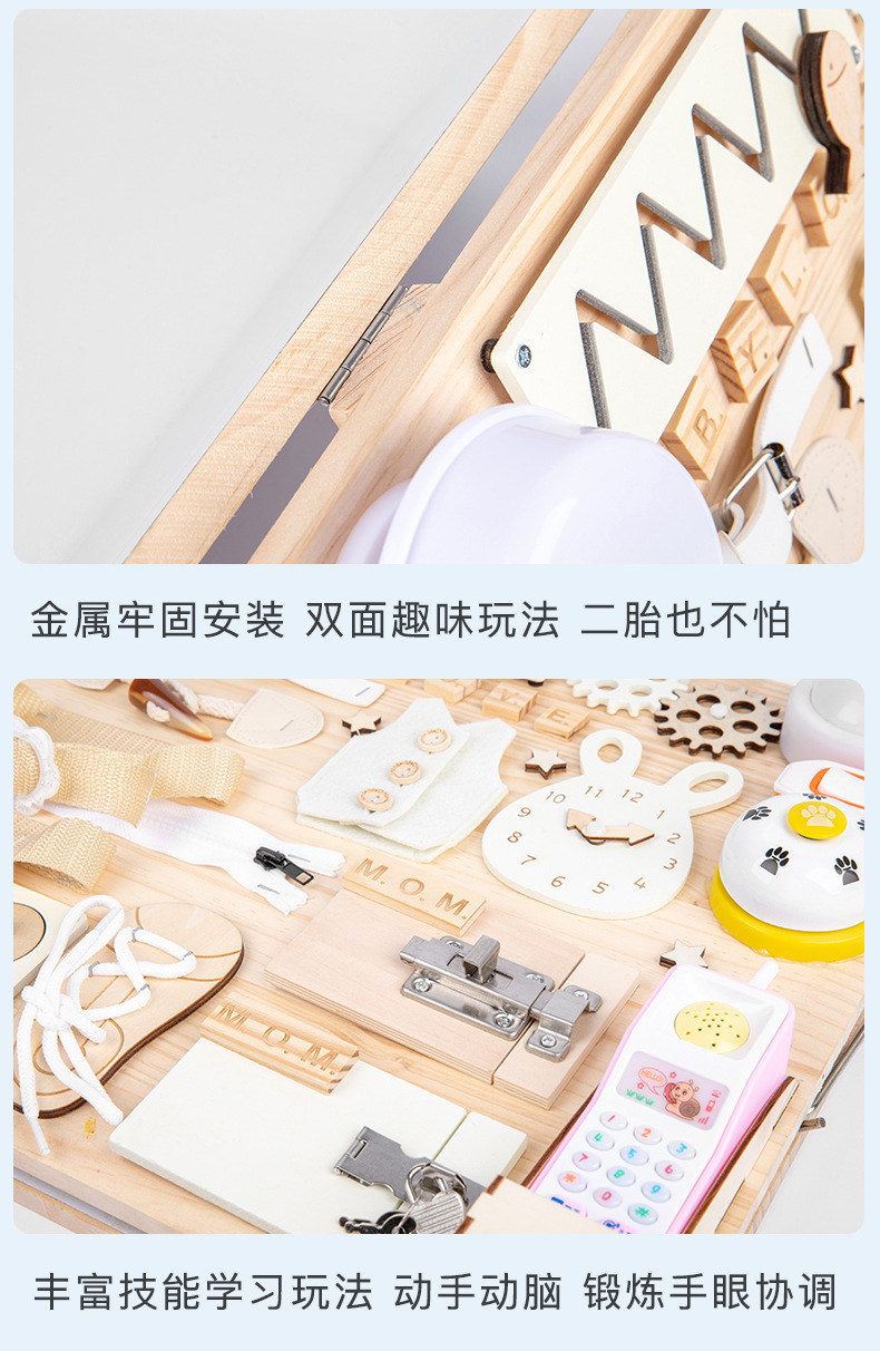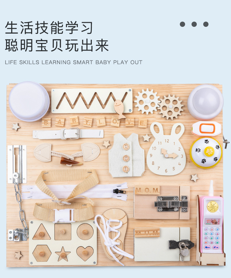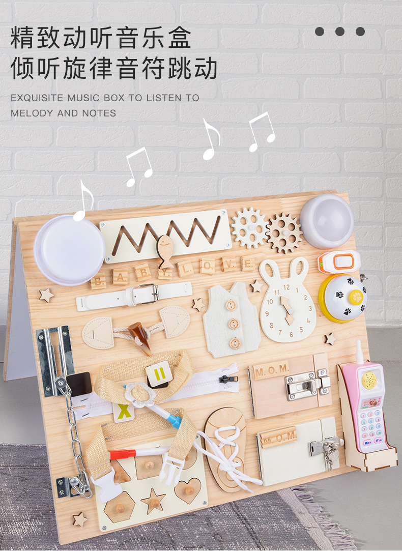 Montessori Tablero de dibujo de madera de doble cara multifuncional para niños Tablero ocupado Desbloqueo de zapatos Reloj Puzzle Iluminación Juguetes de ciencia y educación