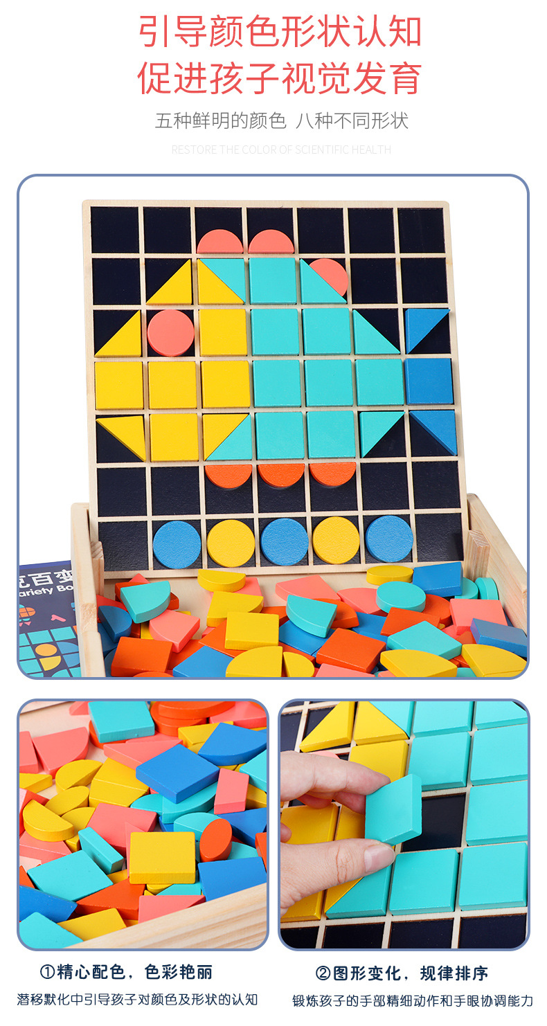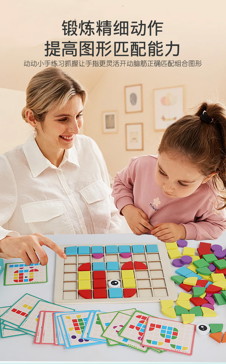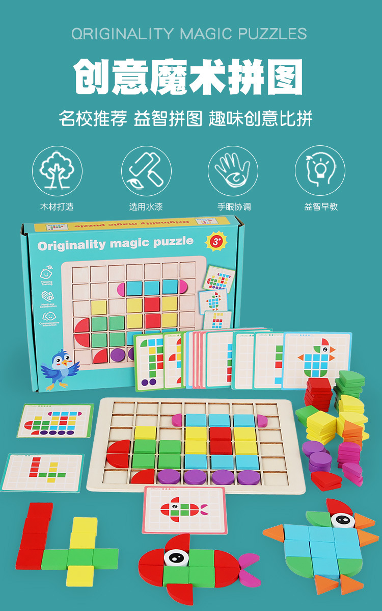 Cpc Cruz-frontera niños de madera mosaico 3D bloque de construcción estéreo rompecabezas niño color cognitivo educación temprana juego de puzzle