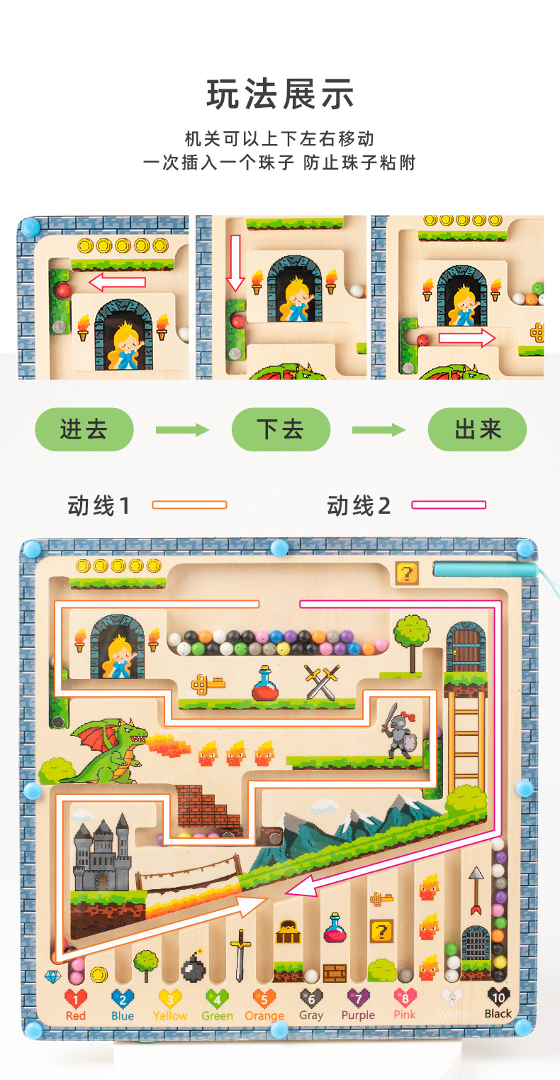 CPC CE DE MADERA tres en uno laberinto pluma magnética Digital Color del grano a juego concentración juguetes educativos