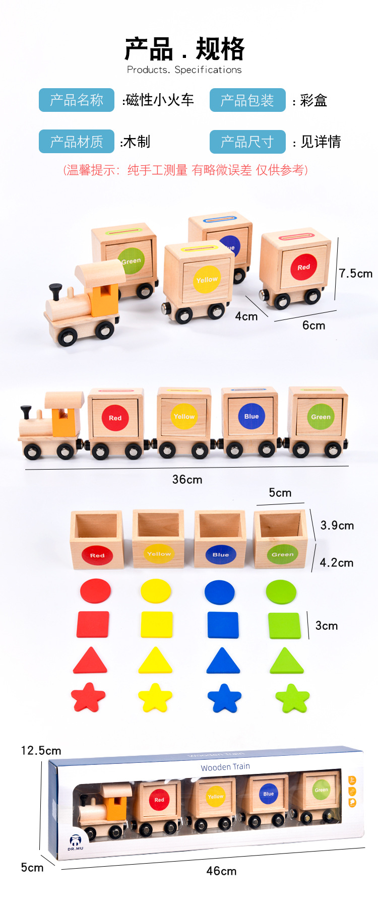 CPC CE forma magnética de madera clasificación de colores pequeño tren ejercicio acción fina coordinación mano-ojo juguetes educativos