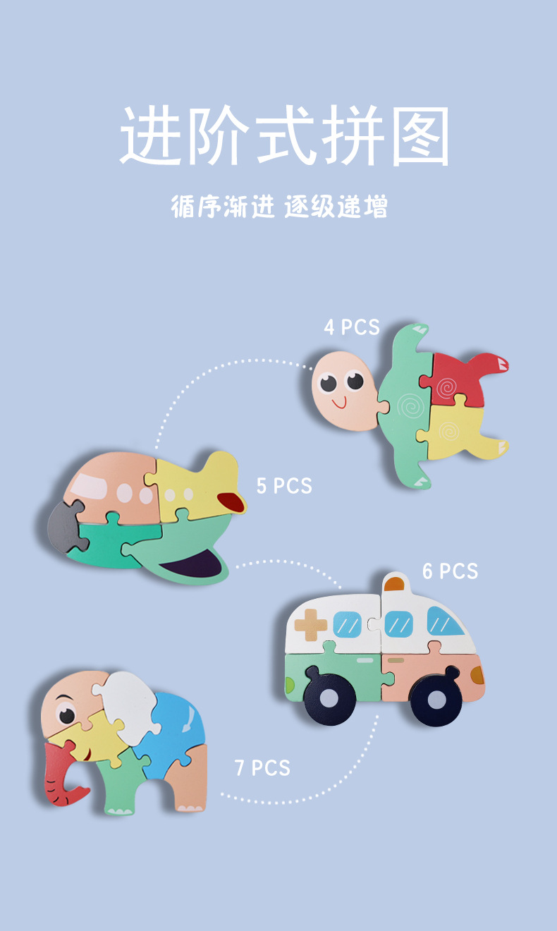 Nuevo rompecabezas avanzado simple de nivel de entrada educación temprana para niños Ilustración desarrollo de inteligencia infantil rompecabezas tridimensional simple