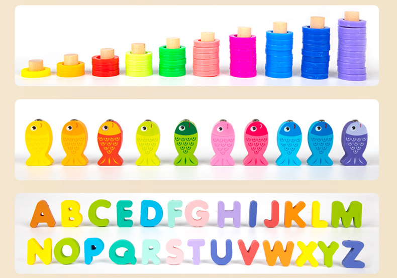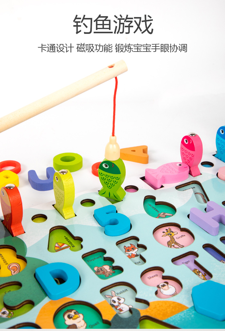 Diversión DE LOS NIÑOS letras y números madera a juego logarítmica bebé pesca forma cognición educación temprana juguetes educativos
