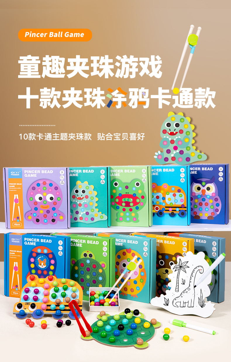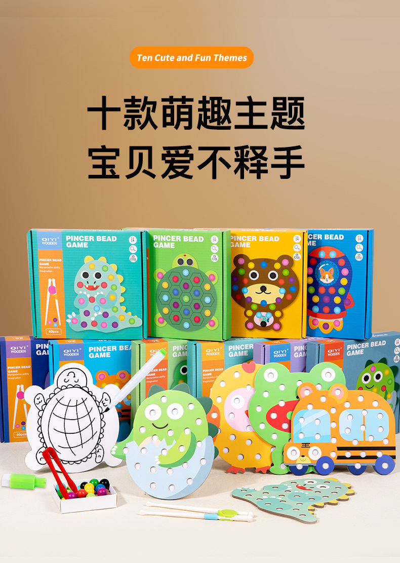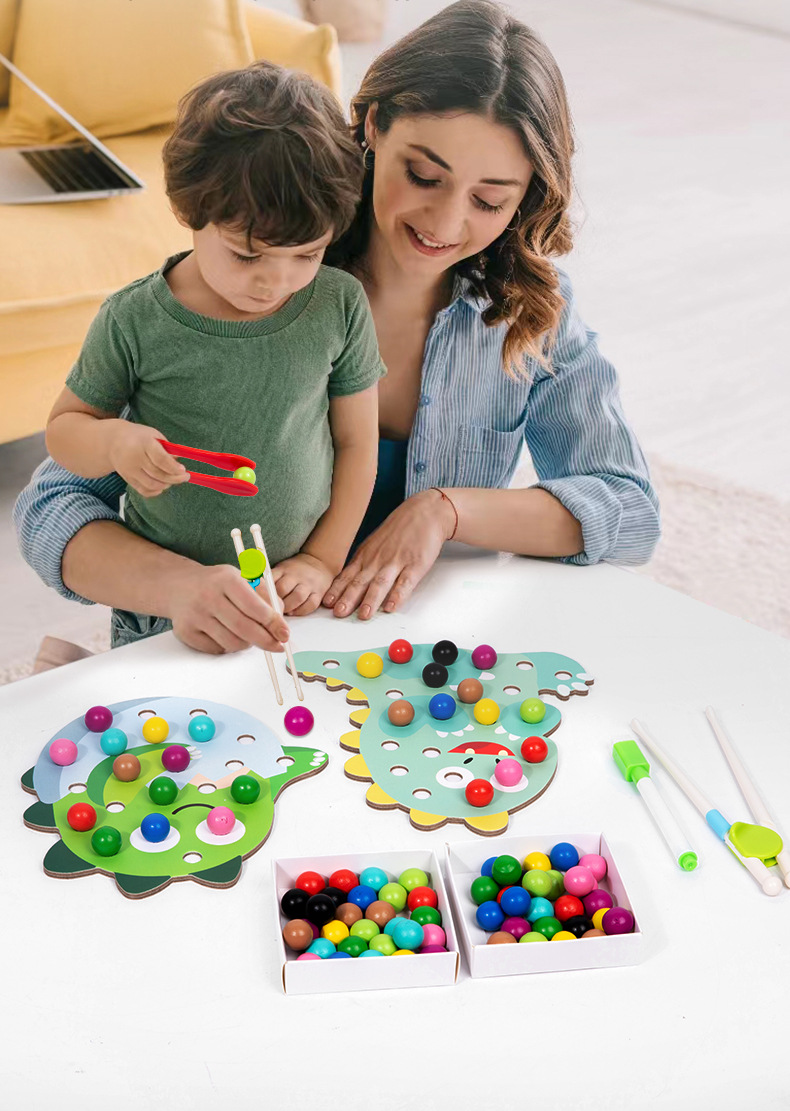 Los niños de madera multi-estilo tema lindo perlas de pintura juego de entrenamiento interactivo entre padres e hijos acción fina juguetes educativos
