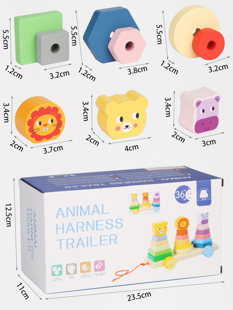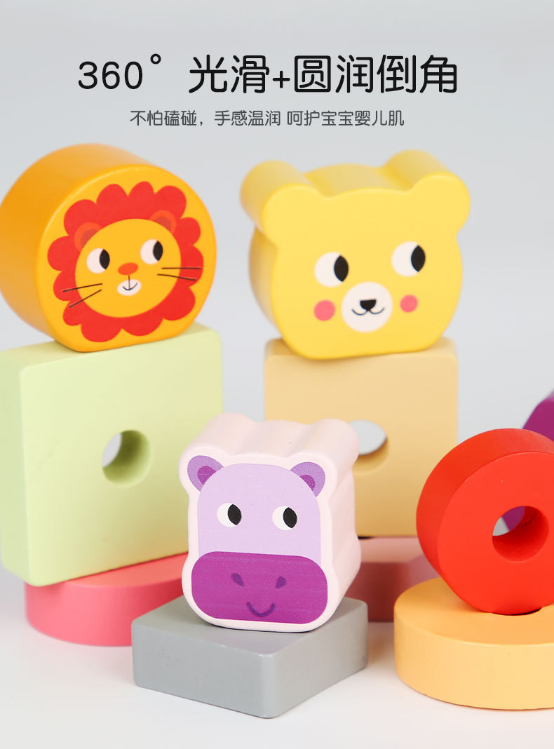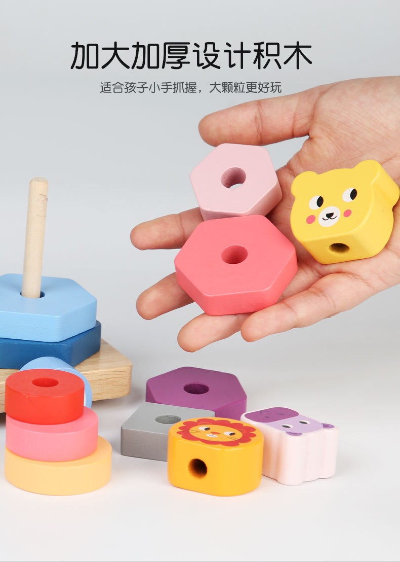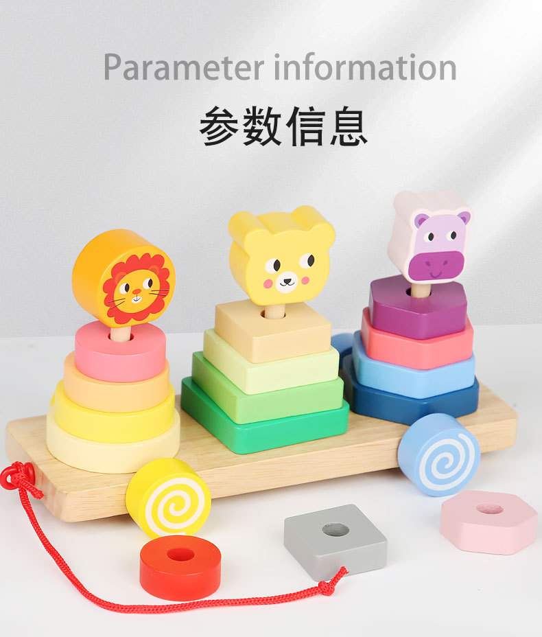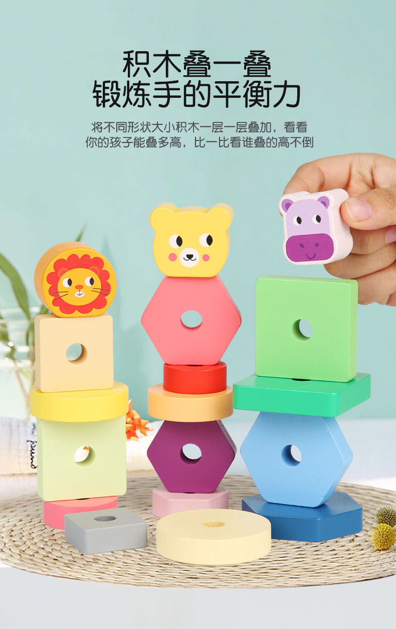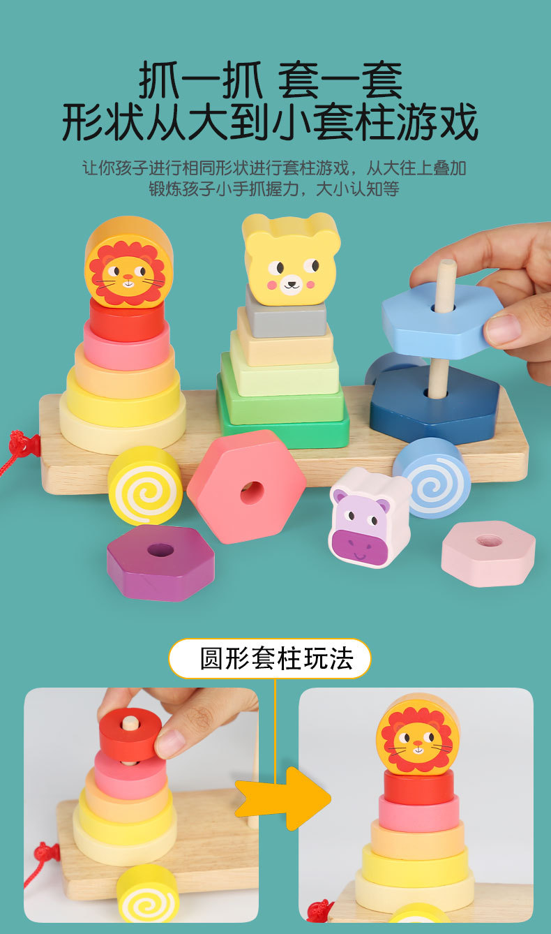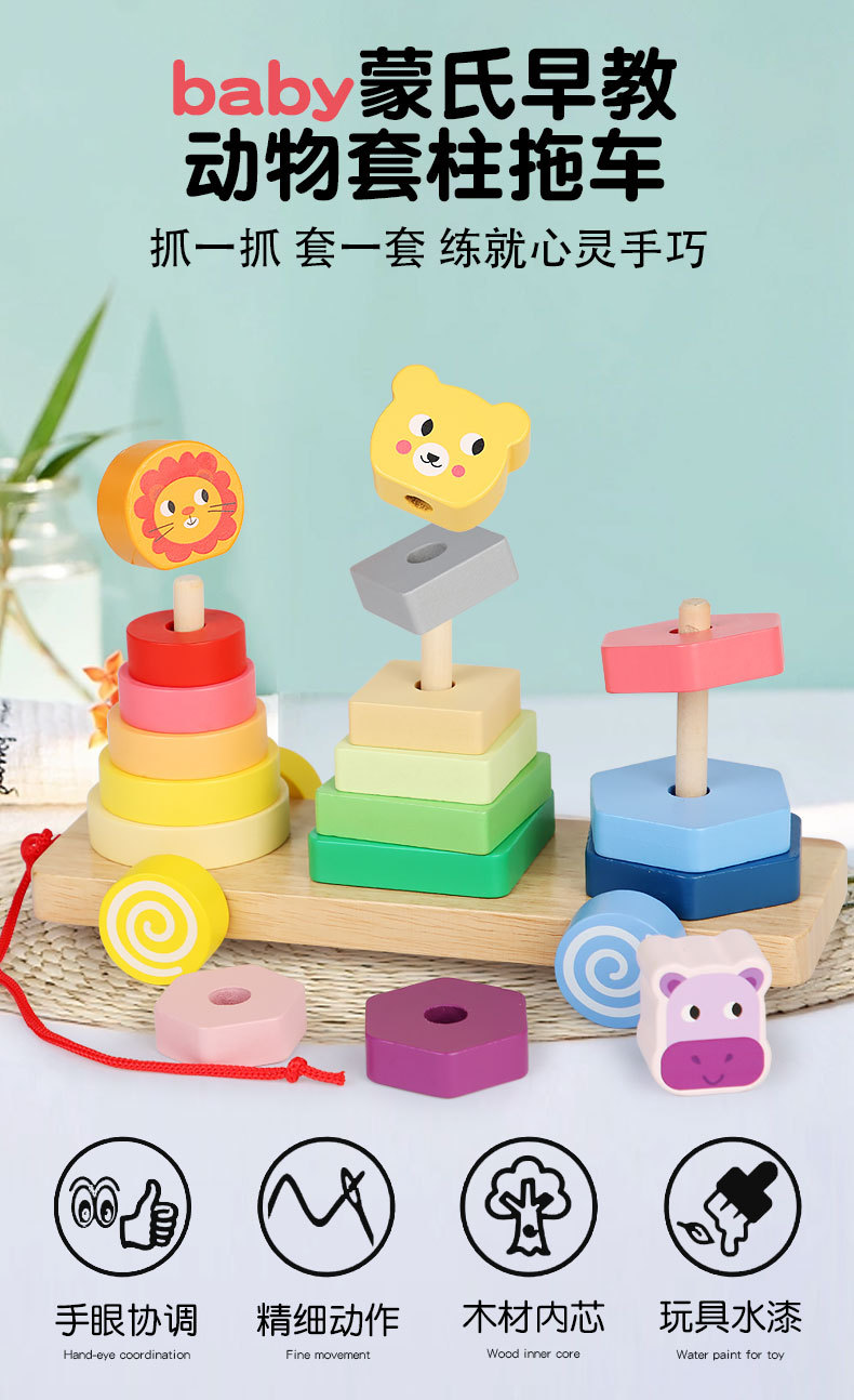 Bebé de madera Montessori educación temprana conjunto animal columna remolque ejercicio niños agarre tamaño cognitivo juguetes educativos