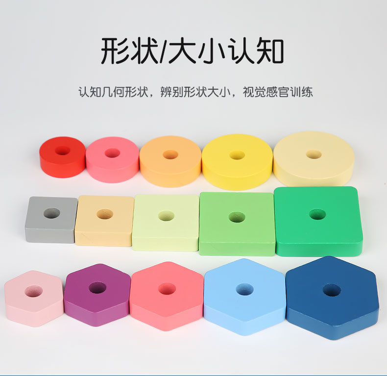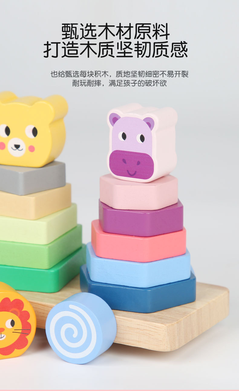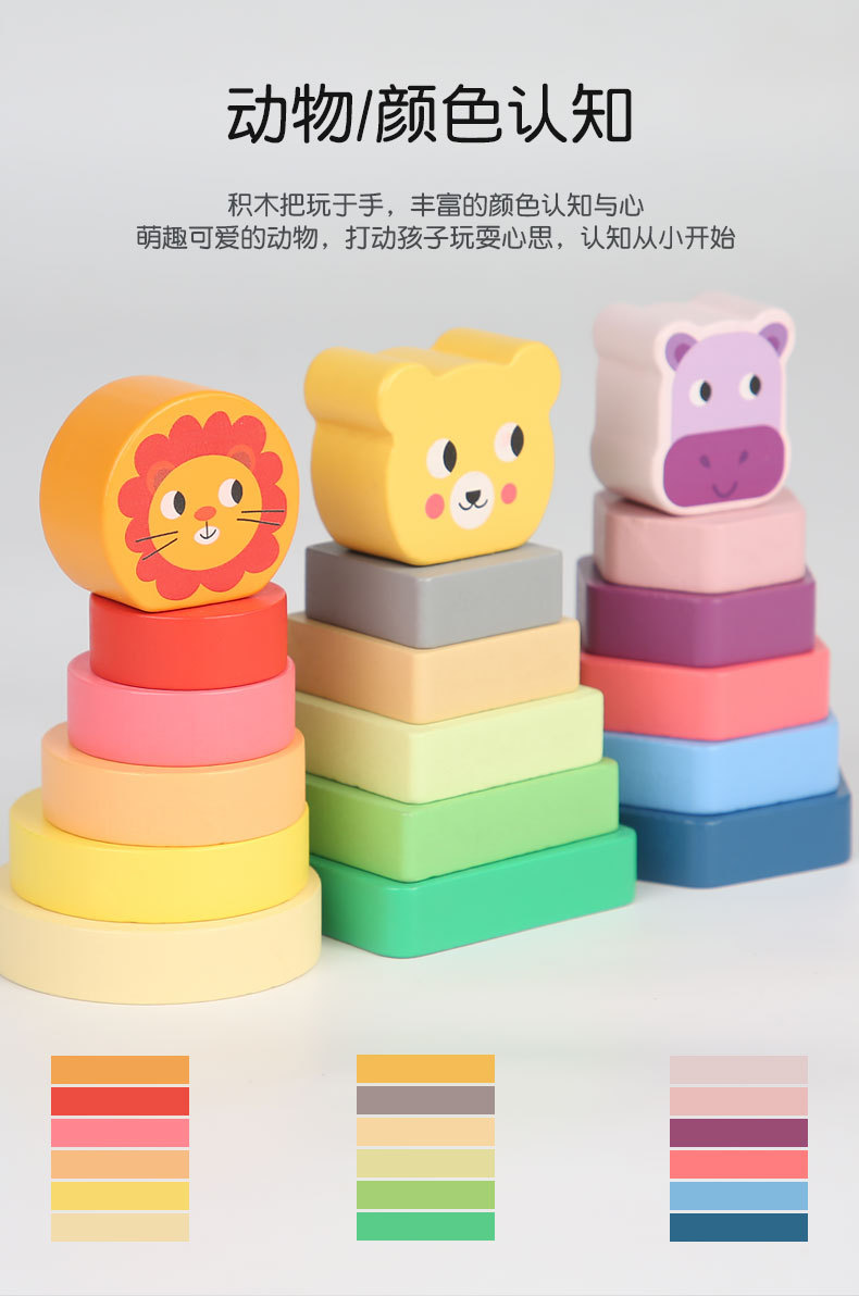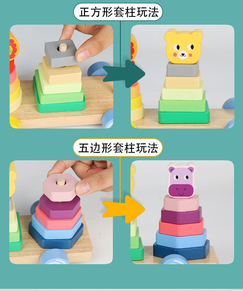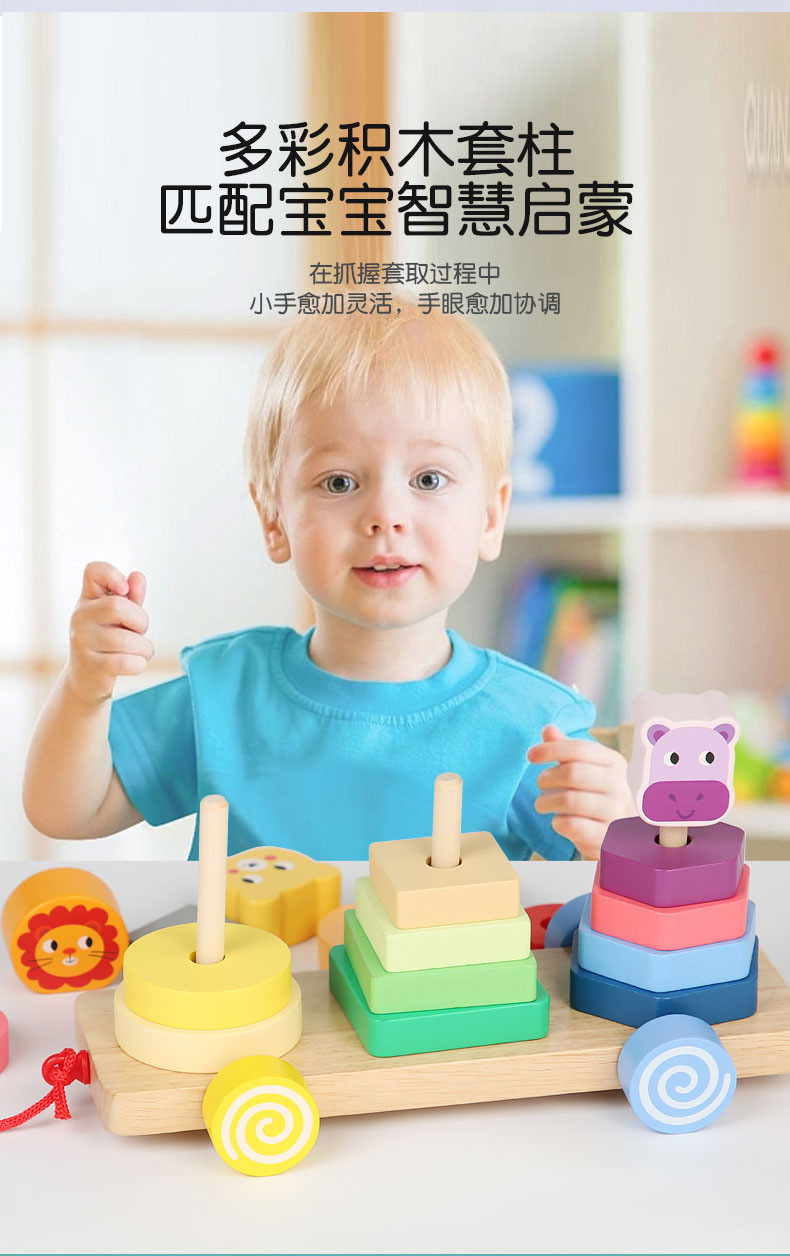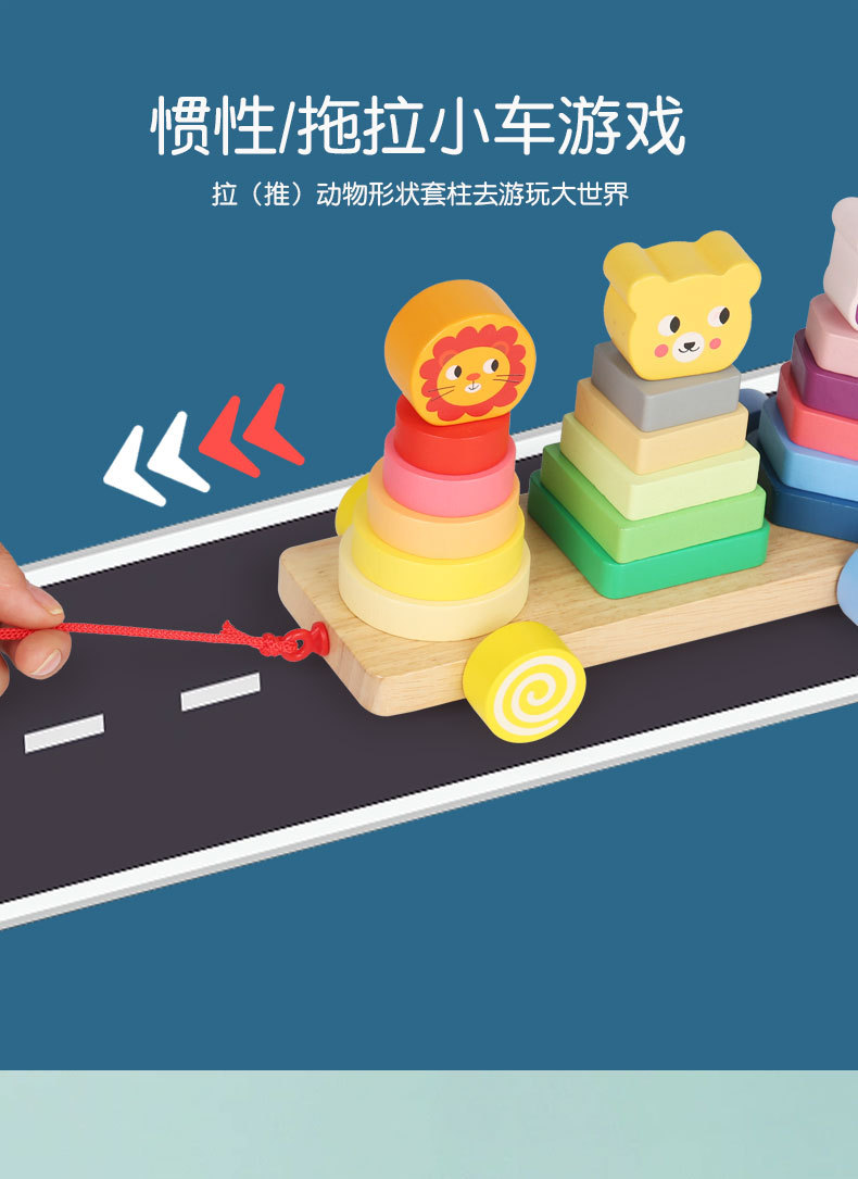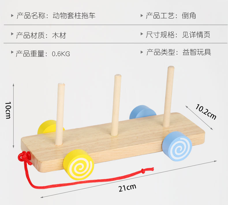 Bebé de madera Montessori educación temprana conjunto animal columna remolque ejercicio niños agarre tamaño cognitivo juguetes educativos