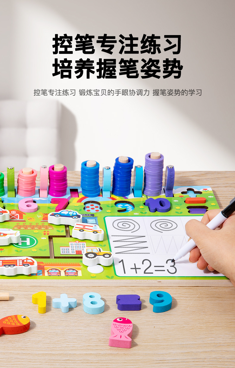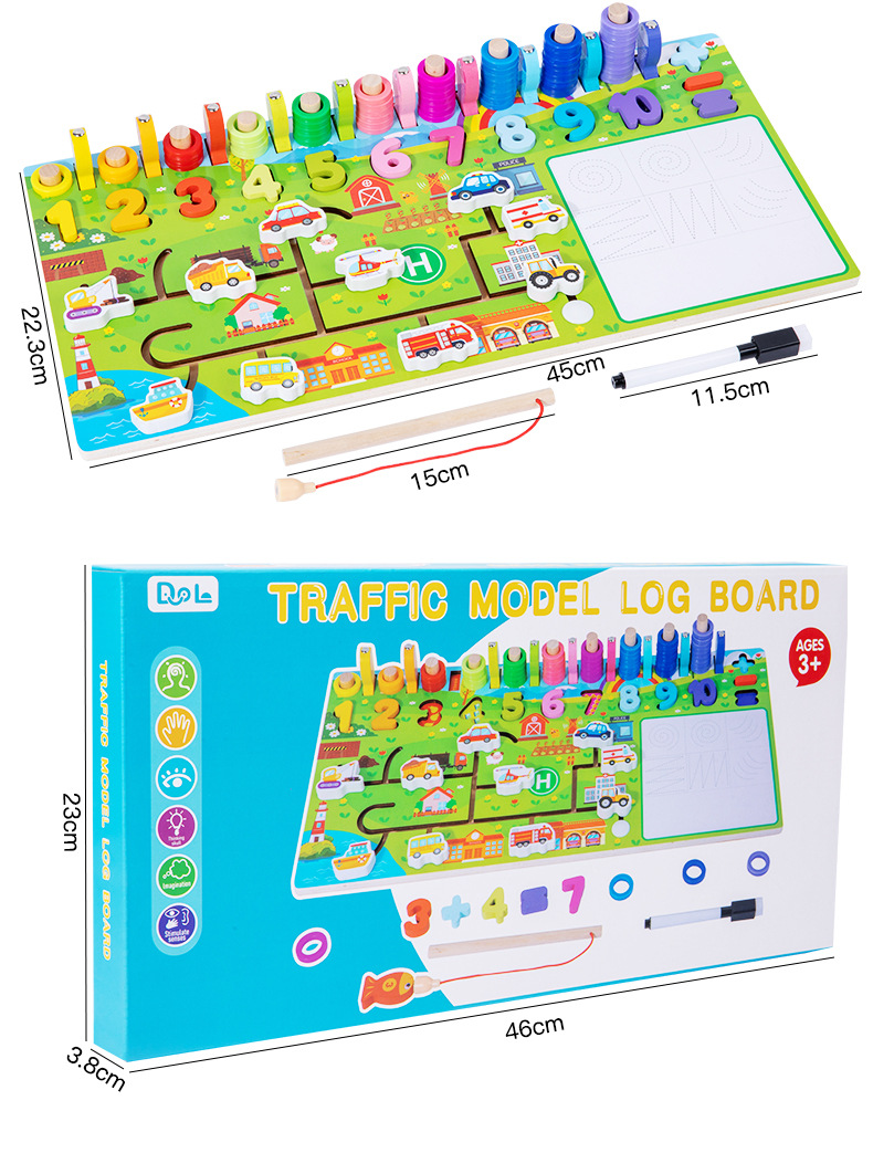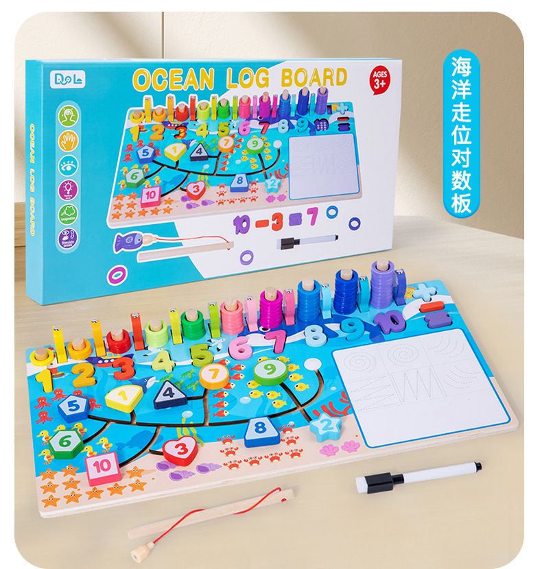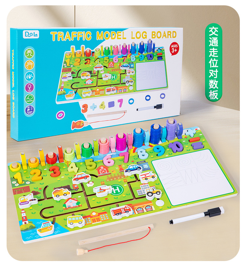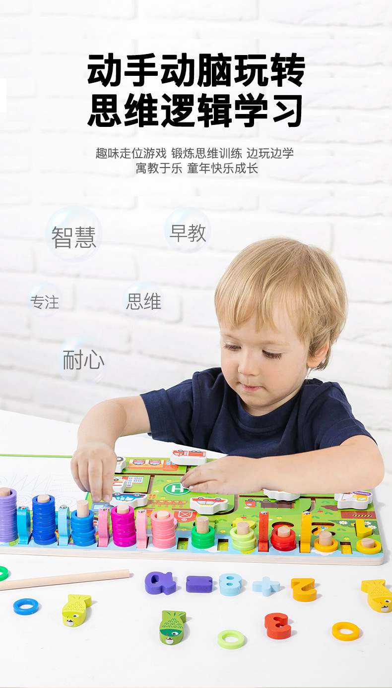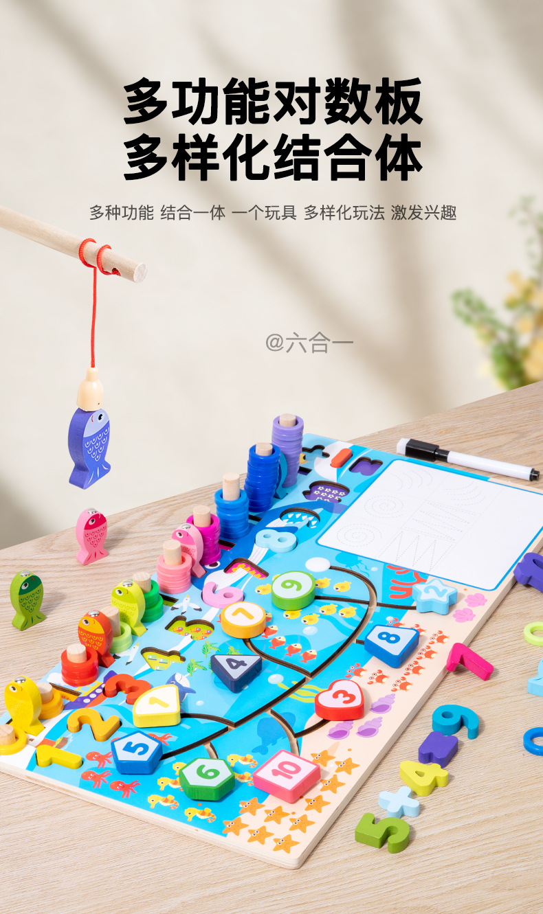 Tablero logarítmico para caminar multifuncional de madera para niños seis en uno divertido juego de dibujos animados modelado diseño juguetes educativos