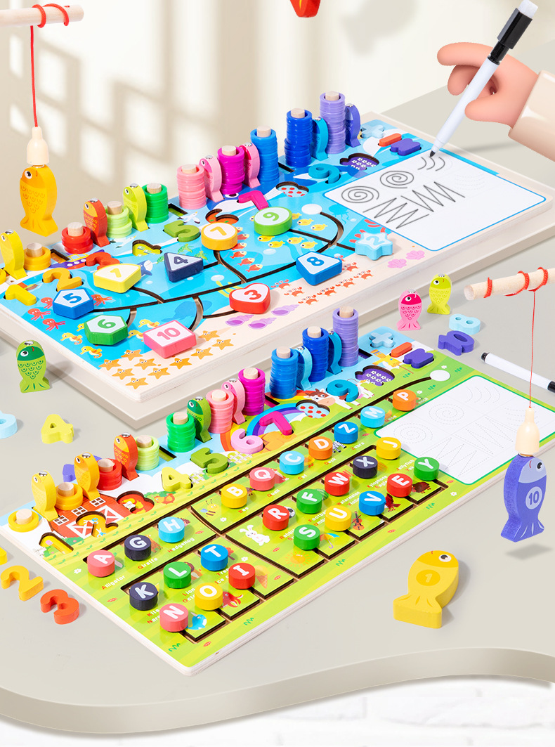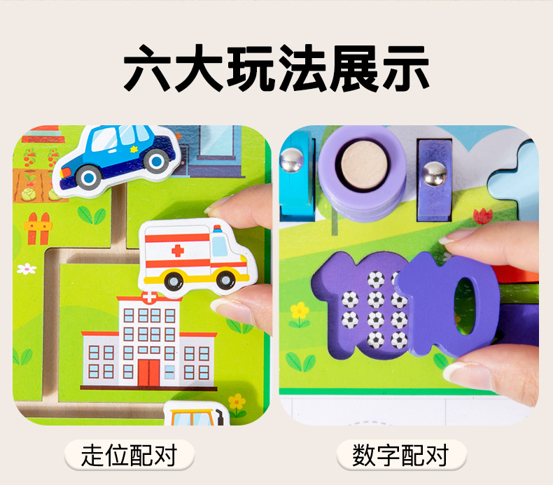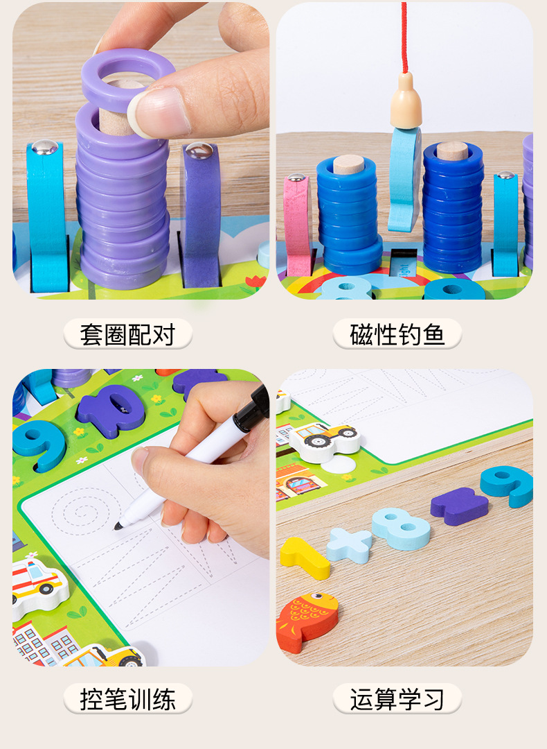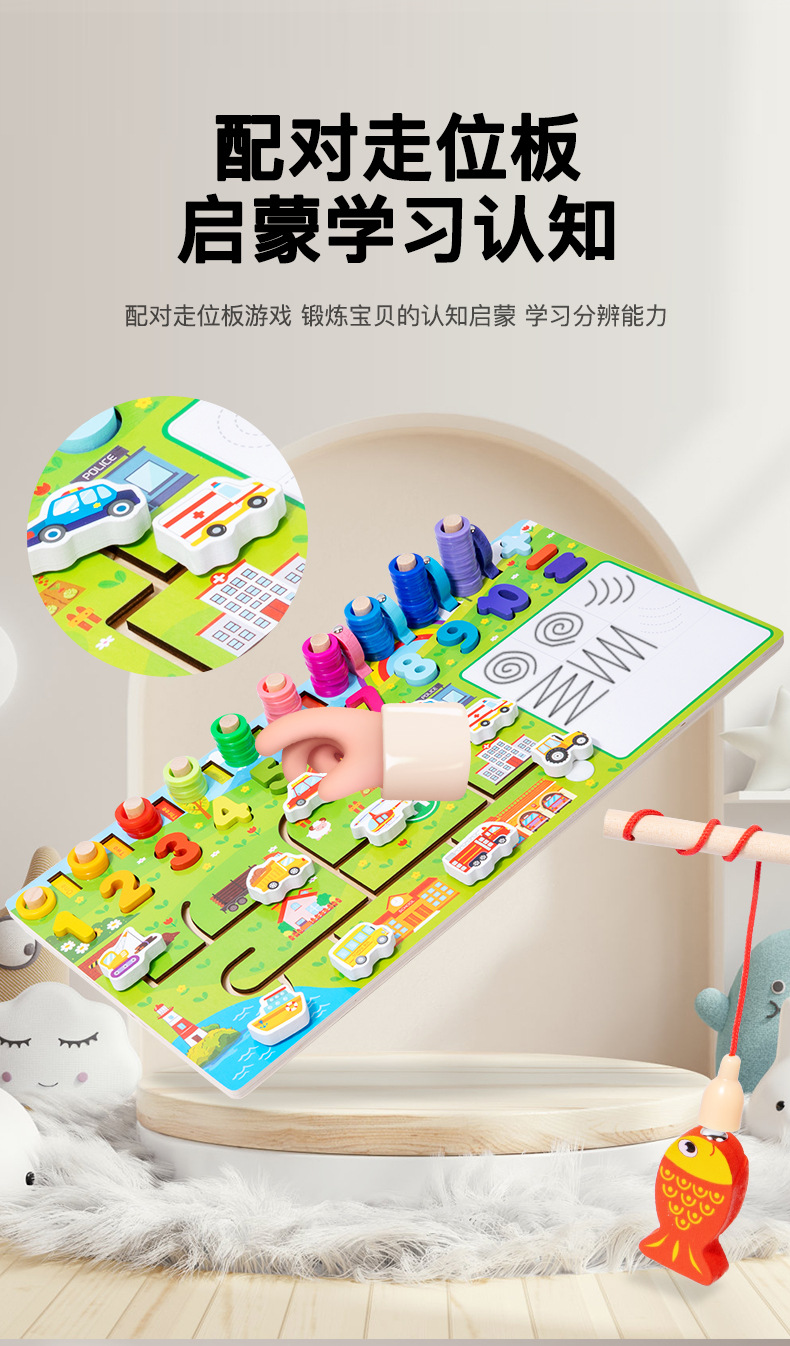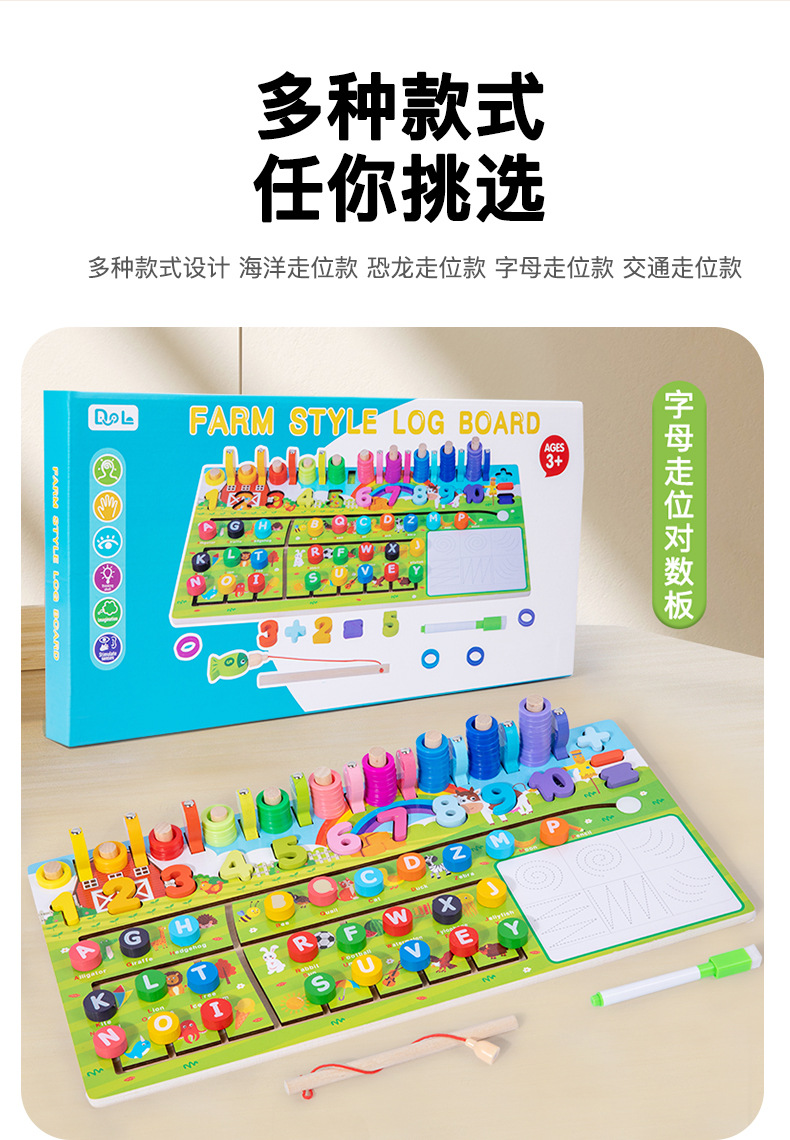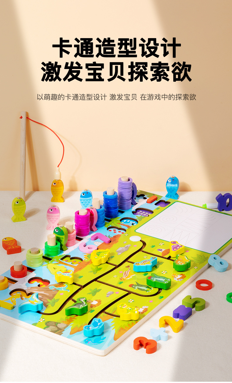 Tablero logarítmico para caminar multifuncional de madera para niños seis en uno divertido juego de dibujos animados modelado diseño juguetes educativos