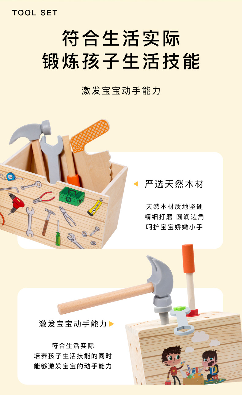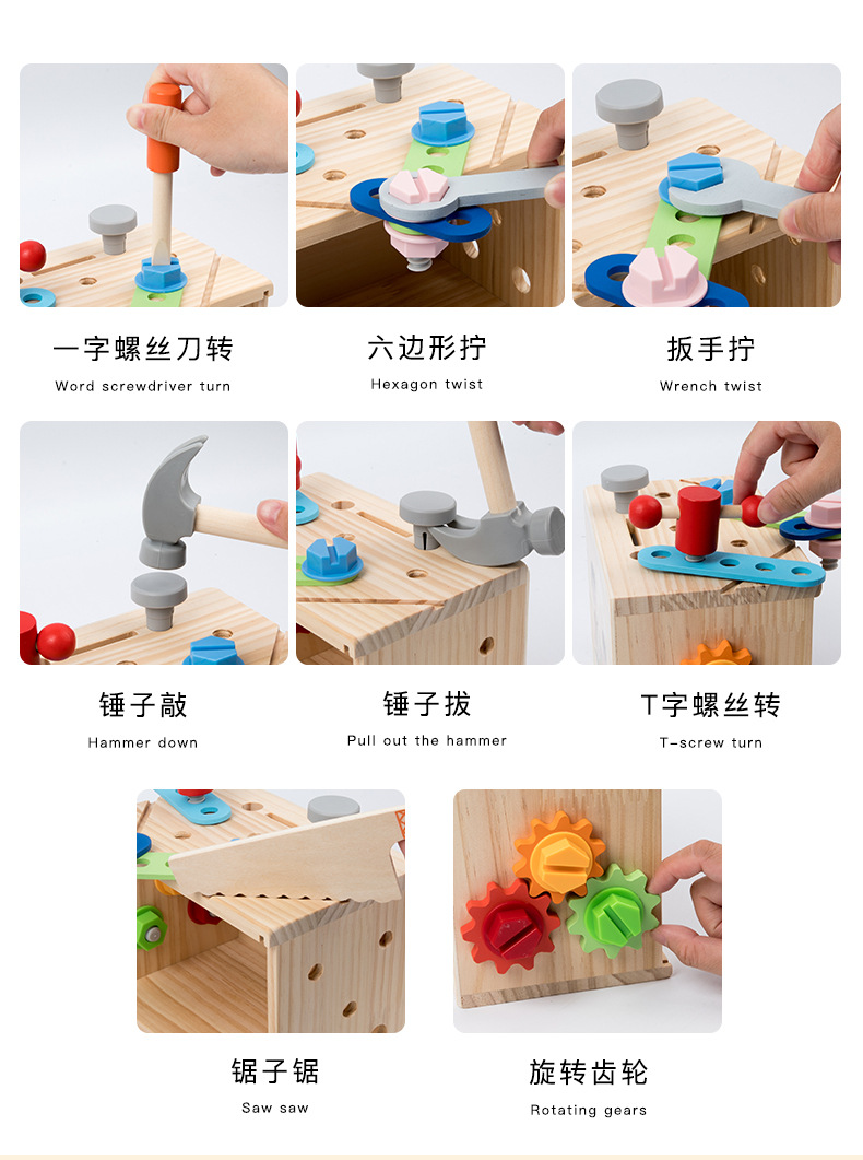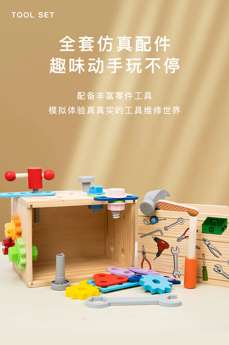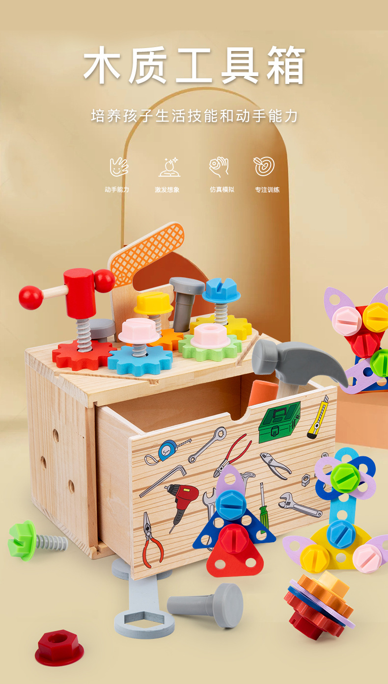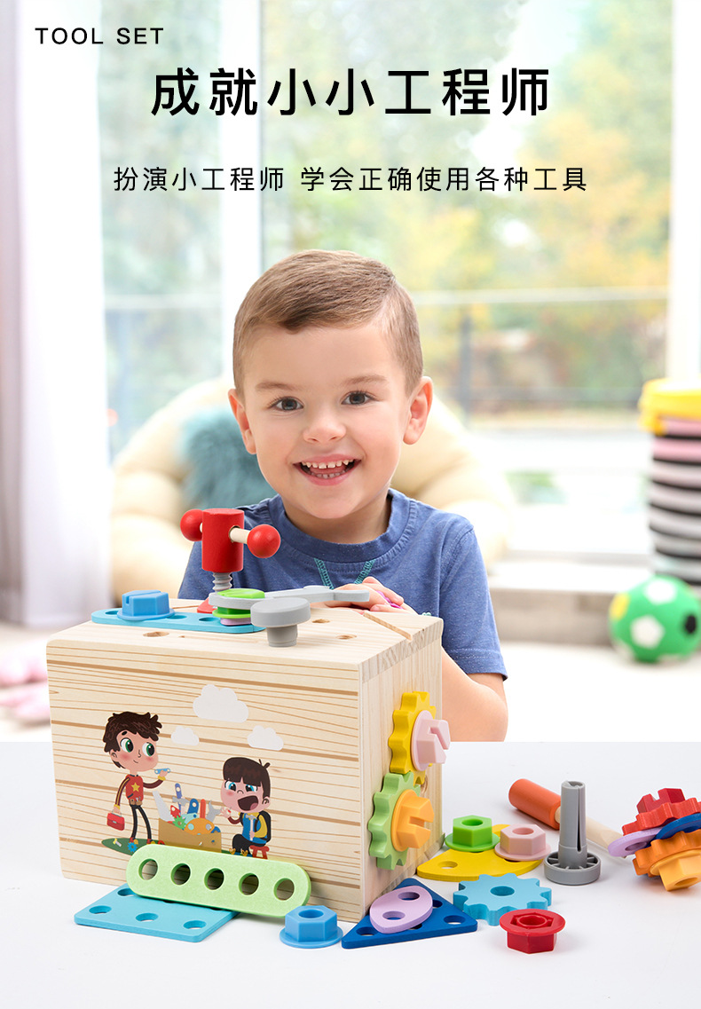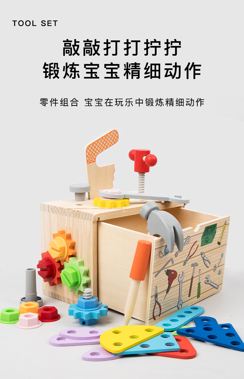 Caja de herramientas de cajón multifunción de madera para niños traje bebé color juego ejercicio coordinación mano-ojo ángulo juguetes educativos