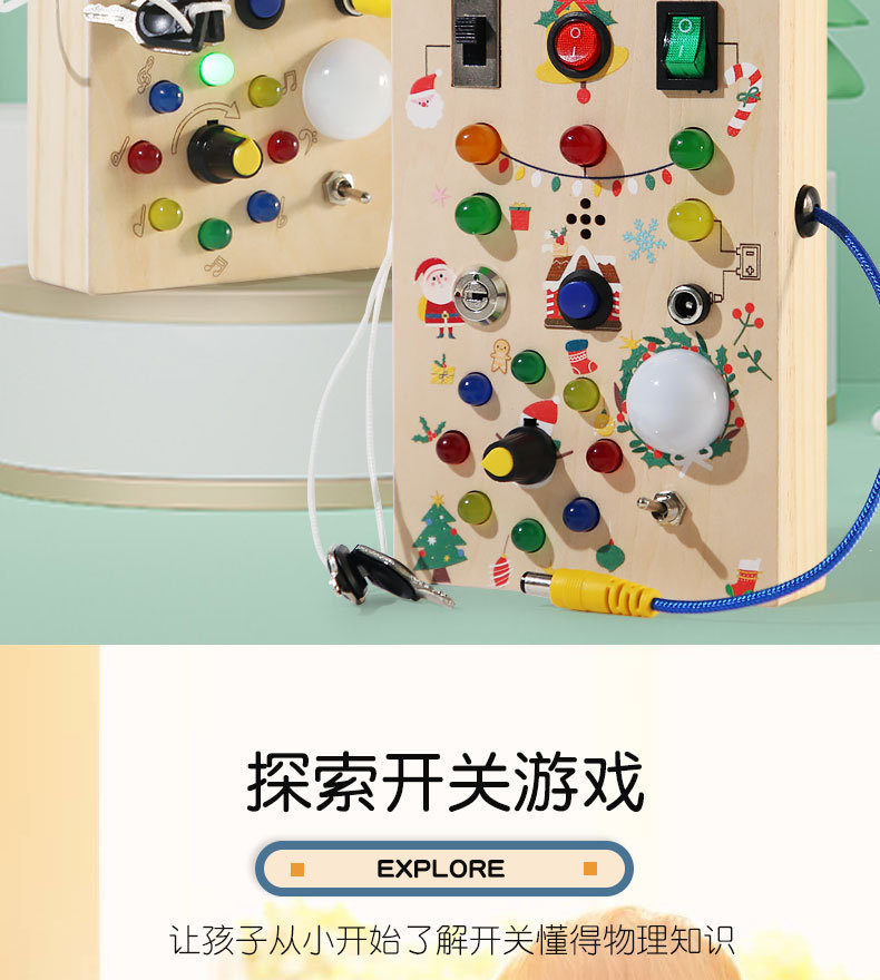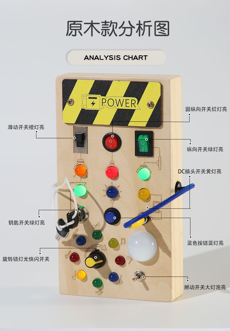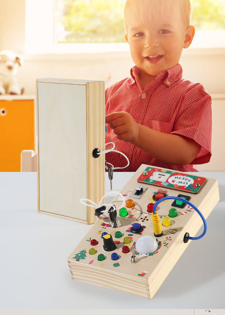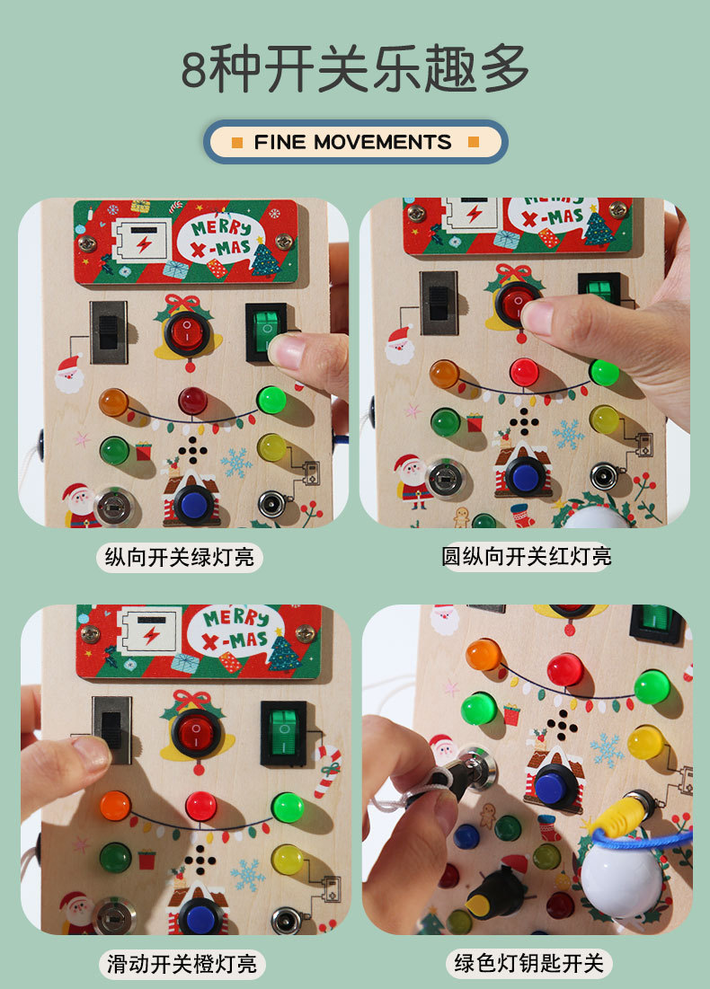 Tablero ocupado de madera para niños interruptor de luz placa de circuito kindergarten habilidades para la vida acción fina educación temprana juguetes educativos