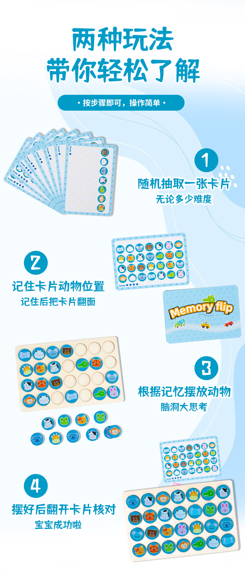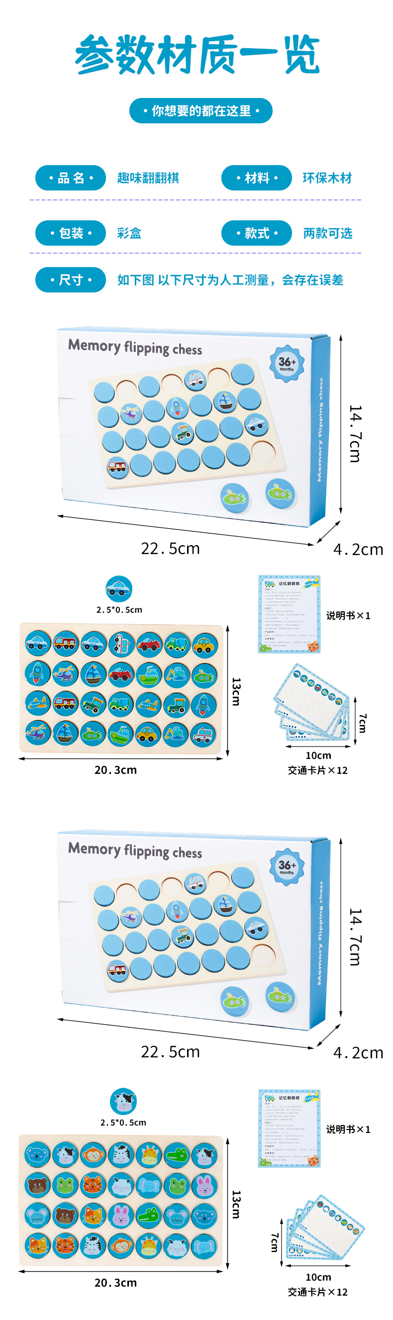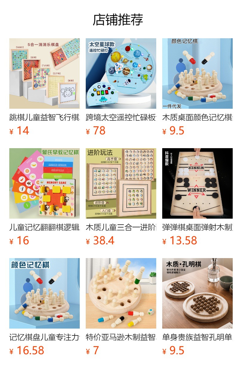 | Colores | Juego de memoria de educación temprana de rompecabezas 0.08kg,Cpcce ajedrez de memoria volteo (modelo animal) 0,2 kg,Cpcce ajedrez de memoria volteo (modelo de tráfico) 0.2 |