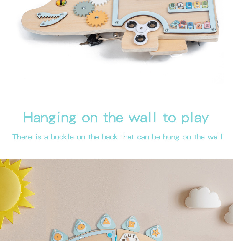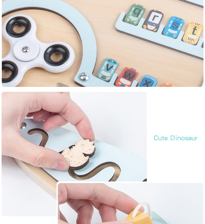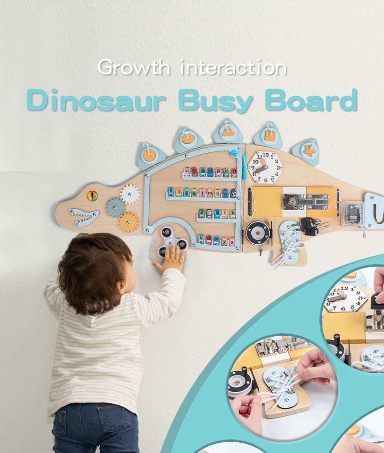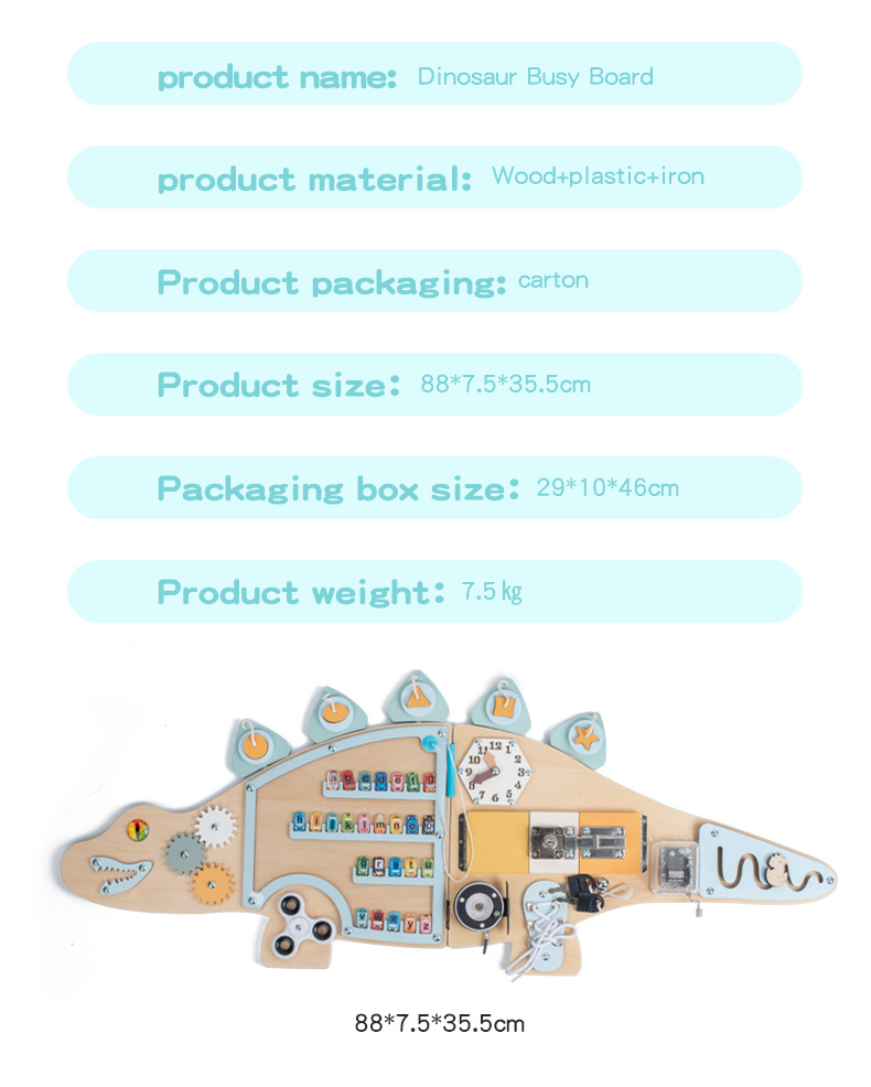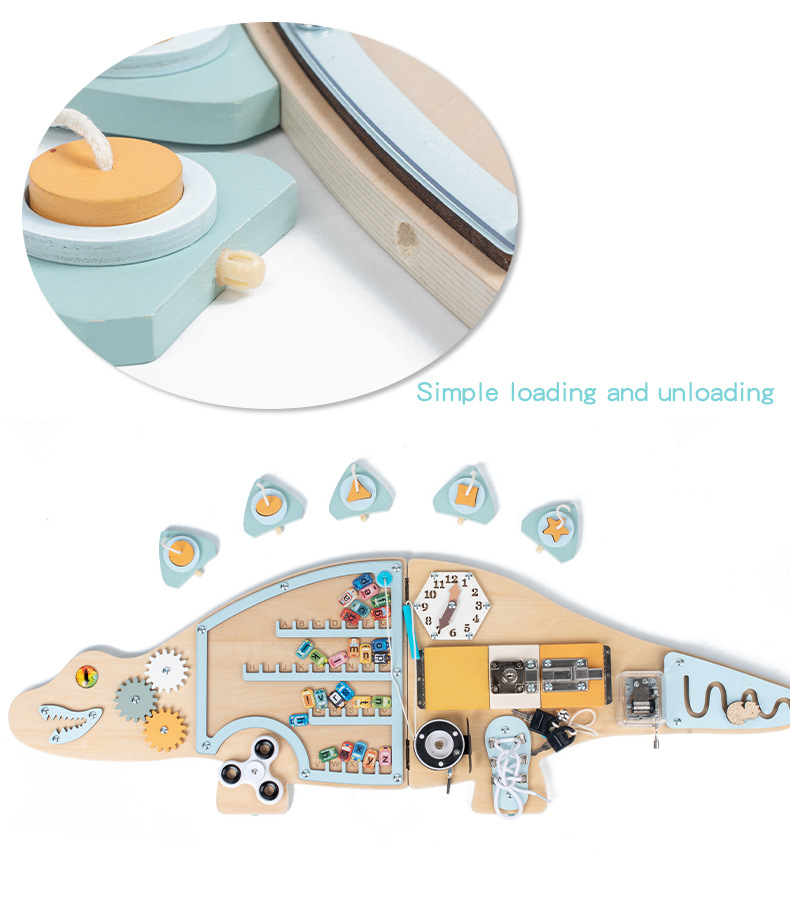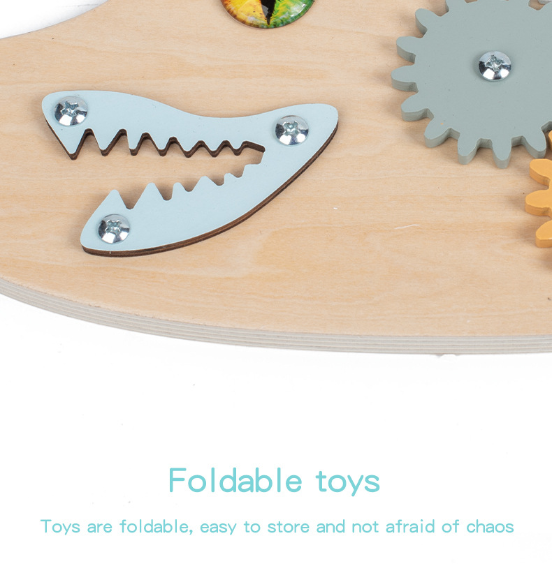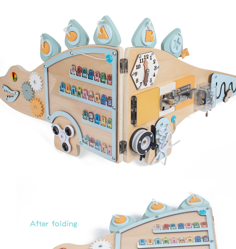 Tablero ocupado con tema de dinosaurio de madera Una variedad de juegos divertidos en un solo engranaje, forma giratoria, combinación de juguetes educativos