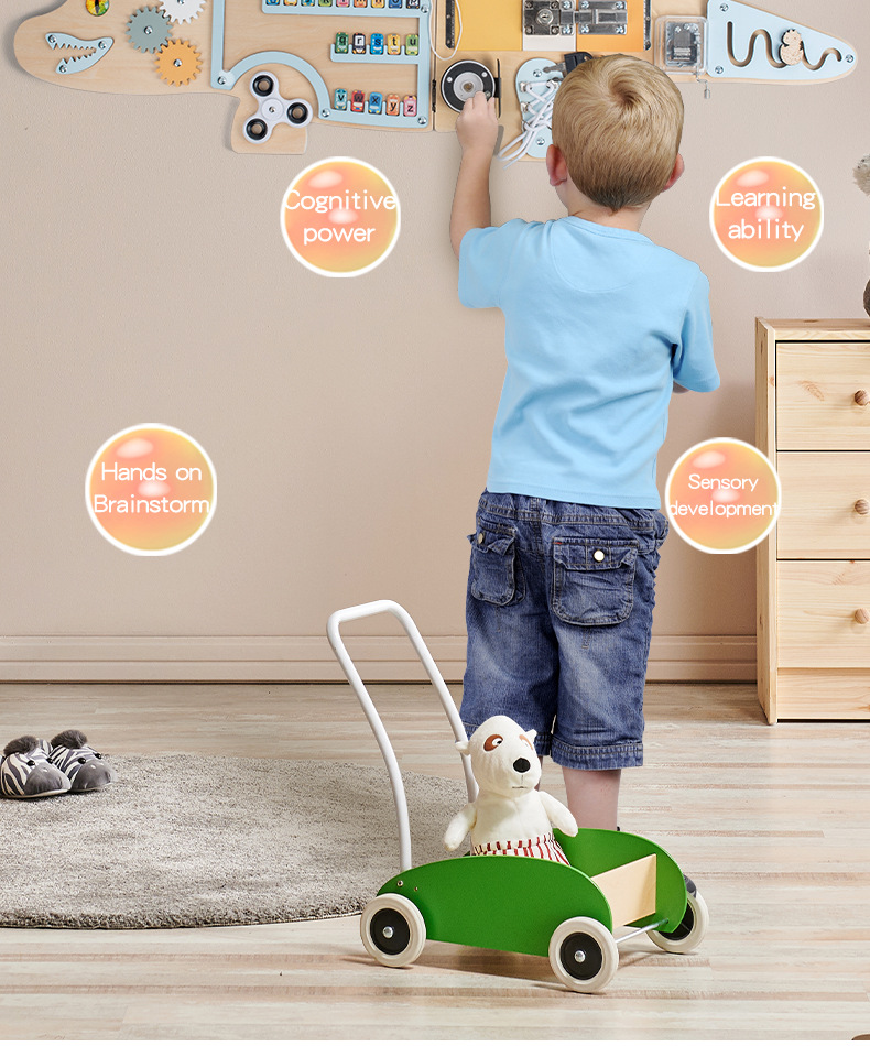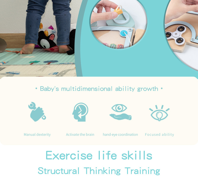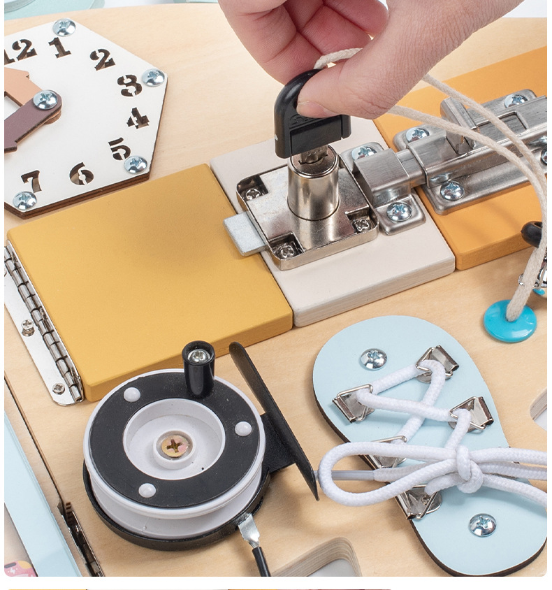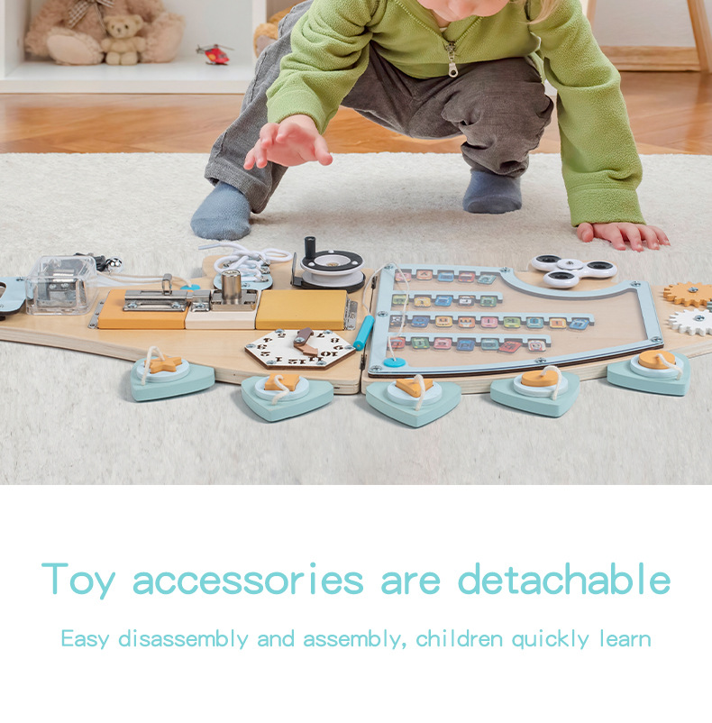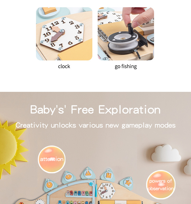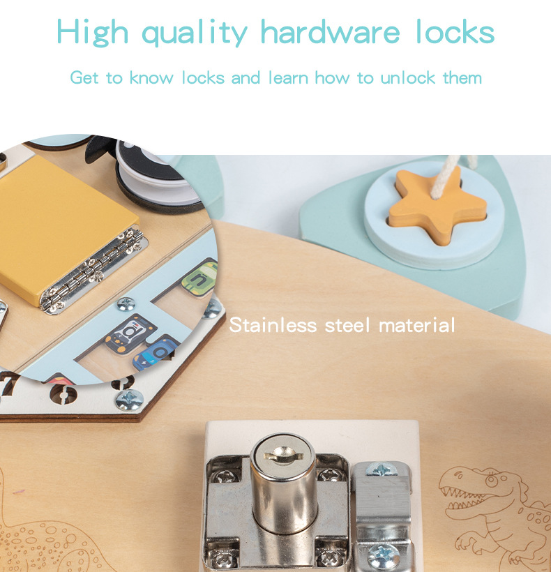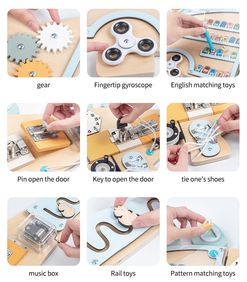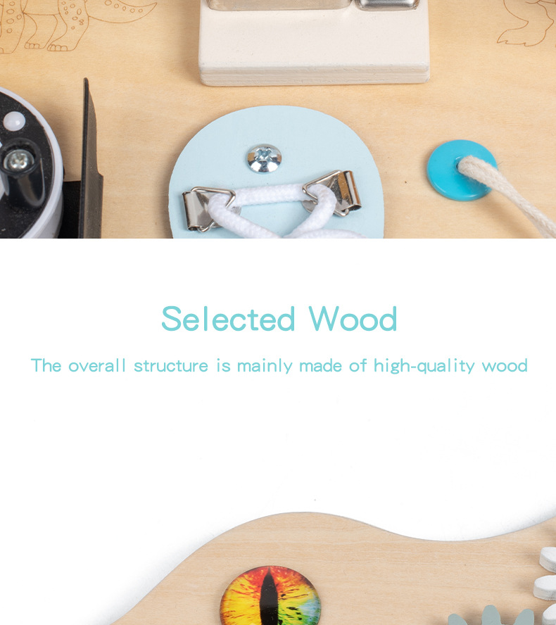 Tablero ocupado con tema de dinosaurio de madera Una variedad de juegos divertidos en un solo engranaje, forma giratoria, combinación de juguetes educativos
