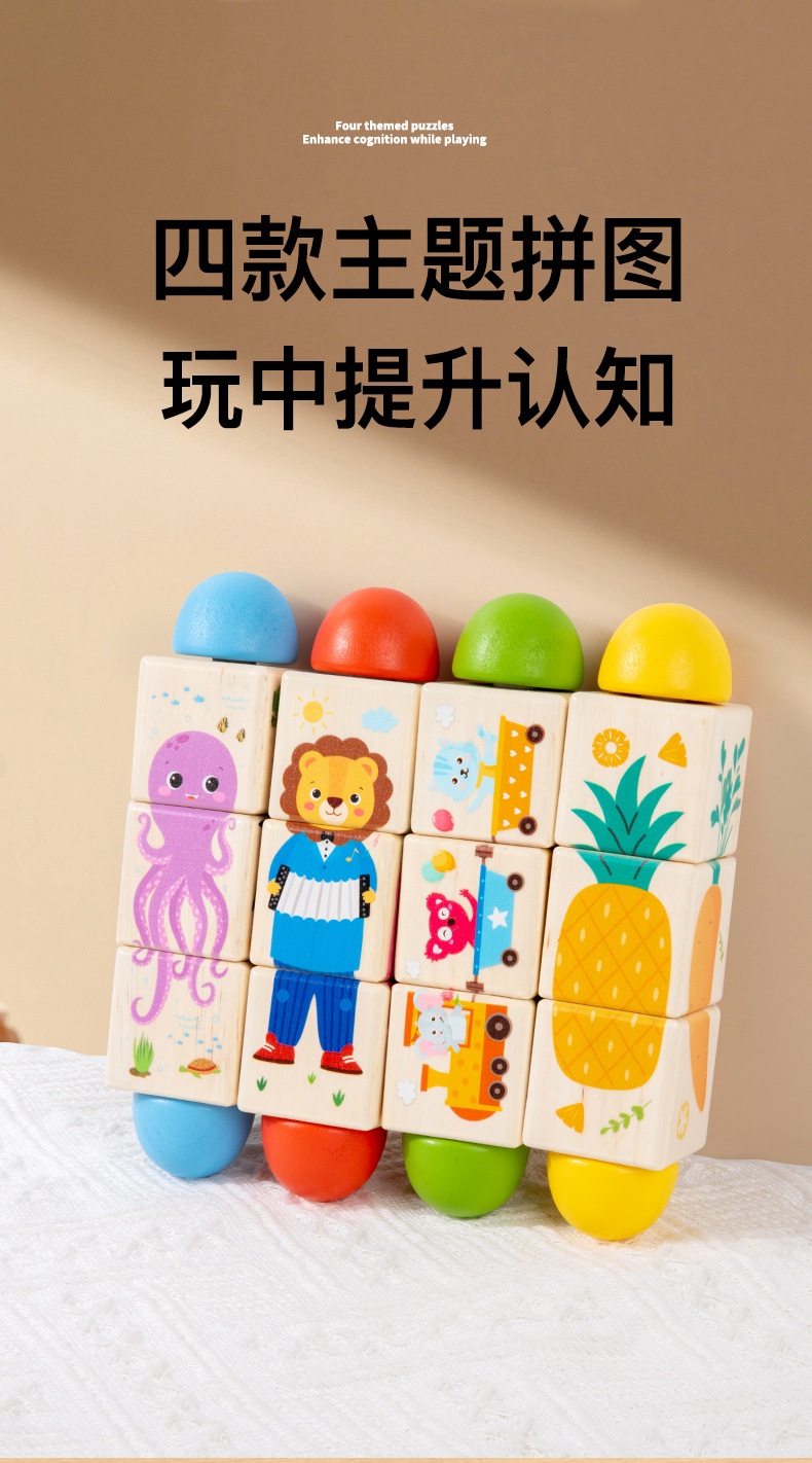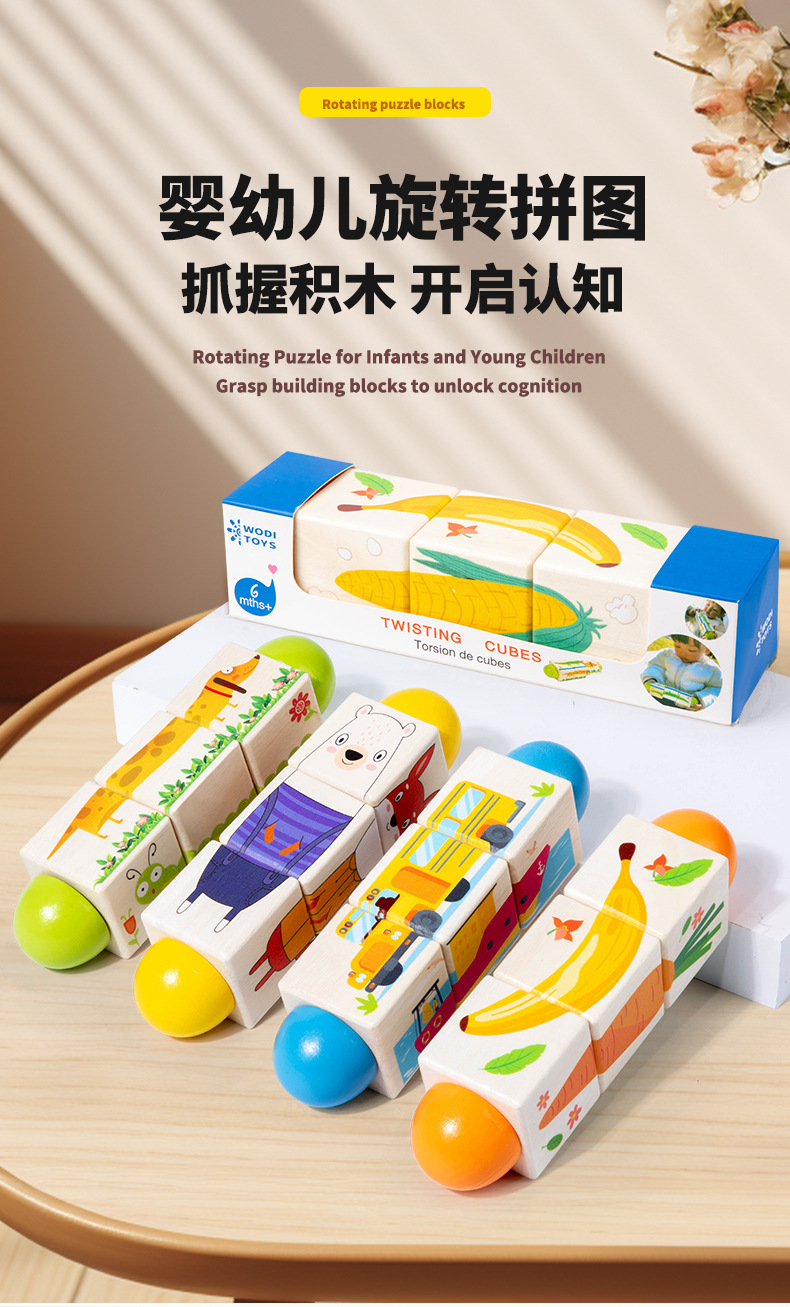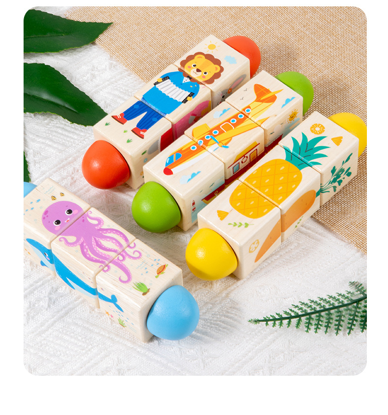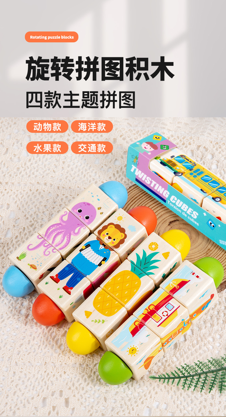 Cpc/ce rompecabezas tridimensional animales de dibujos animados frutas y verduras tráfico niños pequeños iluminación agarre bloques de construcción juguetes de madera giratorios