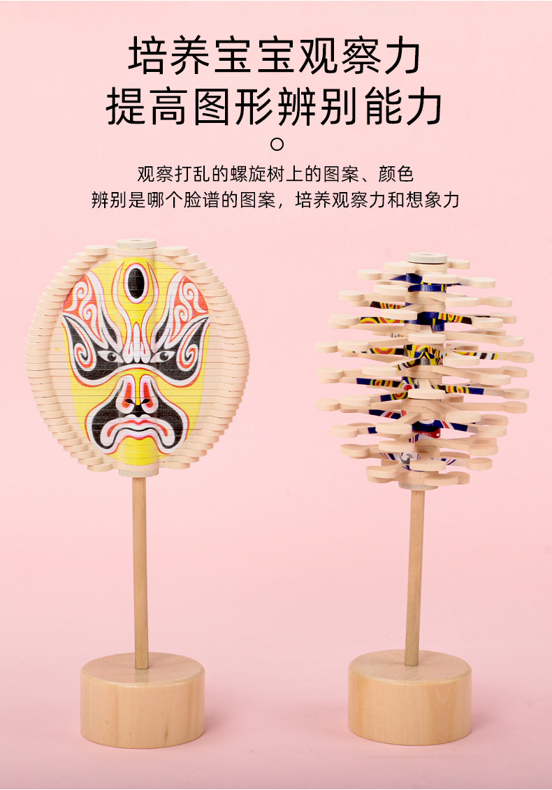 Nuevo Douyin, el mismo estilo, descompresión, cambio de cara de madera, piruleta giratoria, rompecabezas creativo, pequeño adorno, árbol espiral de Fibonacci