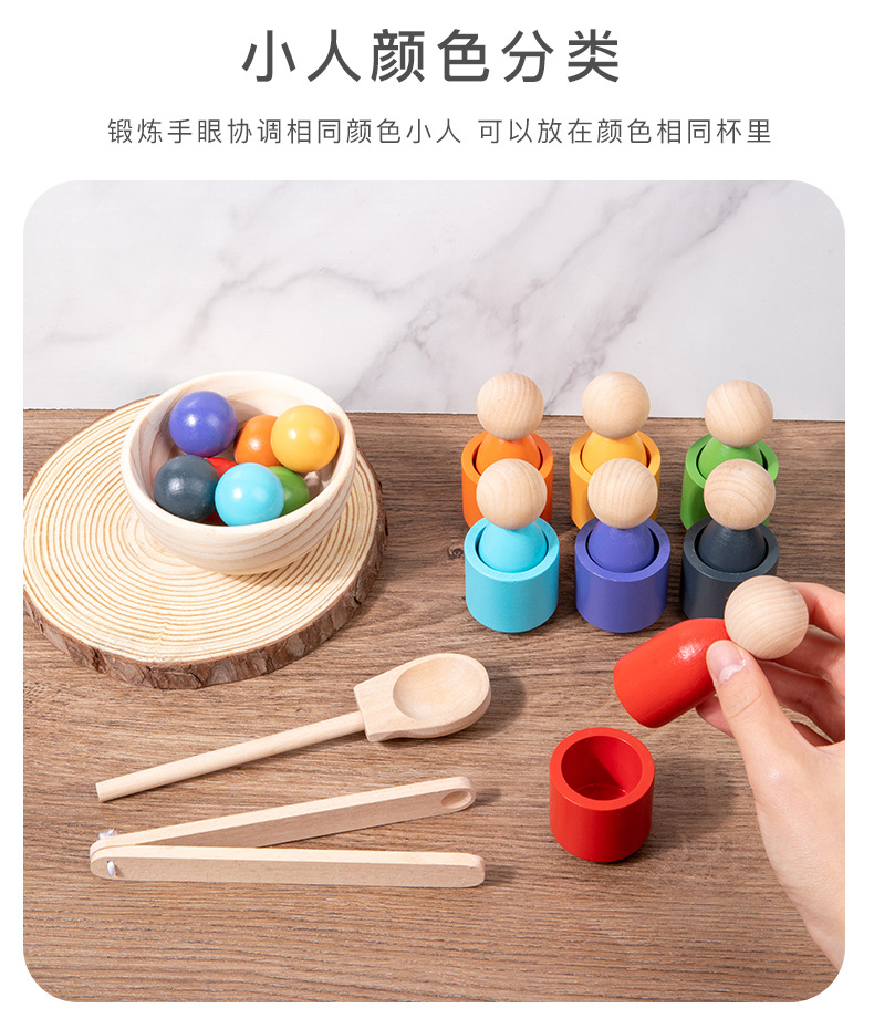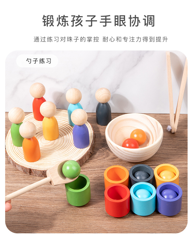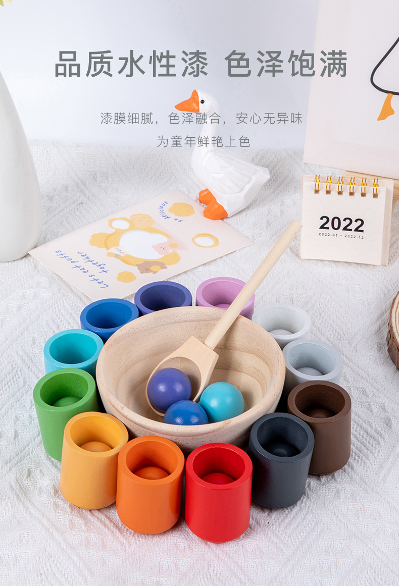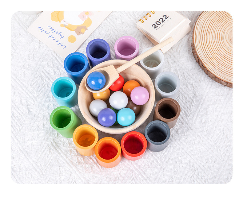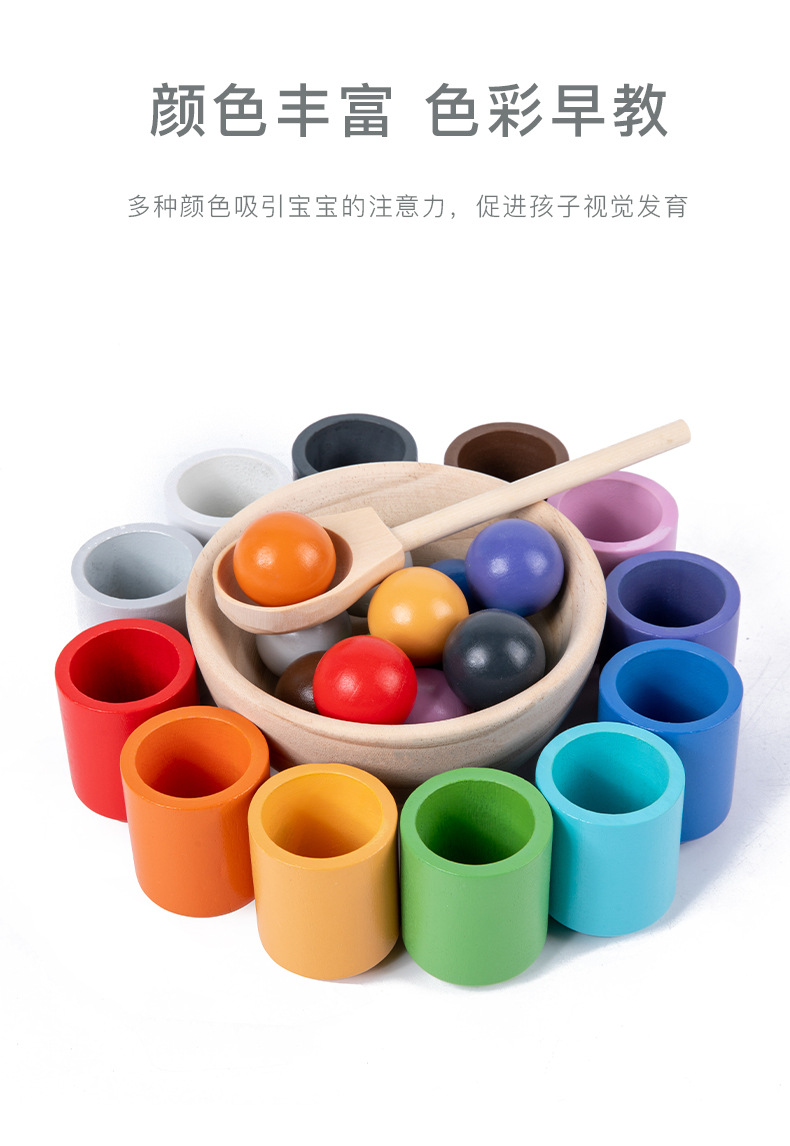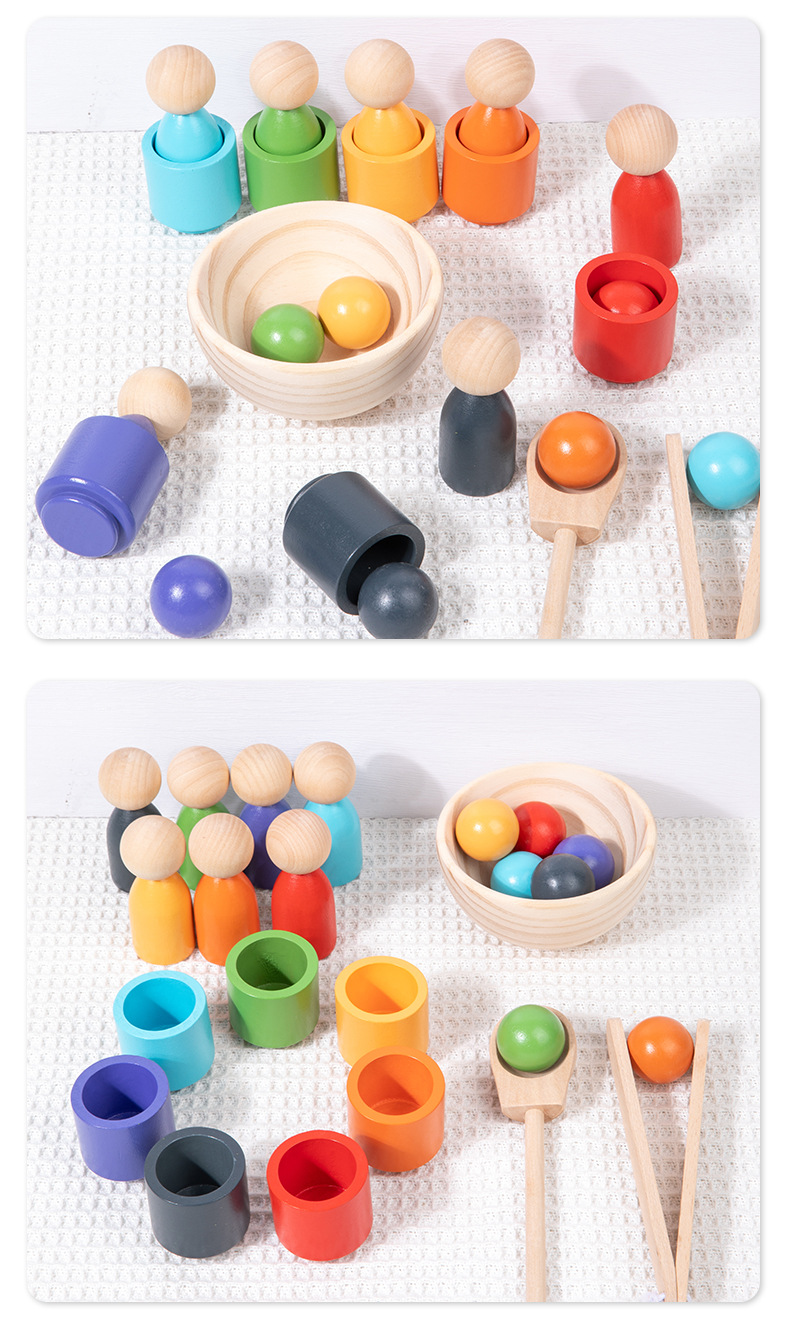 Bola del arco iris Montessori juguetes en taza de madera color clasificación taza juego y contando preescolar aprendizaje educación