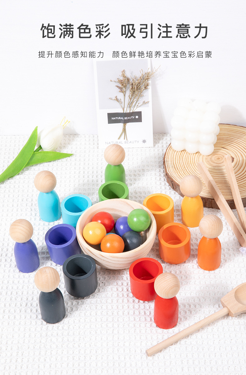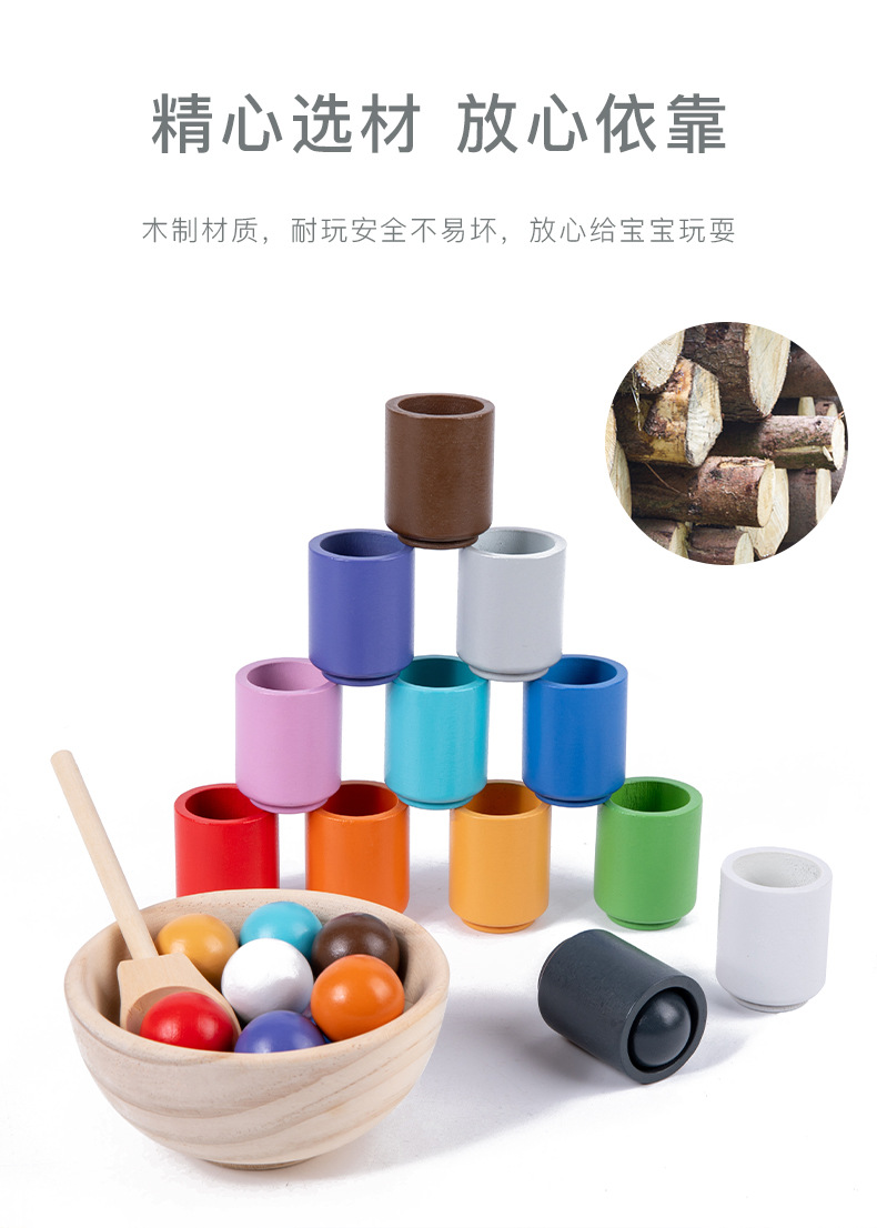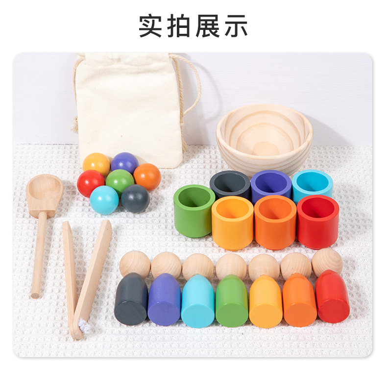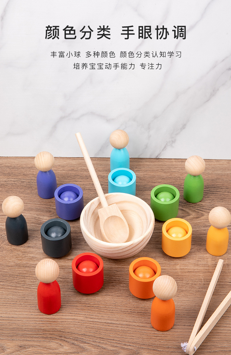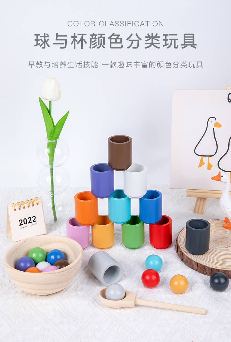 Bola del arco iris Montessori juguetes en taza de madera color clasificación taza juego y contando preescolar aprendizaje educación