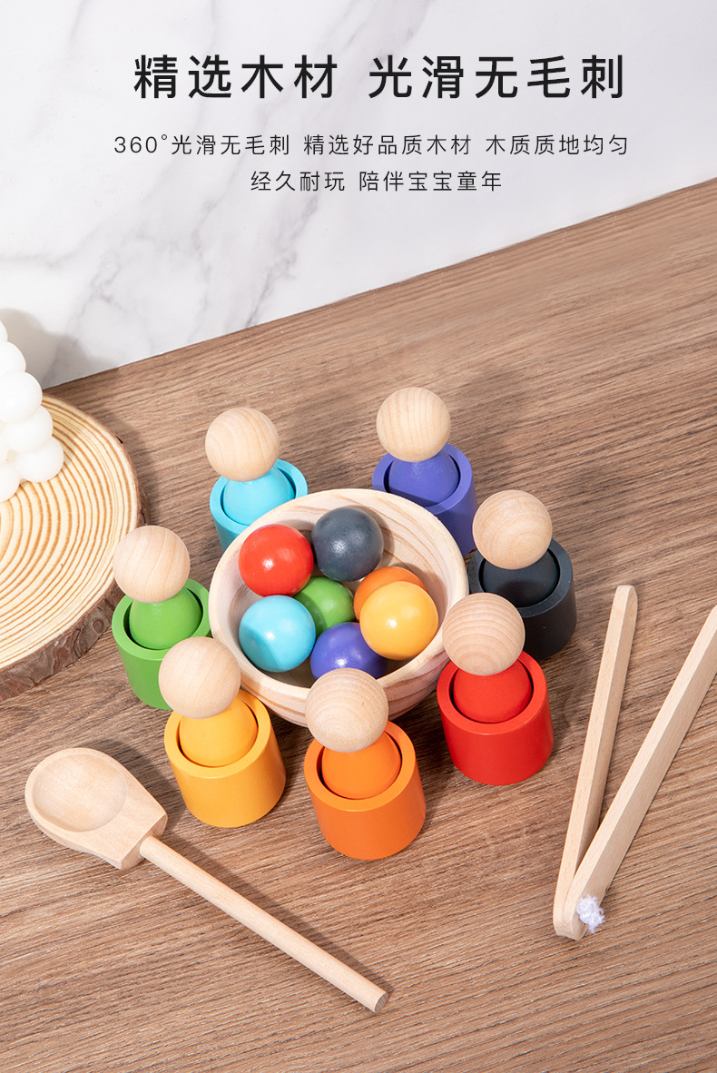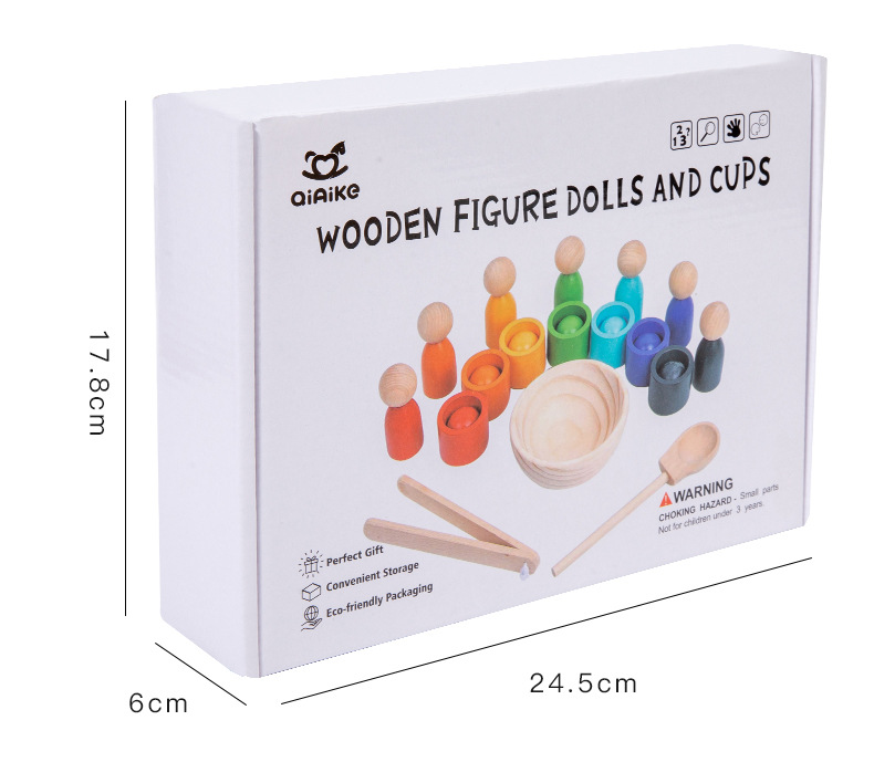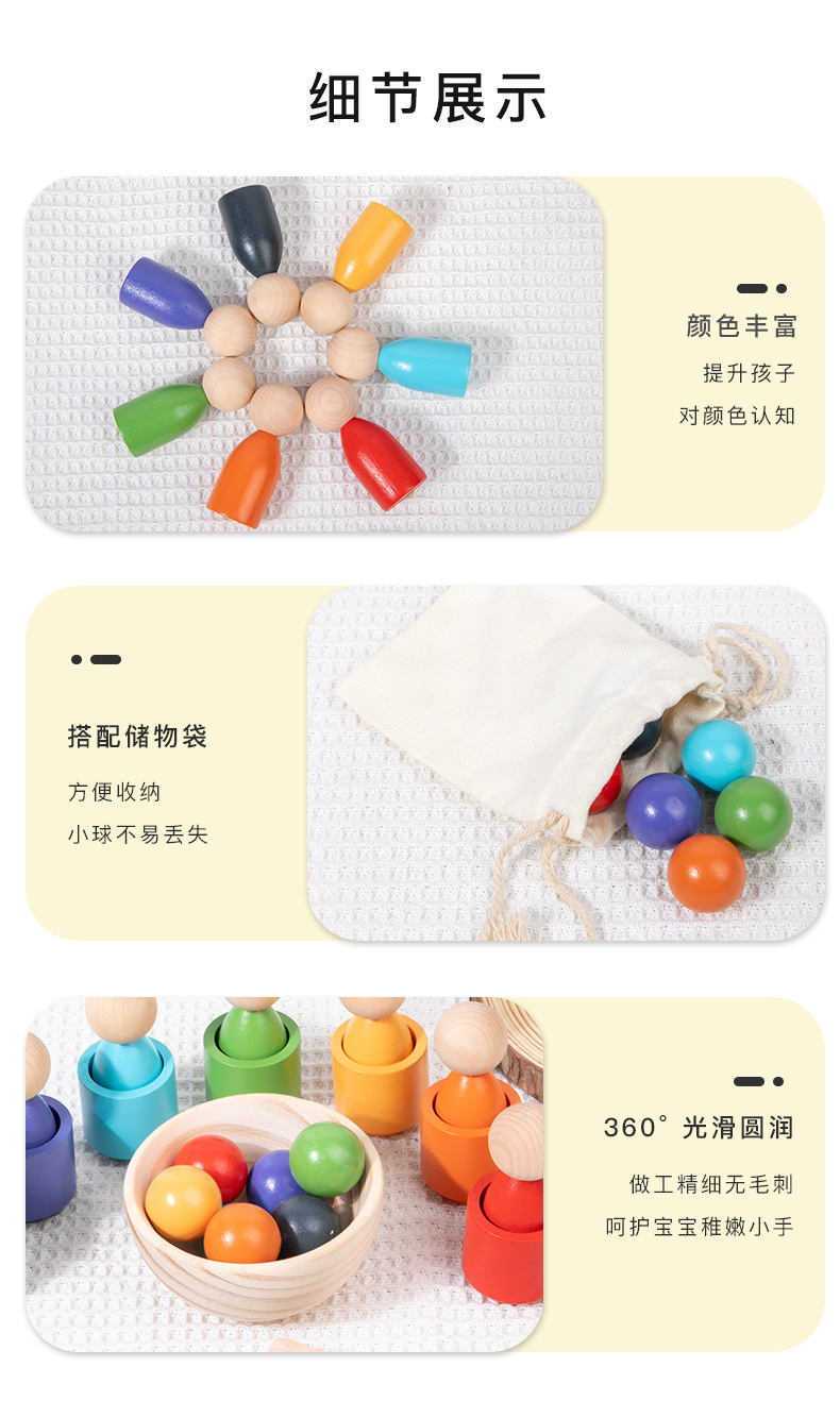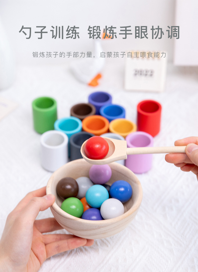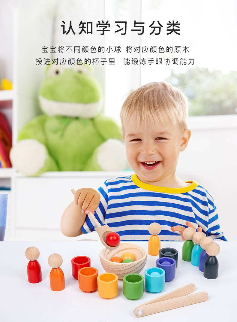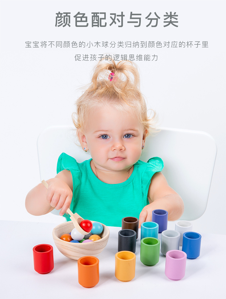 Bola del arco iris Montessori juguetes en taza de madera color clasificación taza juego y contando preescolar aprendizaje educación