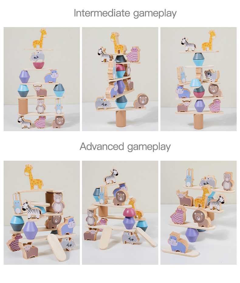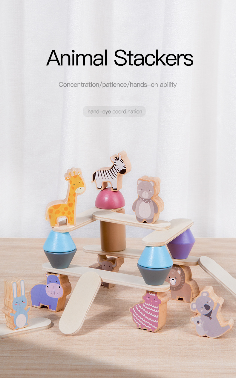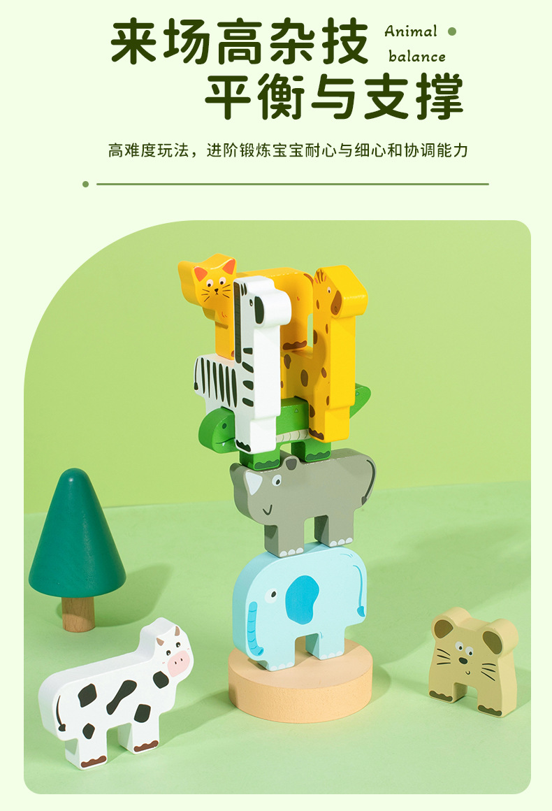 Multifuncional animal de madera equilibrio juguetes educativos de apilamiento juguetes interacción padre-hijo de los niños de educación temprana apilamiento juguetes altos