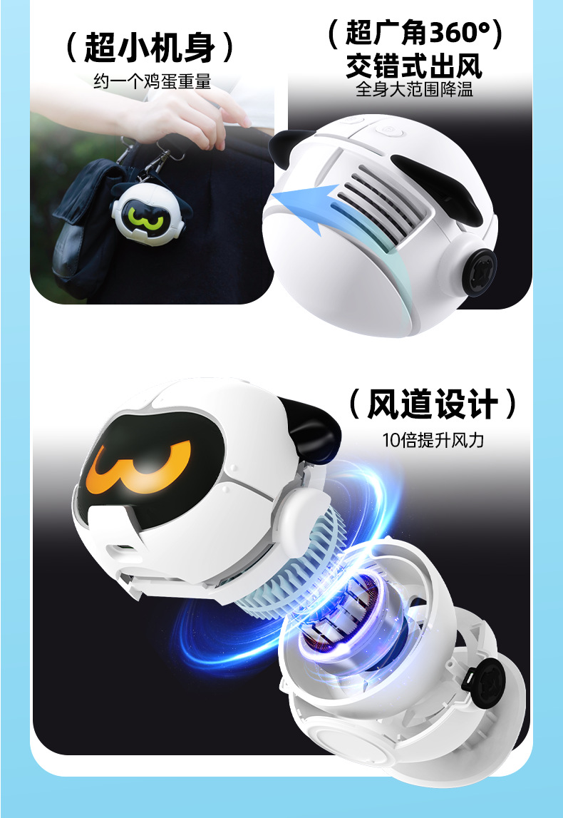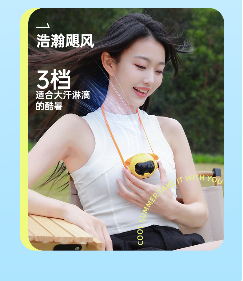 Nuevo ventilador pequeño, cuello colgante, portátil, pequeño, carga ultra silenciosa, mini ventilador sin aspas, soporte