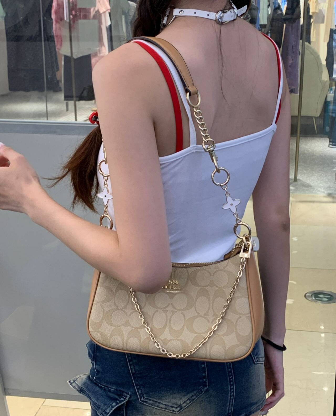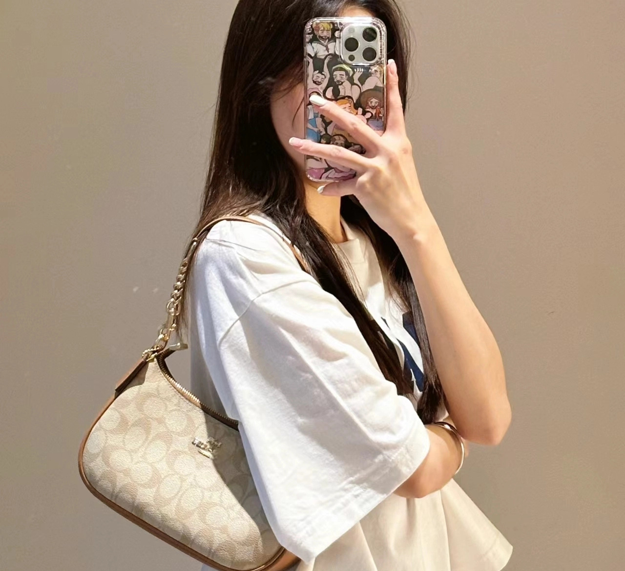 2025 Koujia nuevo bolso de axila de luna nueva Teri bolso de hombro con cremallera con cadena de impresión retro europea y americana