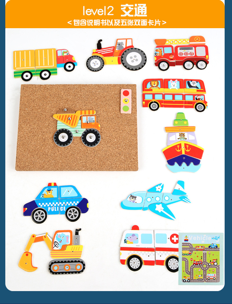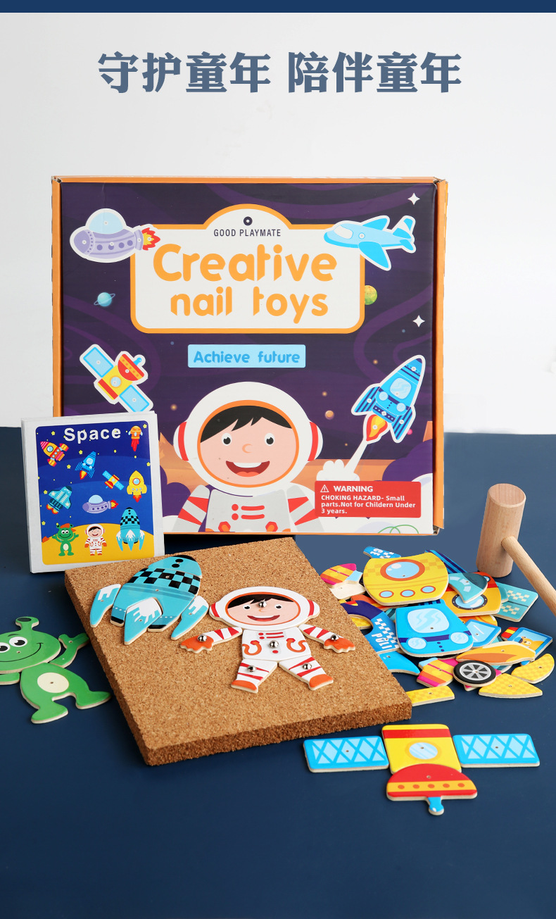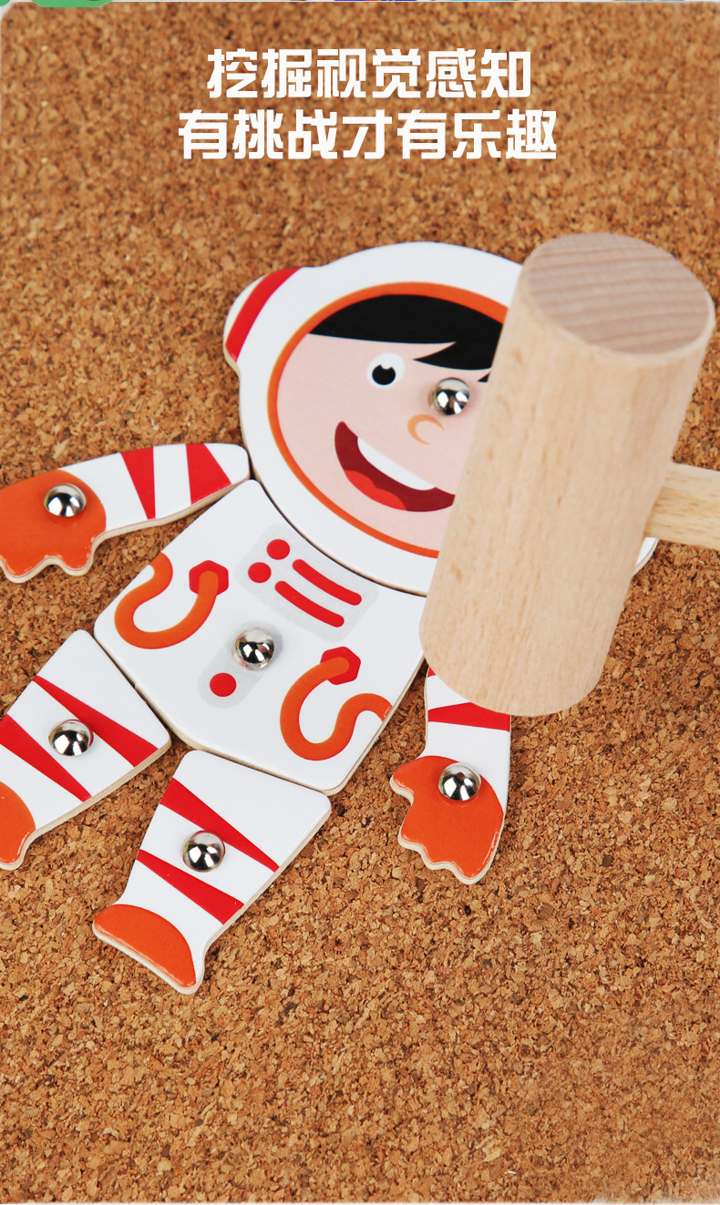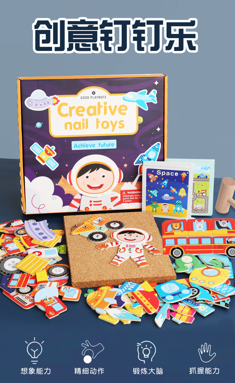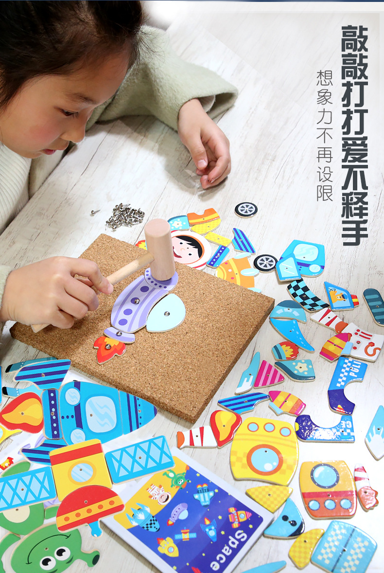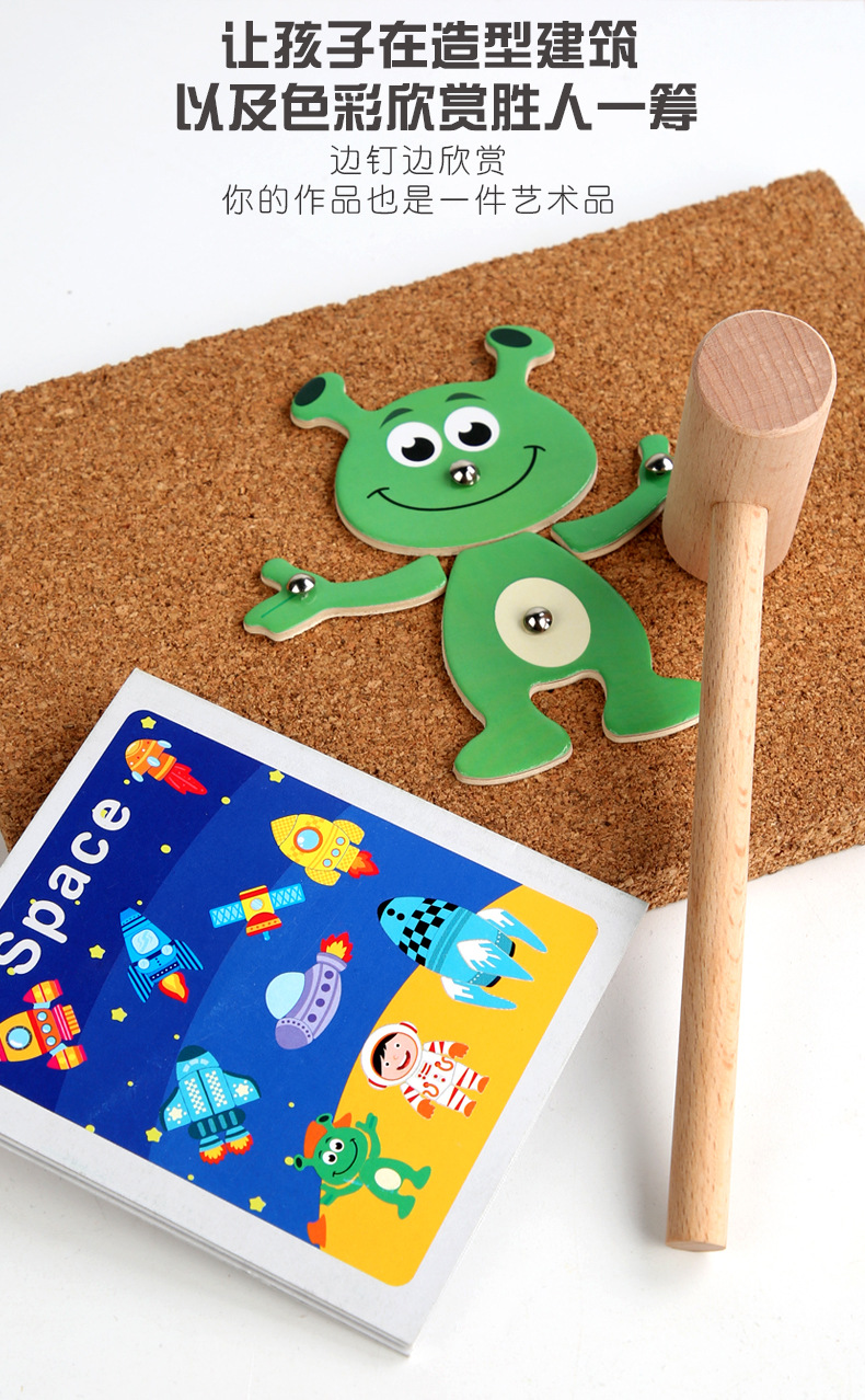 Herramientas de enseñanza de Monty Clavo martillo gráfico creativo tráfico espacial animales y plantas clavo clavos juguetes hechos a mano