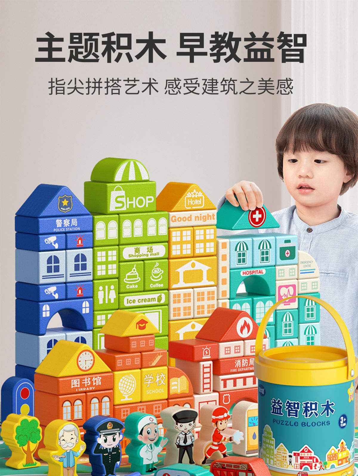 Bloques de construcción para niños Montaje de educación temprana Montessori
