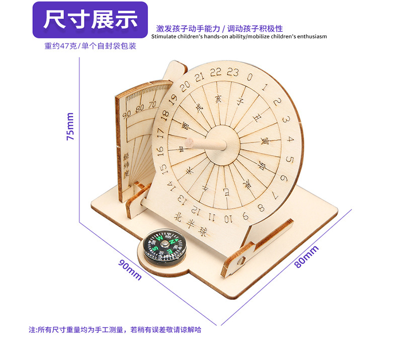 Ciencia y tecnología pequeña mano equatorial reloj de sol modelo antiguo cronómetro para niños reloj de sol diy ensamblaje ayuda de enseñanza
