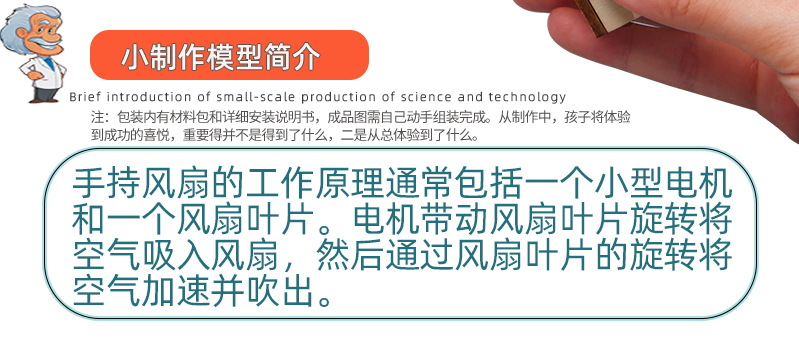 Juguetes de verano para estudiantes de primaria tecnología pequeña fabricación de ventilador eléctrico de mano pequeña bolsa de material DIY pequeña pelo