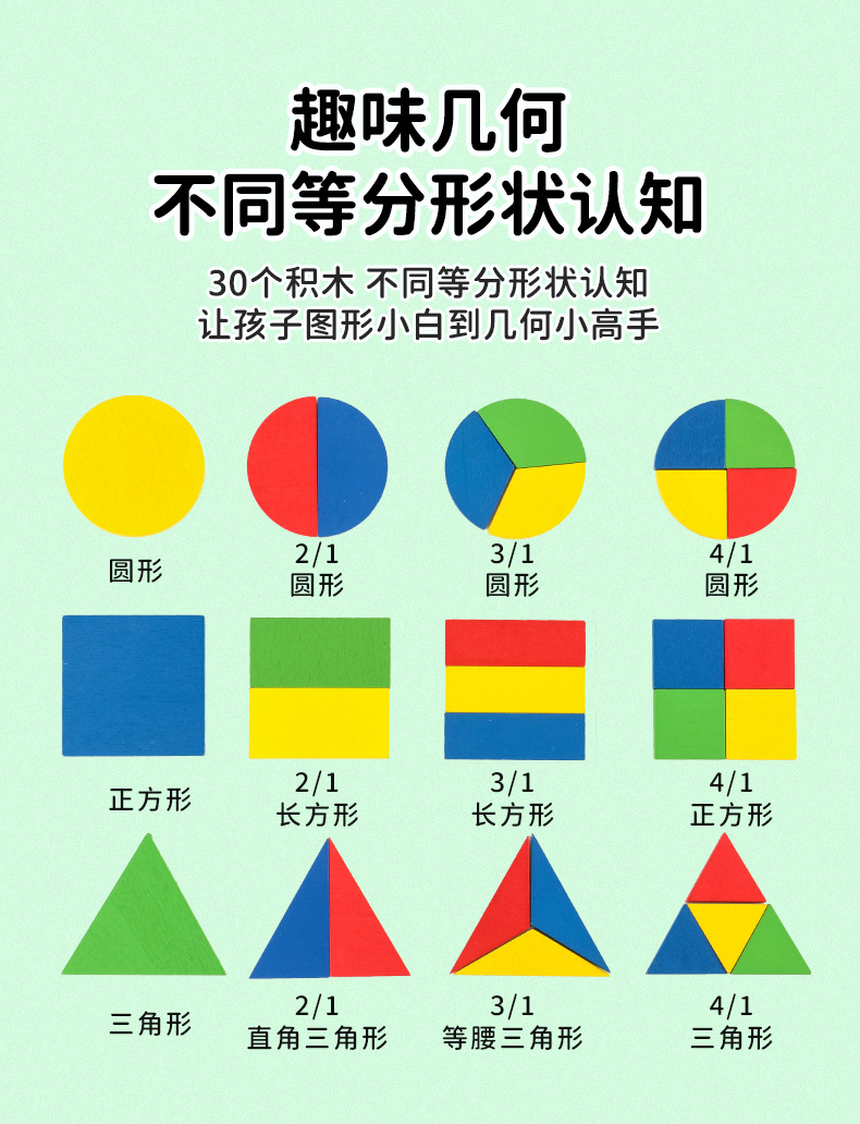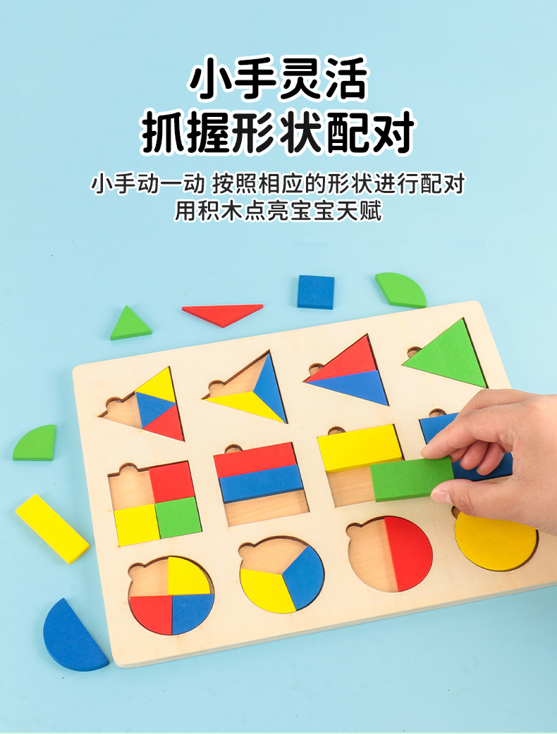 Montessori educación temprana para niños juguete forma cognición puntaje geométrico igual División rompecabezas de madera rompecabezas juguete