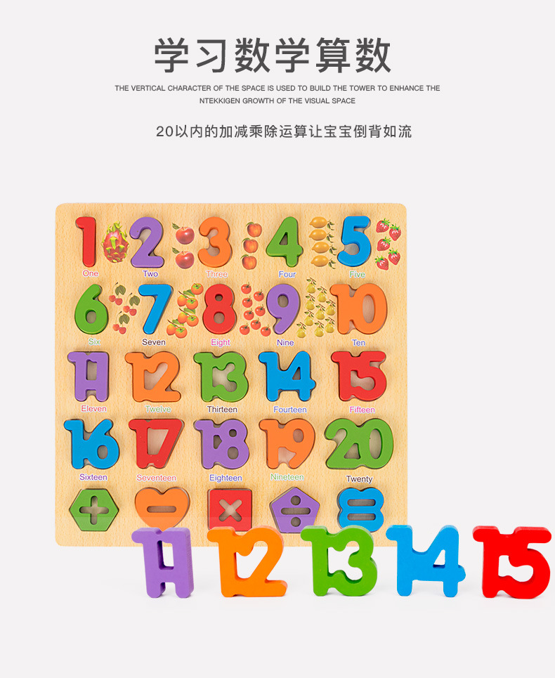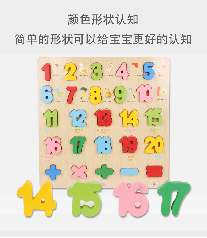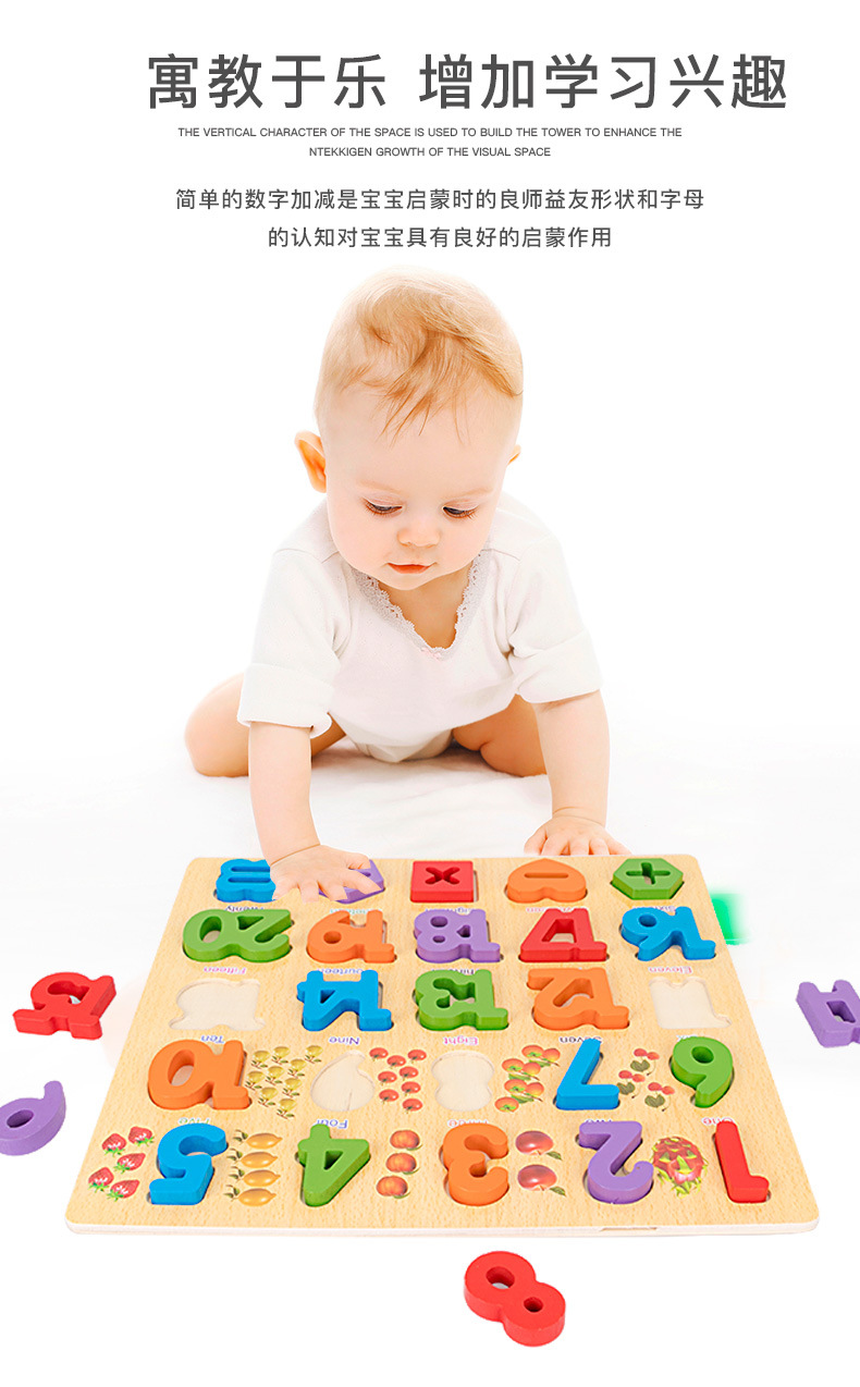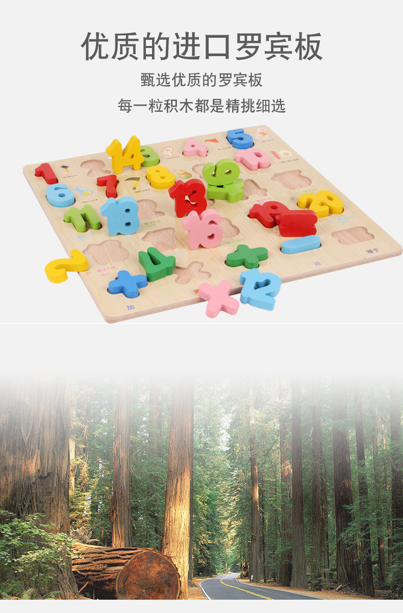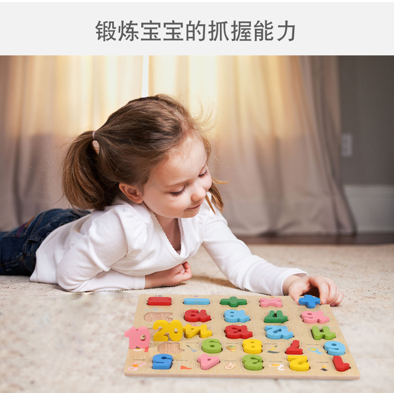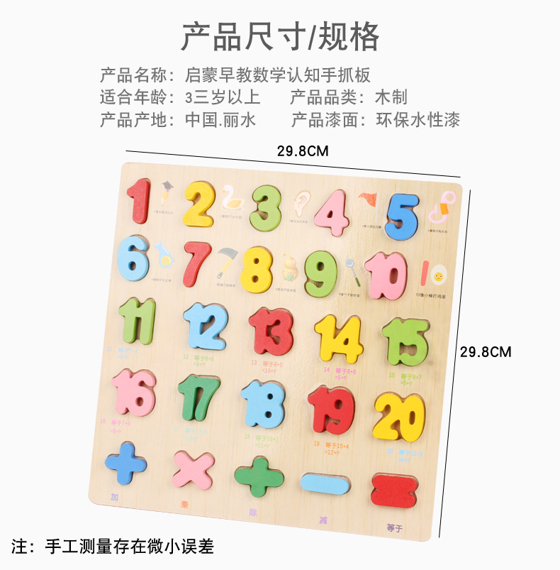 Junta alfanumérica de madera transfronteriza puzzle cognitivo de educación temprana de aprendizaje emparejado de mano agarrando juguetes de madera para niños