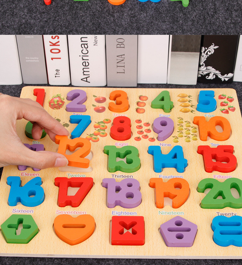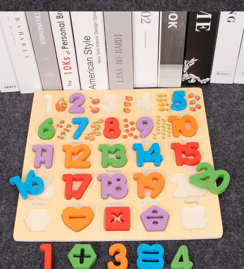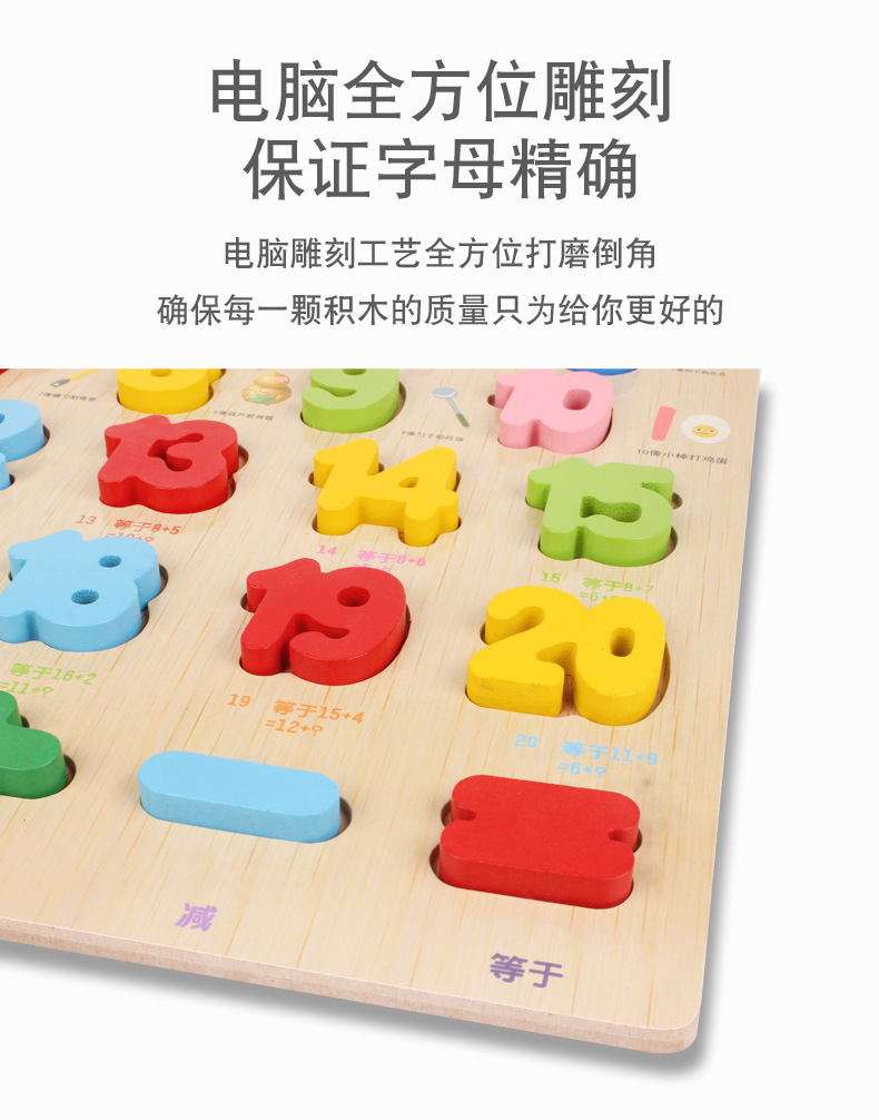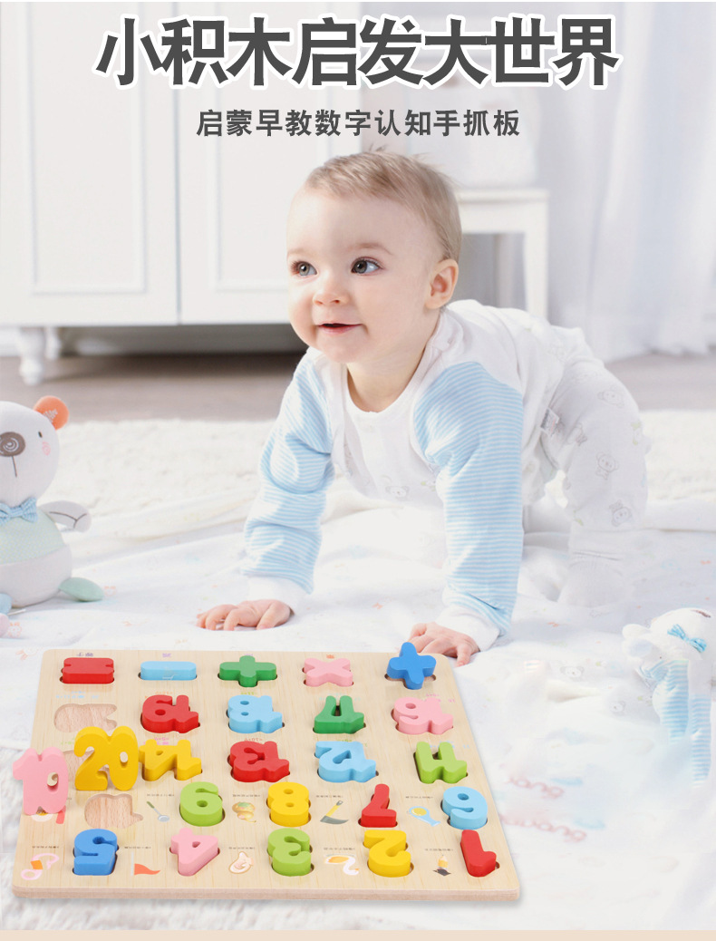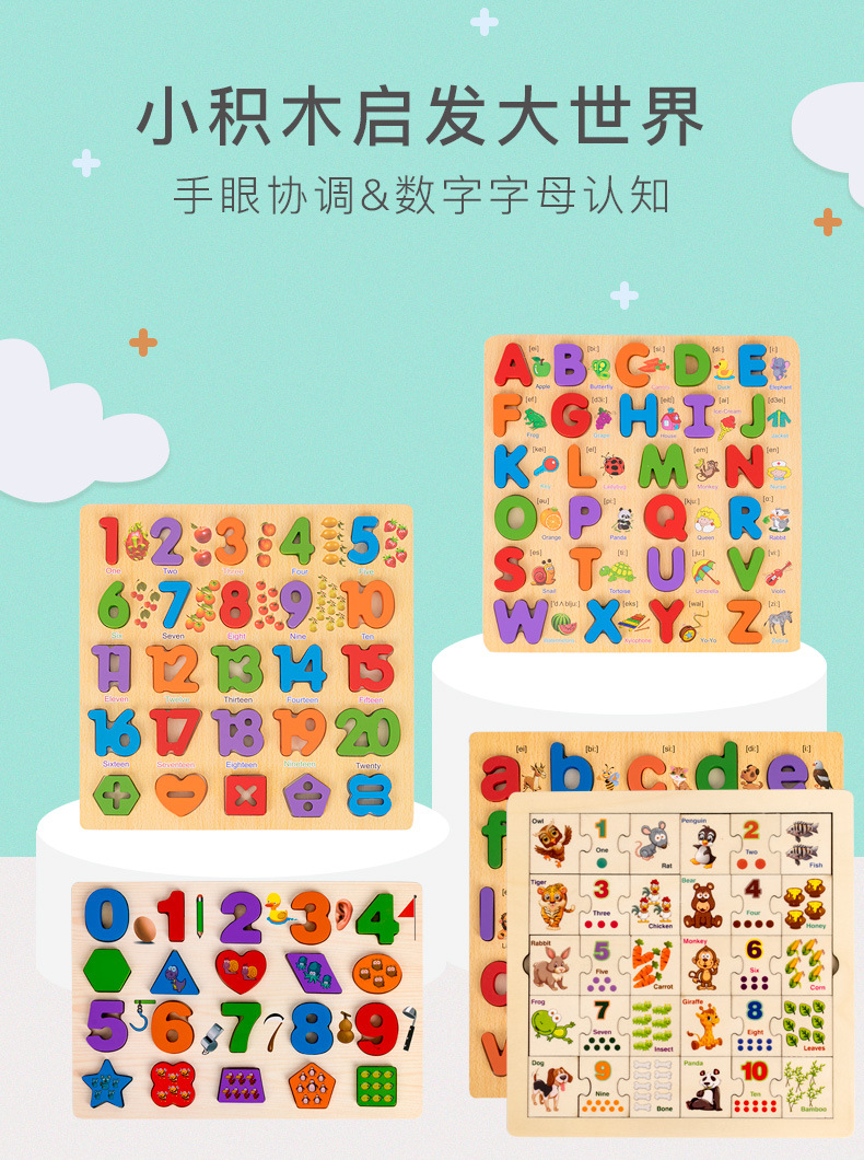 Junta alfanumérica de madera transfronteriza puzzle cognitivo de educación temprana de aprendizaje emparejado de mano agarrando juguetes de madera para niños